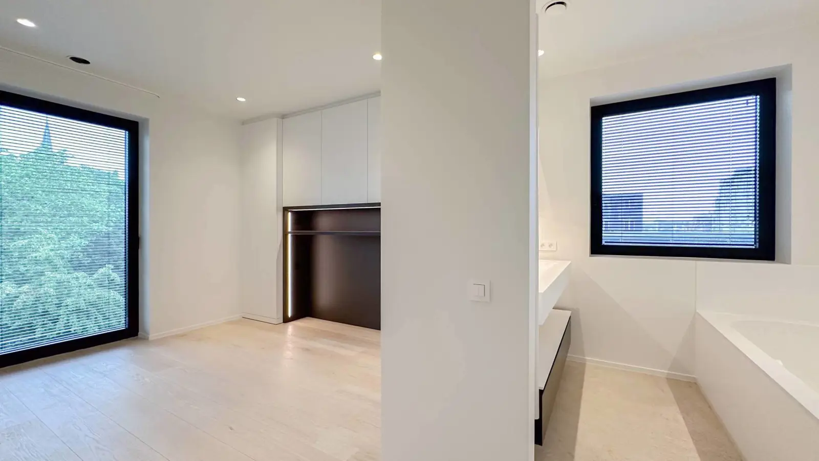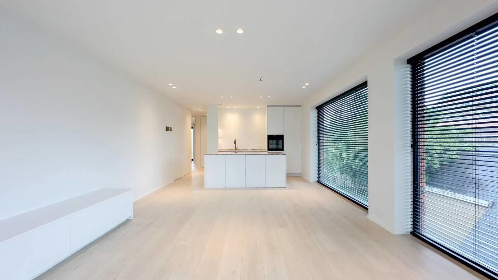 Wunderschönes Eckapartment in einer modernen Villenresidenz.Gelegen in einer grünen Oase und dennoch mitten im Zentrum von Knokke, in unmittelbarer Nähe der Lippenslaan, der Strandpromenade und Duinenwater. Ruhe und Stadtleben perfekt vereint. Doppelgarage in der Residenz (12 m Länge) sowie Fahrradraum. Aufteilung:Eingangshalle mit Garderobe und Gäste-WC.Offene Küche mit Kochinsel, Ess- und Wohnbereich mit Zugang zur Terrasse.Master-Schlafzimmer mit ensuite Badezimmer (Badewanne, Doppelwaschbecken, WC) und Blick ins Grüne.Zweites Schlafzimmer mit Duschbad.Abstellraum mit Anschlüssen für Waschmaschine und Trockner sowie Brennwertkessel.Einbauschränke und Fußbodenheizung im gesamten Apartment. Mietkonditionen:🏠 €1.800 / Monat⚡ €150 / Monat Fixkosten🚗 €150 / Monat Garage Verfügbar ab dem 01.04.2026