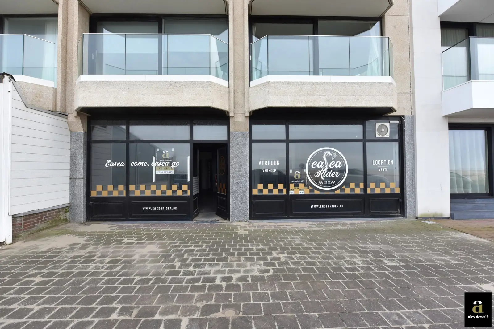 Commercial ground floor on the Zeedijk of Albertstrand, very well located between the Casino and Albertstrand in the corner building with the Zonnelaan. 110 m² interior surface. Possible amenities: covered terrace of about 50 m² and outdoor terrace on the beach. Property tax borne by the tenant.