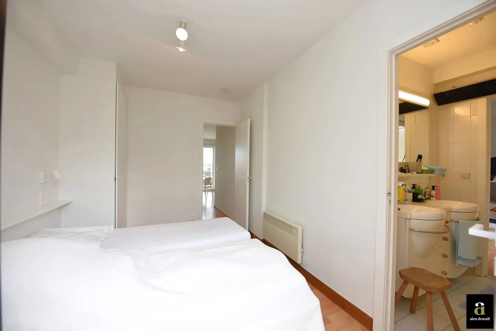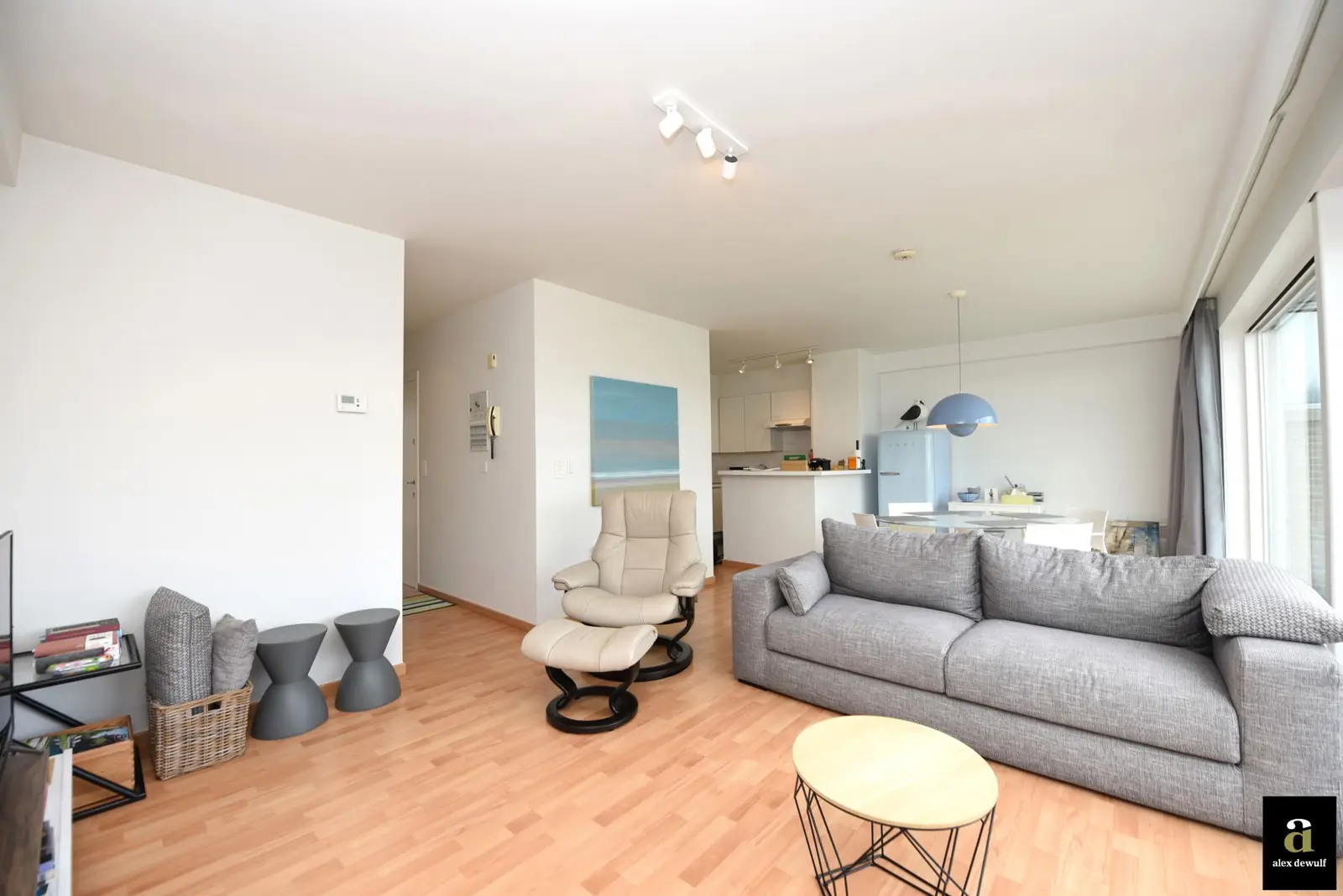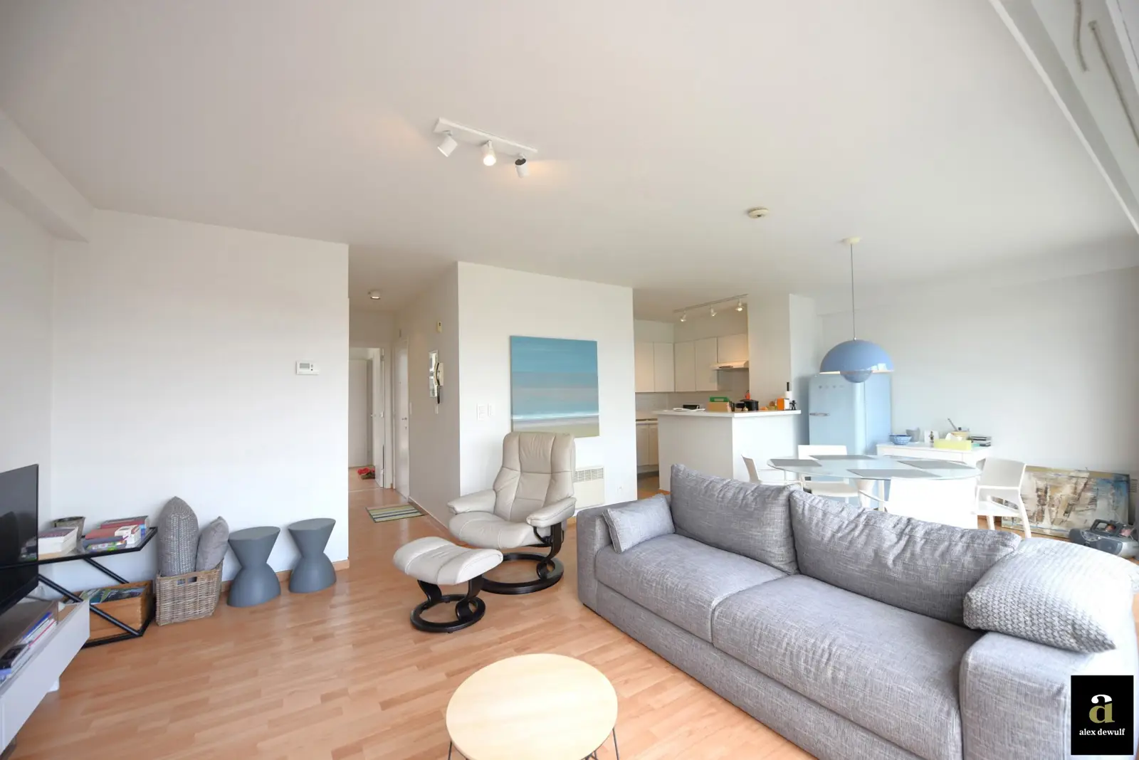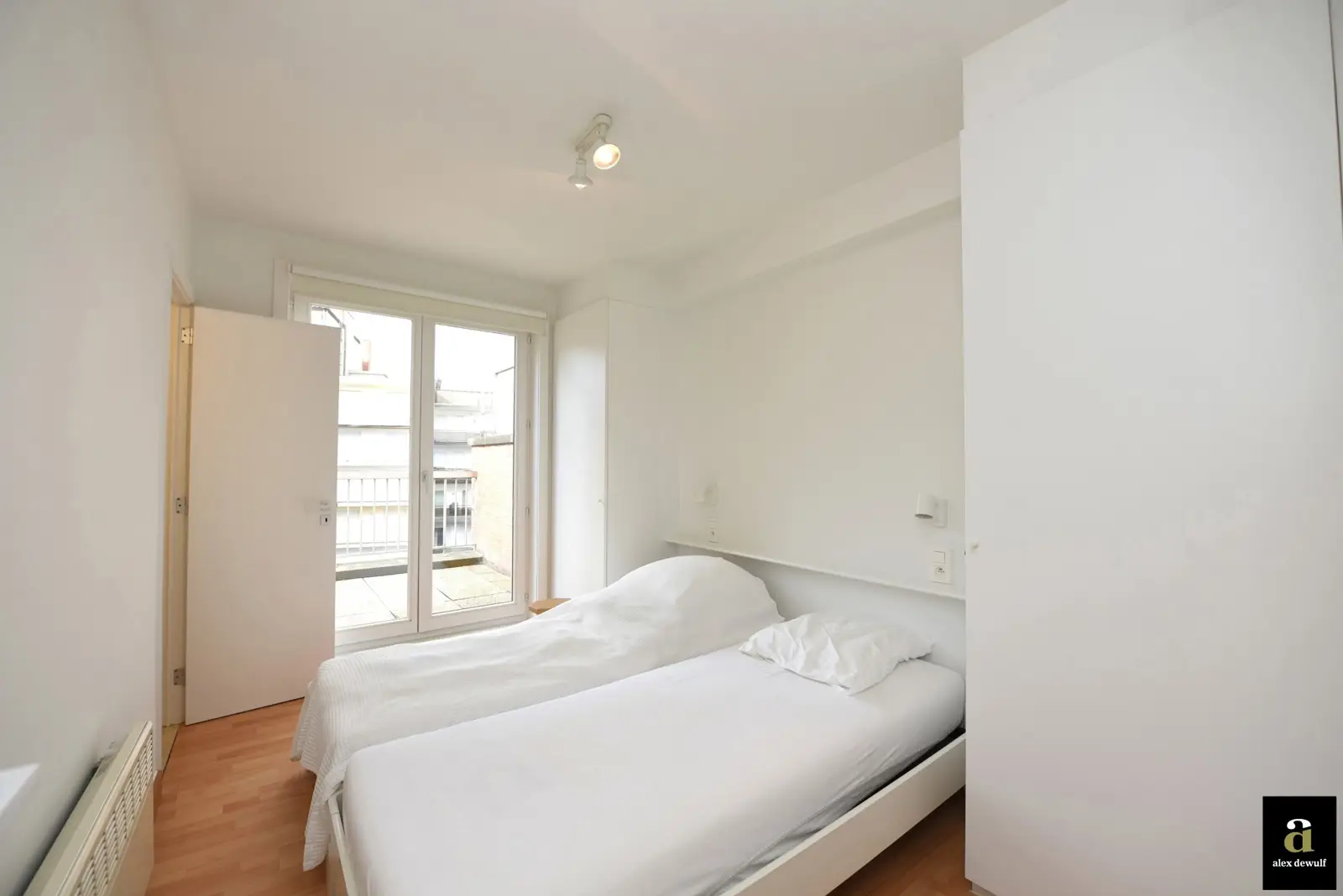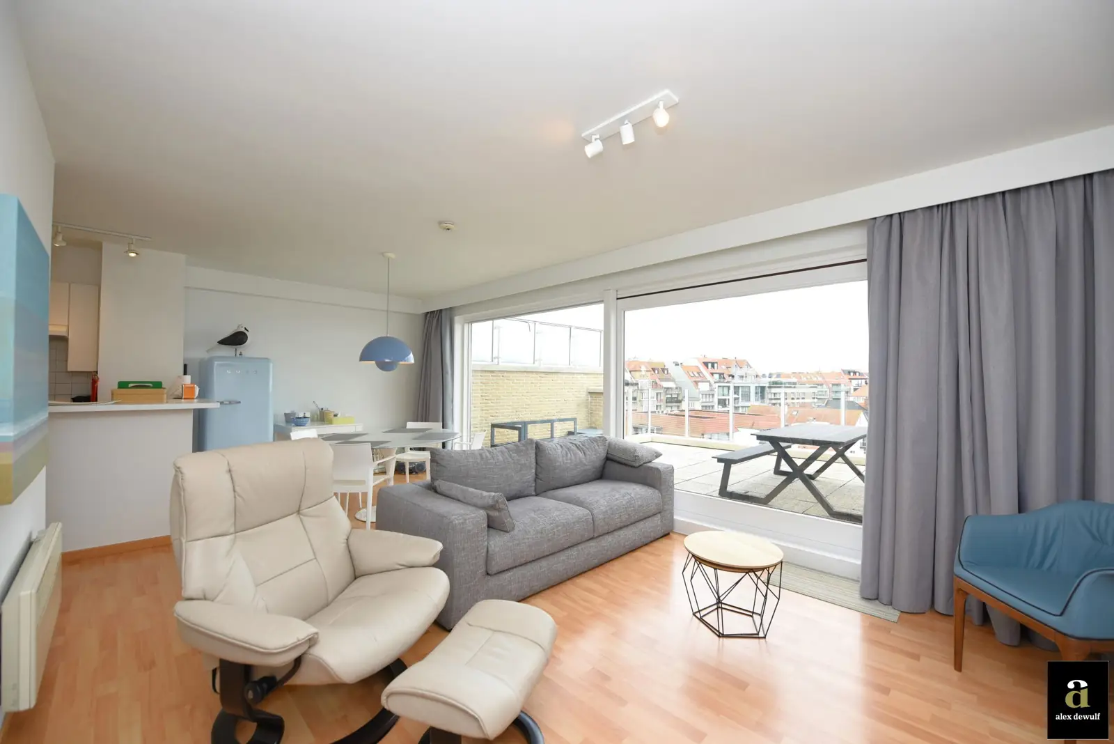 Stylishly furnished 2-bedroom apartment on Jozef Nellenslaan, just a few minutes' walk from the beach. It features two spacious bedrooms, a modern bathroom with a bathtub, and an open kitchen that seamlessly connects to the bright living area. Two large rooftop terraces offer space to relax outdoors. Additionally, the apartment comes with a private garage. Condo fees are included.