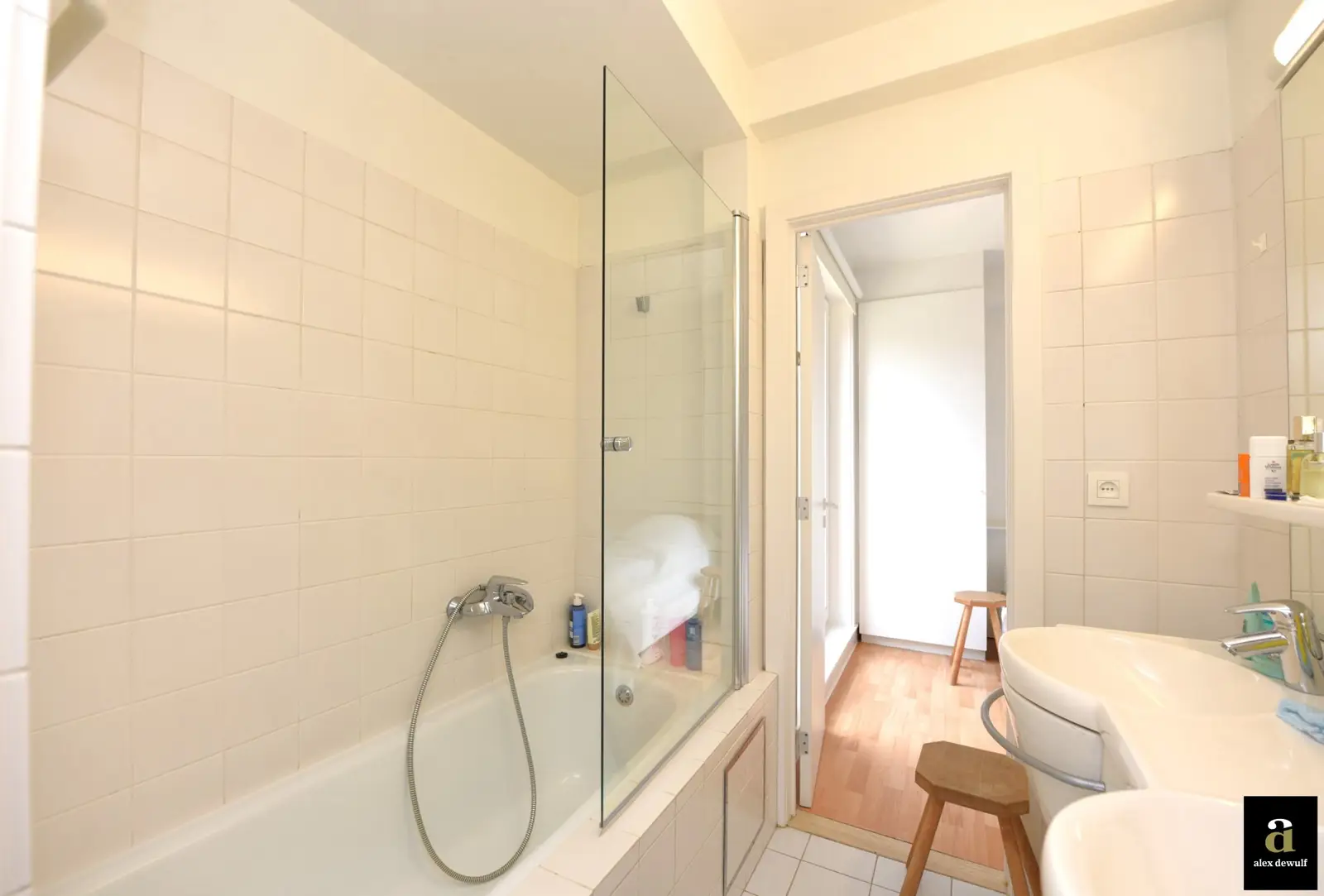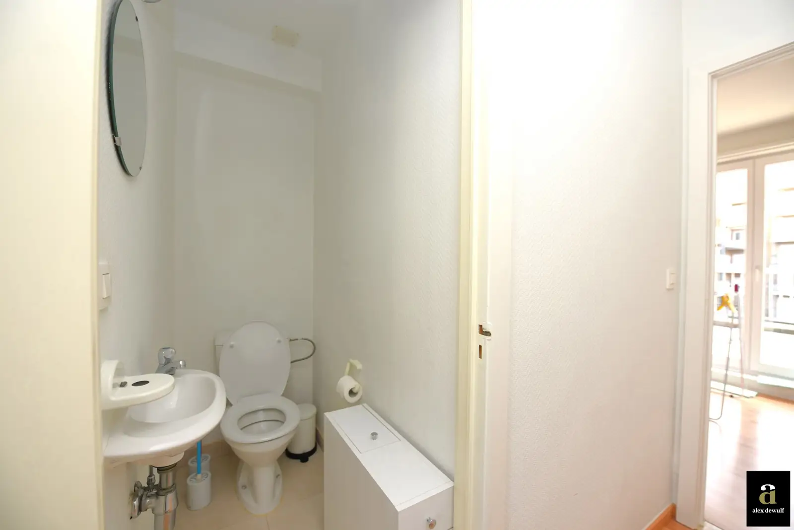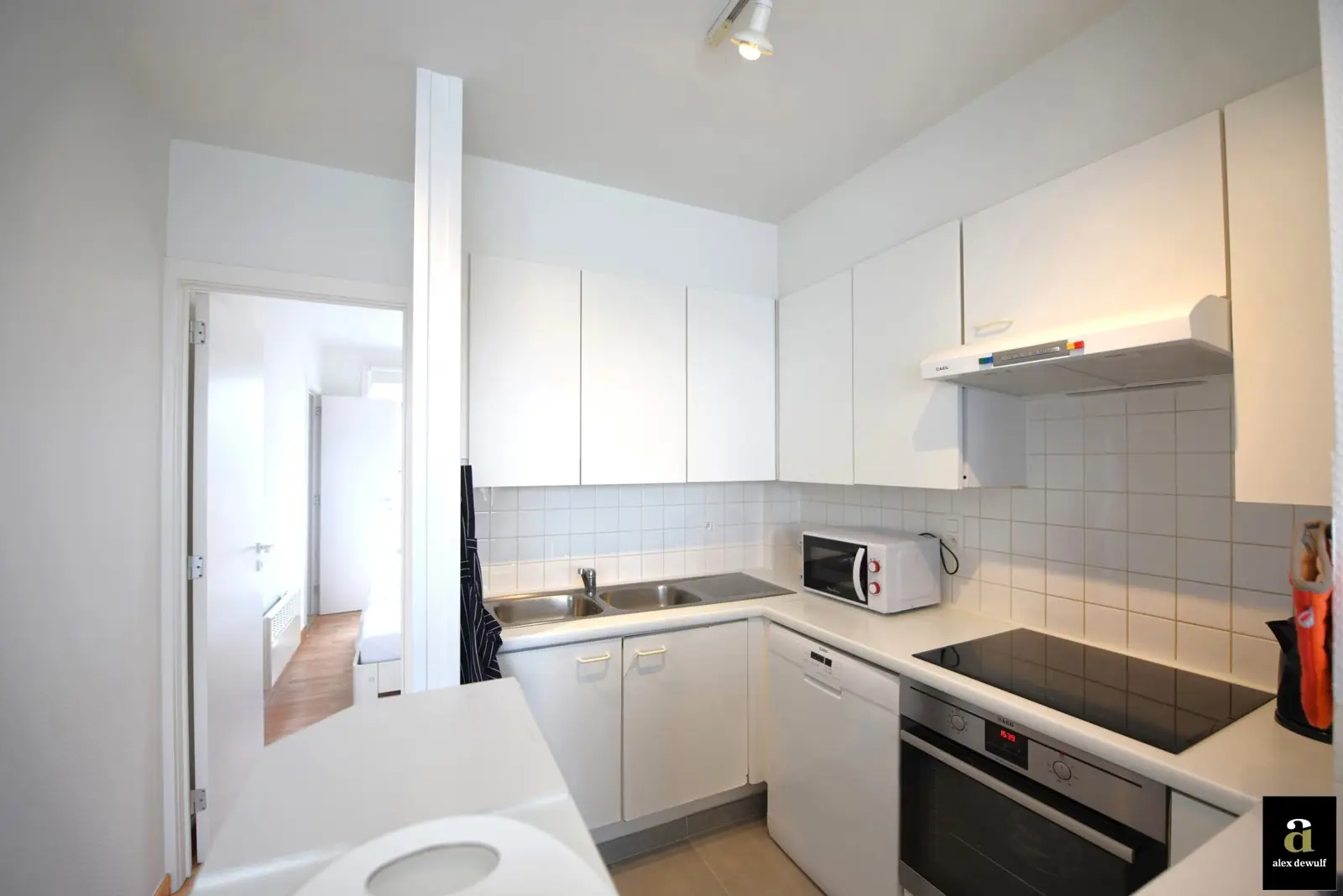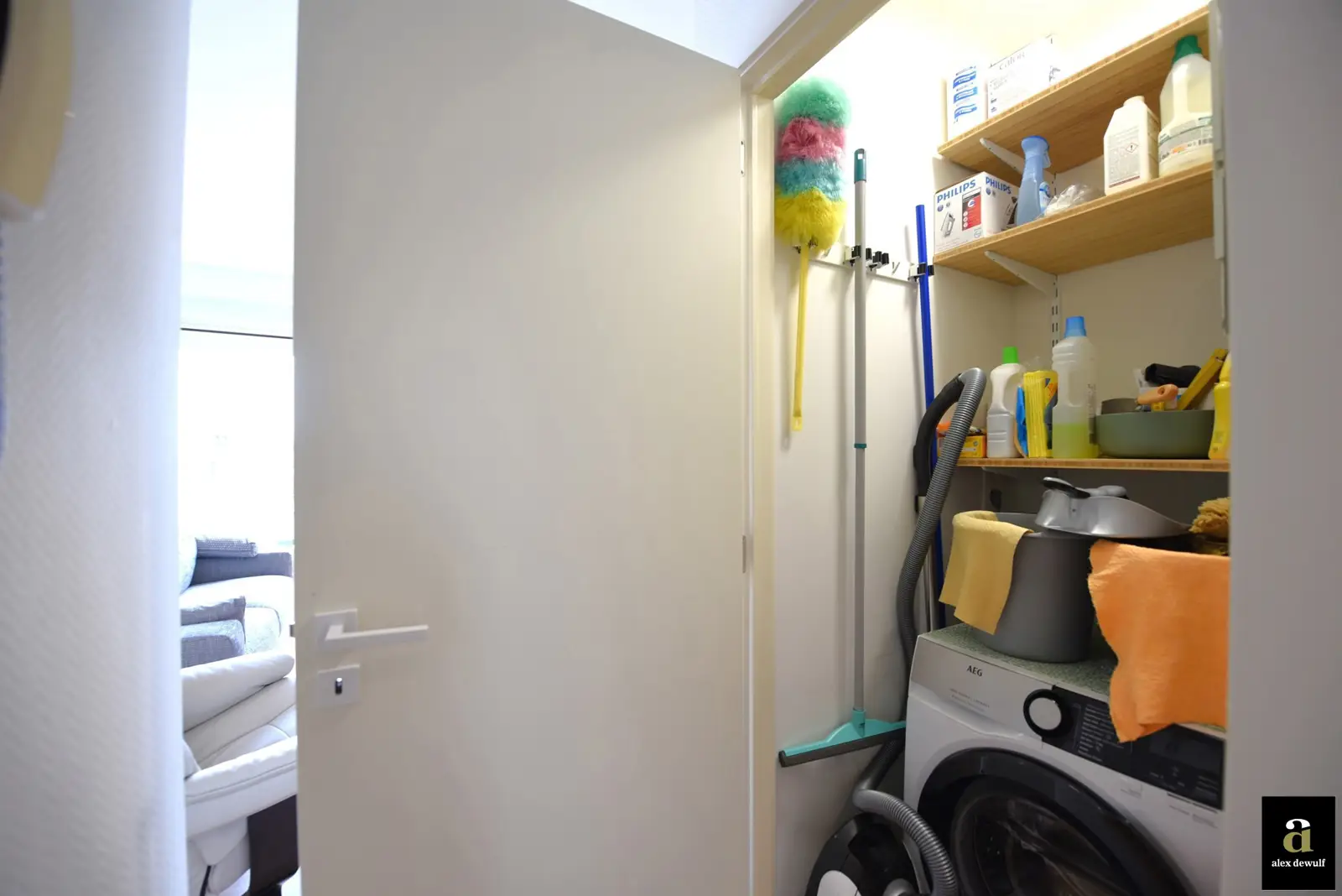 Stylishly furnished 2-bedroom apartment on Jozef Nellenslaan, just a few minutes' walk from the beach. It features two spacious bedrooms, a modern bathroom with a bathtub, and an open kitchen that seamlessly connects to the bright living area. Two large rooftop terraces offer space to relax outdoors. Additionally, the apartment comes with a private garage. Condo fees are included.