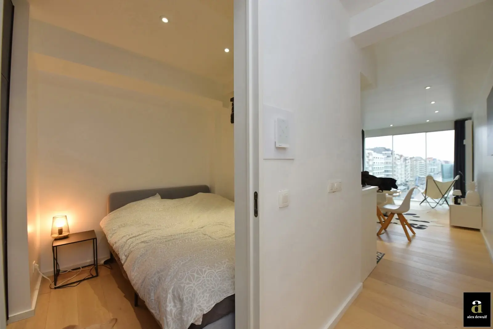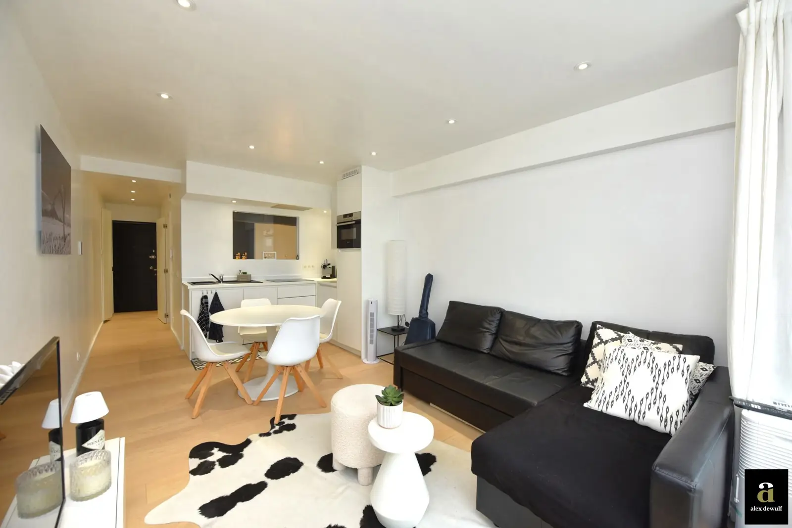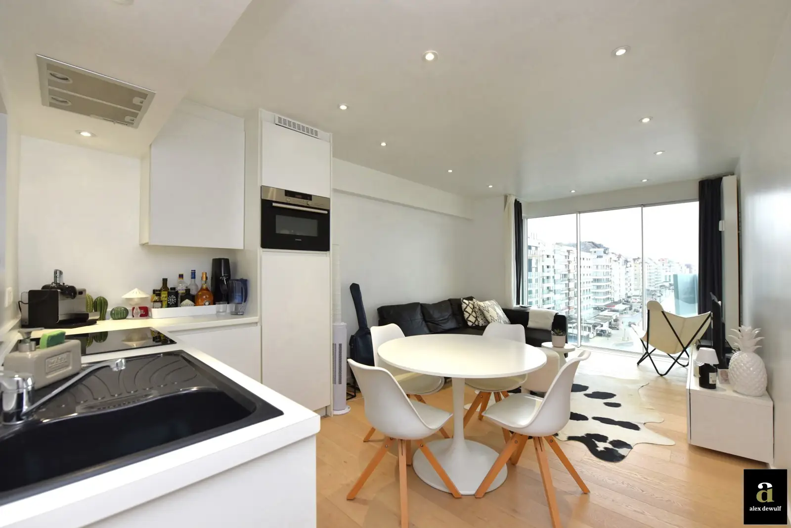 Beautifully furnished one-bedroom apartment located on Rubens Square, on the sunny side, with a stunning sea view and a view over Albert Beach. The apartment is fully west-facing, allowing you to enjoy the sun from noon onwards on this rare part of the promenade.Layout: entrance hall, bedroom, bathroom with toilet and shower, open kitchen, living area with parquet flooring. Basement in the building.Only available for rent as a second residence.Provision for syndic costs: 100 euros/month. RENTAL CONDITIONS: 3-month rental deposit Insurance Inventory report at shared cost (50/50) If used as a second residence: second residence tax payable by the tenant Utility consumption (electricity, water, TV, internet, etc.) is additional and must be registered in the tenant's name upon entry.[EPC: 87 kWh/m² - UC: 20130829-0001432102-00000001-8].