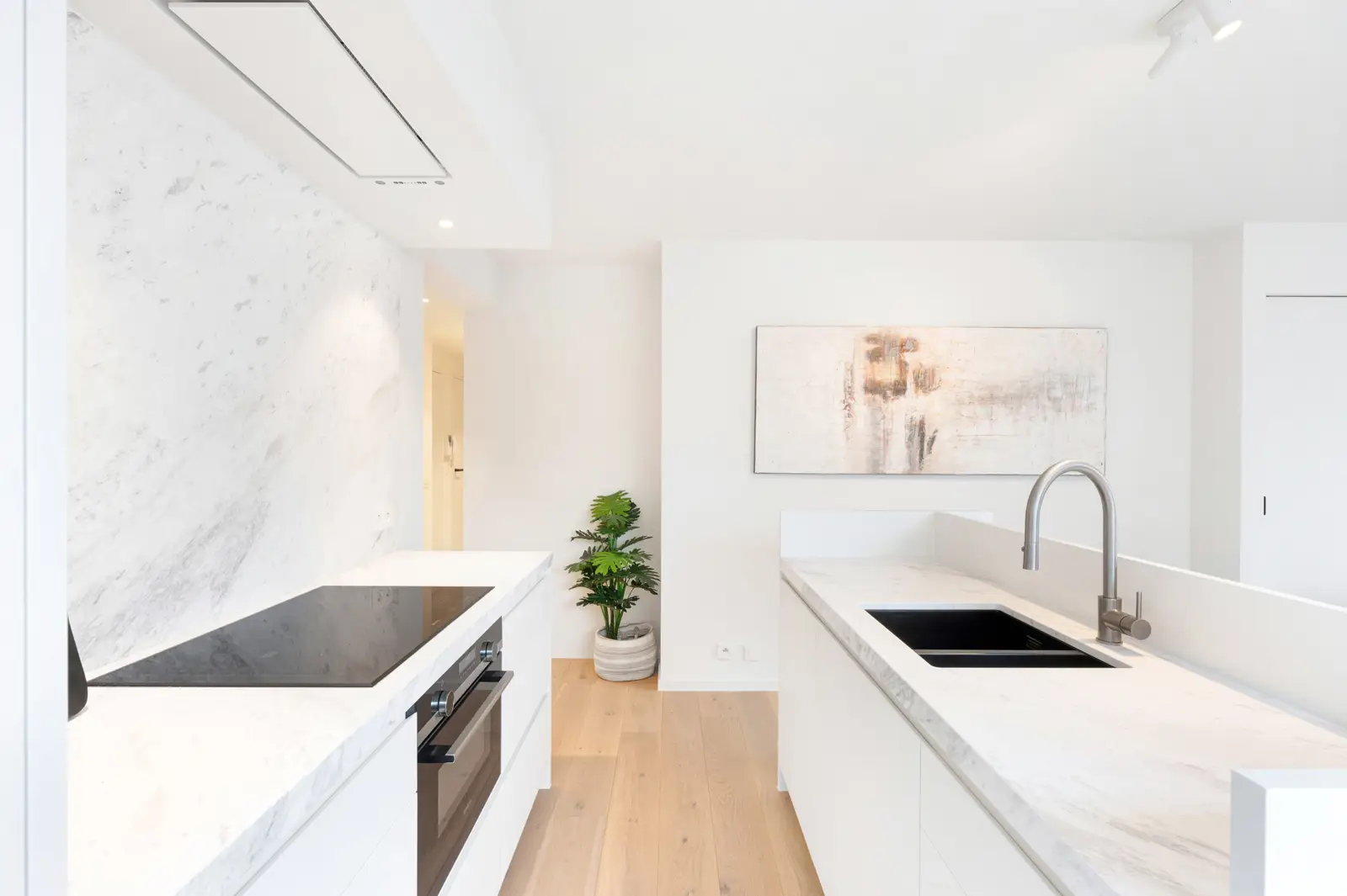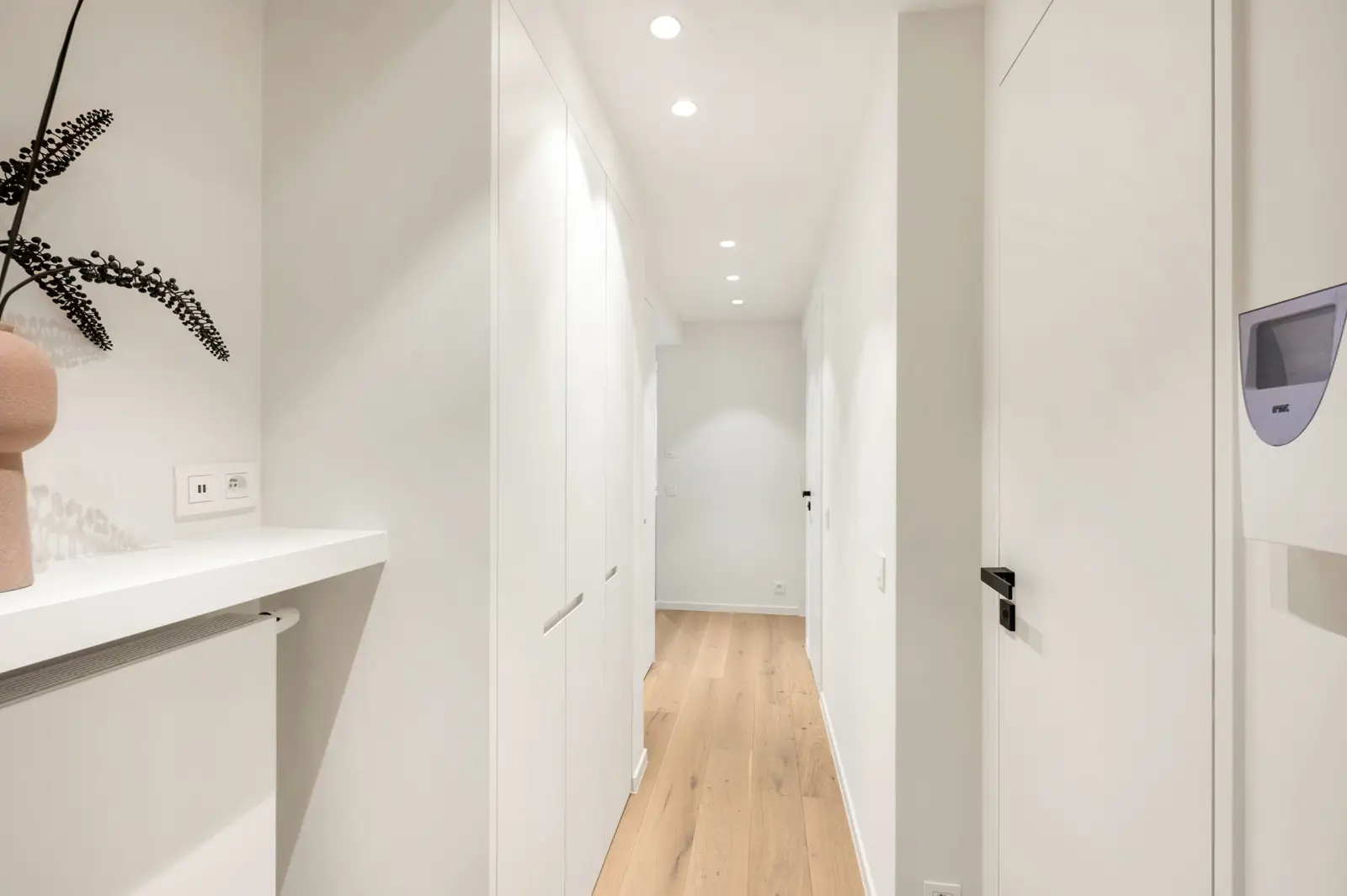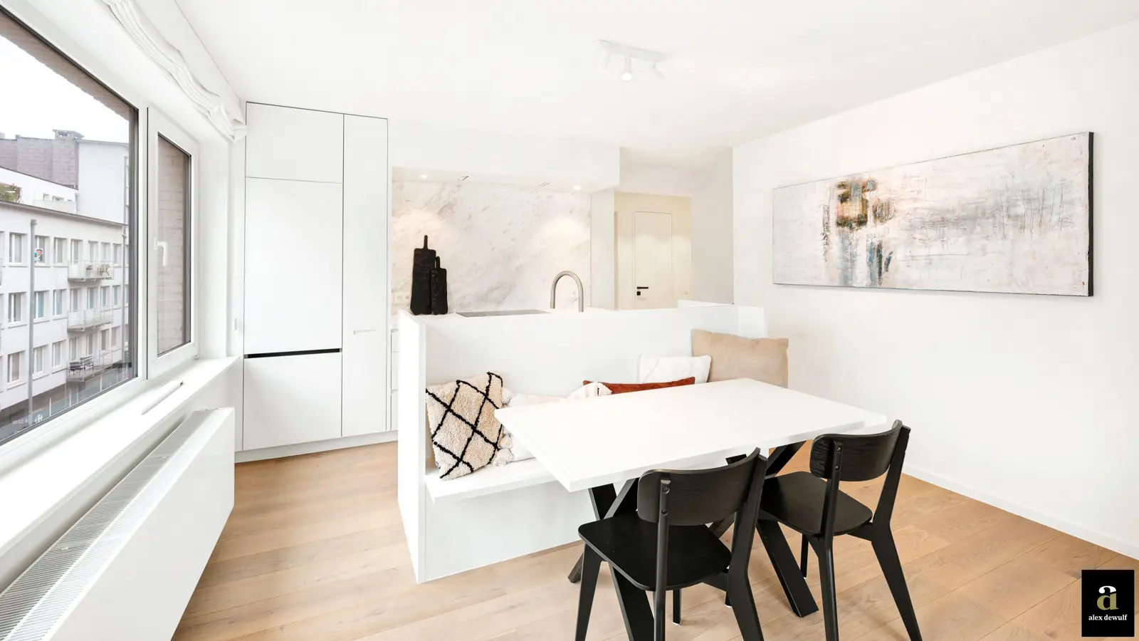 Beautiful 2-bedroom corner flat within walking distance of the beach. This flat has been tastefully renovated, with numerous built-in cupboards, modern kitchen, parquet floor, etc. Layout: entrance with storage room (with washing machine connection), separate toilet and spacious cloakroom. West-facing living room with lots of light, 2 bedrooms including a large room with double bed and built-in wardrobe, a 2nd bedroom with fold-out bunk bed and outside window. Spacious shower room separately accessible from the night hall. Fully fitted, open kitchen with cooking island (carrara marble top, fridge and dieprvies).Bicycle storage on the ground floor in the building. Natural gas heating. [EPC: 164 kW/m² UC: 2560974-RES-1]