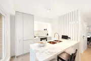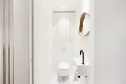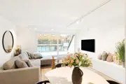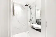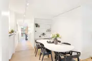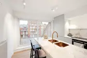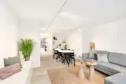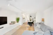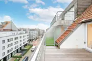 Beautiful renovated duplex apartment with 3 bedrooms and sun terraces on a central loctaie in the Leopoldlaan in Knokke. The apartment is located at 350meter from the Zeedijk. On the living level there is a beautiful new open kitchen with veneer oak cabinets and with marble kitchen top, equipped with all appliances (dishwasher, fridge, freezer, induction hob). The kitchen is located on an east facing terrace where there is room for a dining table or lounge. In addition, the kitchen has a storage room with connection for washing machine and storage space.Very bright living room with dining area both with parquet flooring opening onto the west facing terrace. There is also a guest toilet. If you take the stairs to the upper floor it has the master bedroom, a spacious bedroom equipped for a double bed + custom closets and ensuite bathroom with walk-in shower. Another additional shower room in the hallway, a separate toilet and storage closet. In the second bedroom there is also room for double bed + several built-in closets. In addition, here is also a third bedroom with built-in bunk beds and storage closet. All bedrooms have built-in wardrobes and bedside cabinets.Possibility to purchase pitch in the same building.EPC: .138 kWh/m² (UC: 2658634)