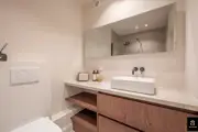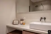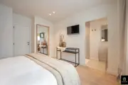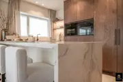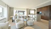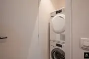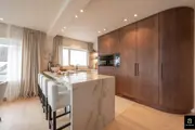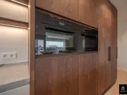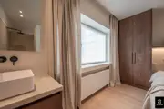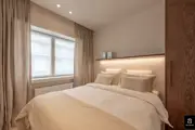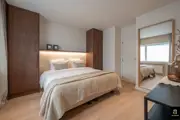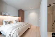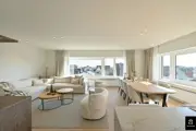 Beautiful and bright corner flat (121m²) with open views of the villas and 3 full bedrooms and 3 bathrooms, conveniently located on Jozef Nellenslaan, 100 metres from the seafront (Albertstrand). This unique flat has just been tastefully renovated (total renovation) with oak parquet flooring, oak veneer cupboards, .... marble worktops in the bathrooms and kitchen. All new furniture, Loewe TVs and linen curtains are INCLUDED in the price. Layout: entrance hall with cloakroom and separate guest WC, exceptionally spacious and south-west facing living space with nice open views of the overlying villas. Large living kitchen with breakfast bar, fully fitted with Miele appliances, 3 full-size, spacious bedrooms with double beds and fitted wardrobes (with LED lighting inside), 2 of which have an en-suite shower room, and 1 separate bathroom accessible from the night hall with an extra toilet, washbasin cabinet and walk-in shower.The apartment has 2 storage rooms (one of which is equipped with a Miele washing machine and dryer). In the basement there are 5 private spaces for storing bicycles. There is a possibility to buy a good car parking space in the same residence (from the same owner). EPC: 141 kWh/m² (UC: 2715150-RES-1)