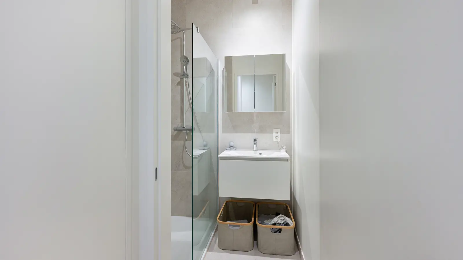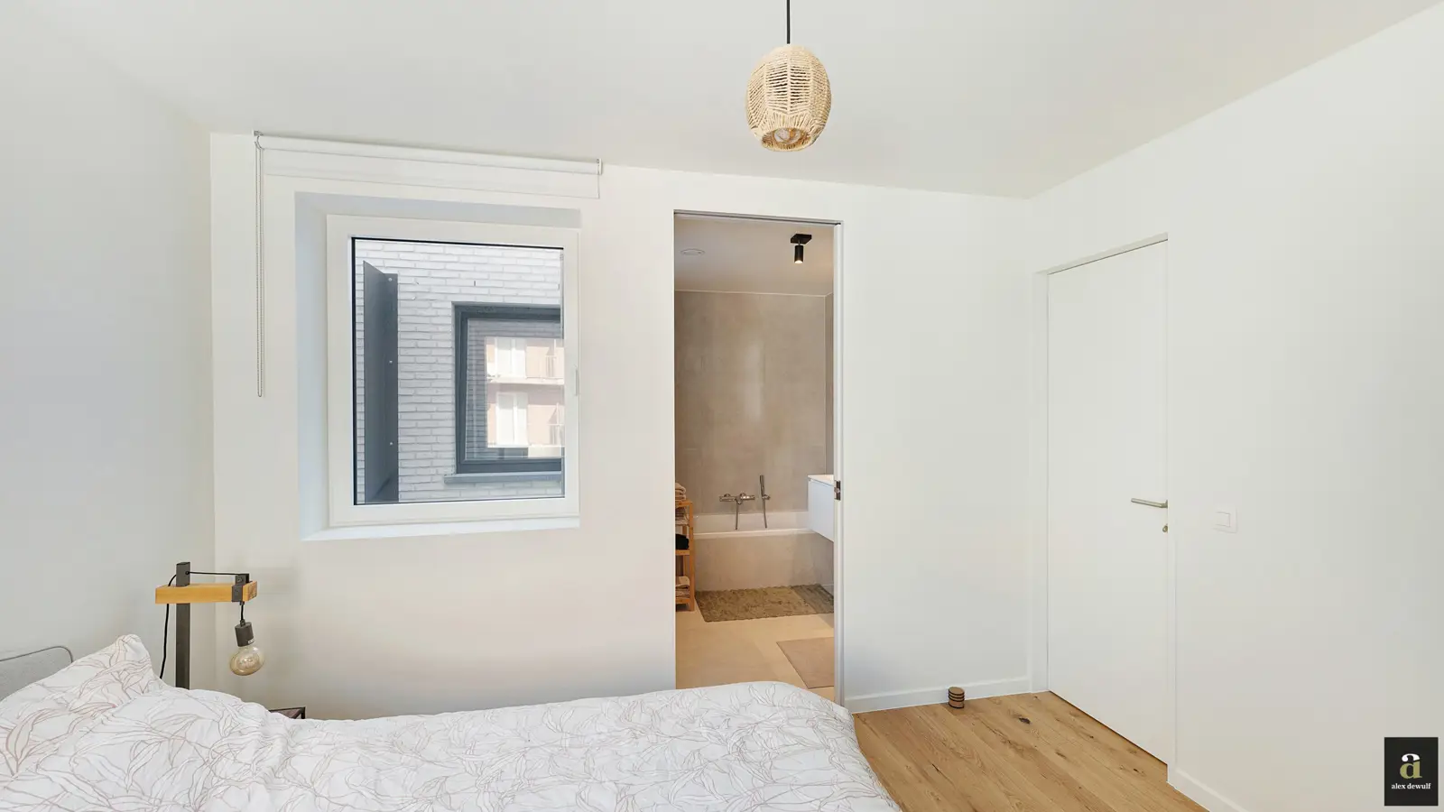 This pleasant apartment is centrally located on Lippenslaan, on the second floor of the new Cools residence. At the front, there is a cozy terrace overlooking the living room, allowing you to peacefully enjoy the bustle of the shopping street. The spacious living room and open-plan kitchen together create a bright, comfortable living space. The open kitchen includes a practical storage room with connections for a washing machine and dryer. The entrance hall features a separate guest toilet and an independent shower room. There are three full-sized bedrooms, each large enough for a double bed. The master bedroom has an en-suite bathroom with a bathtub. All rooms have windows, ensuring natural light throughout the apartment.