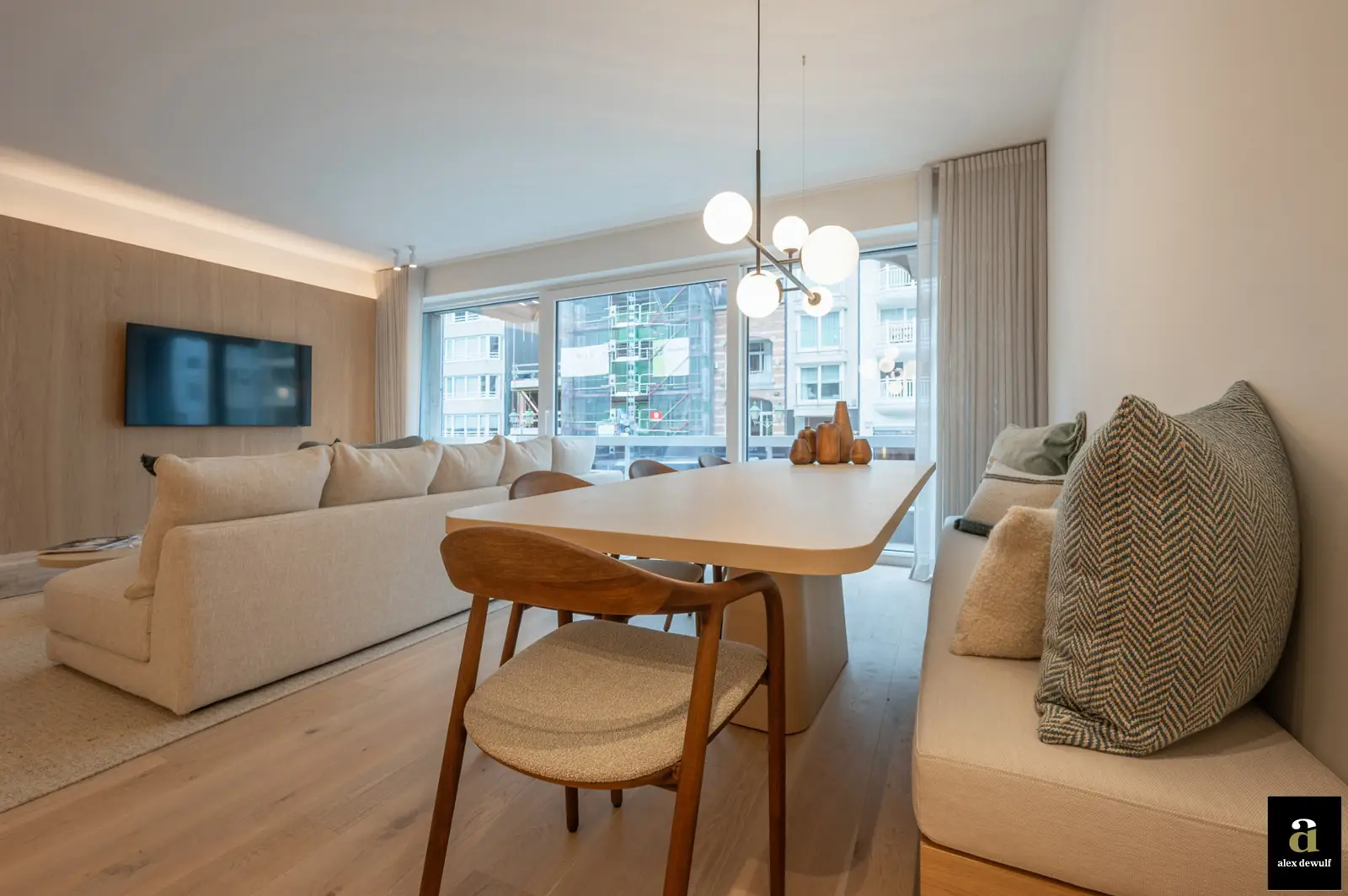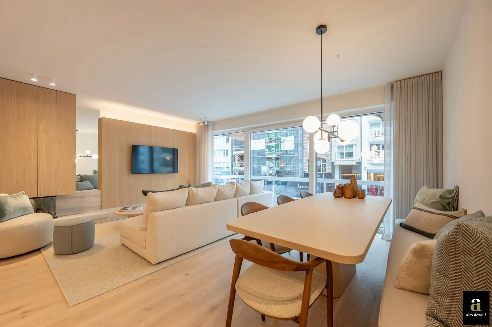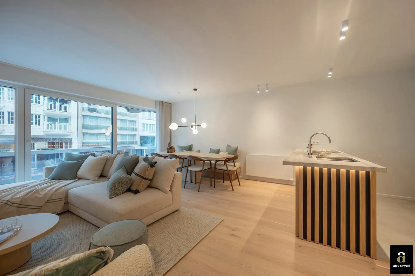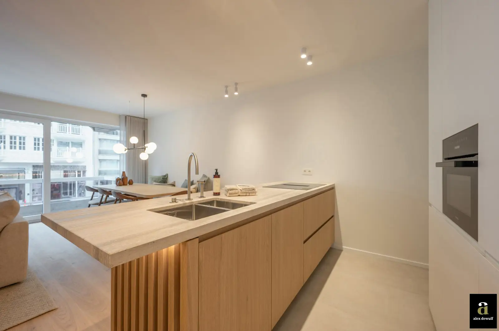 Located in the best part of Lippenslaan, this bright 3-bedroom apartment has been recently renovated with high-end finishes. Spacious living area with lounge and fireplace, parquet flooring, fine oak veneer cabinetry, travertine countertops,… Through the entrance hall with cloakroom and guest toilet, you enter the light-filled living space featuring large windows and a stylish open-plan kitchen. The living area opens onto the front terrace, perfect for enjoying the surroundings. The apartment offers three full-sized bedrooms, each with built-in wardrobes and a private en-suite shower room, ensuring a high level of comfort and privacy. A private cellar storage is included. Possibility to take over the furniture and to purchase a parking space. A move-in ready property in a prime location, ideal as a second home or investment.
