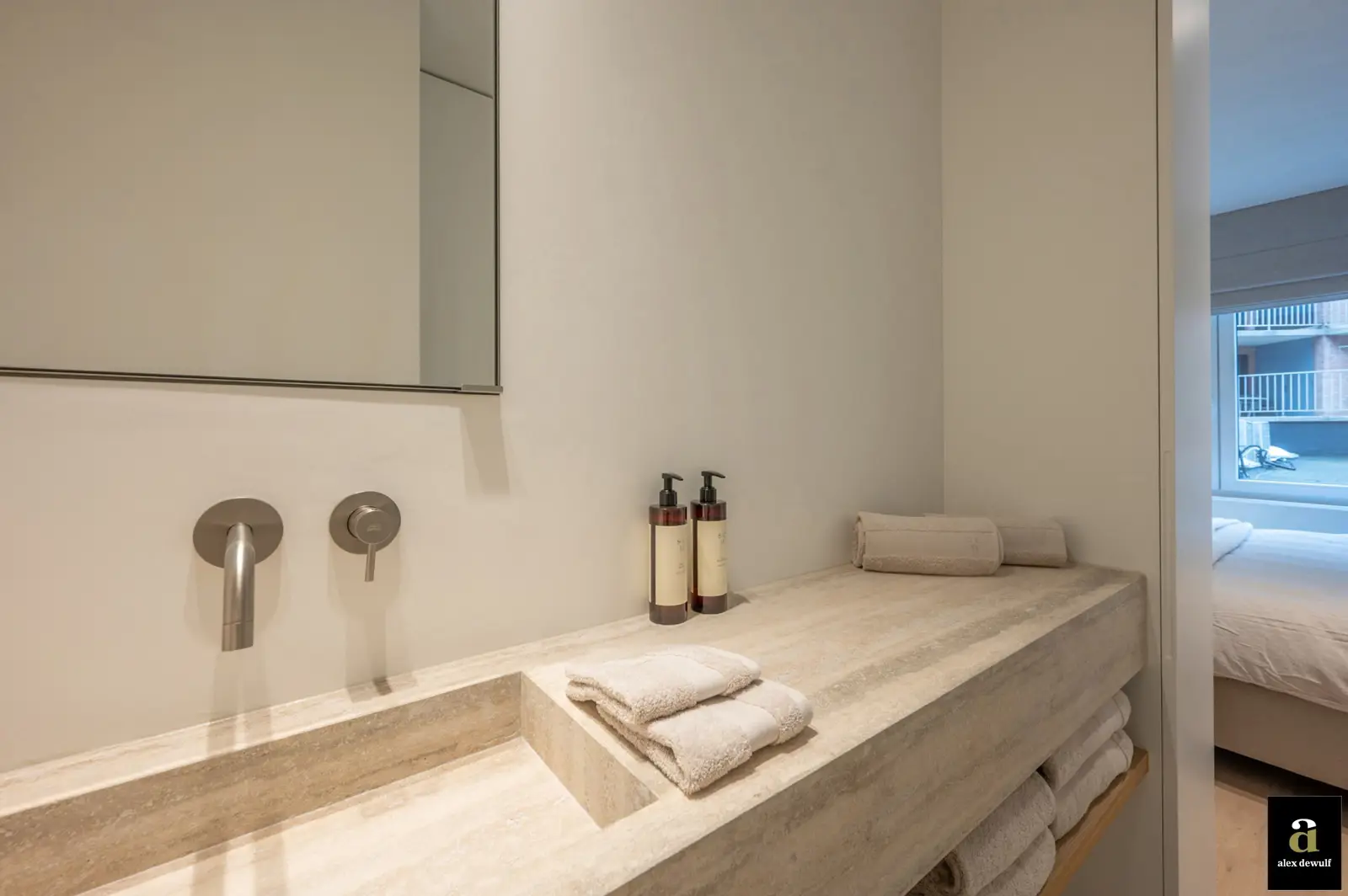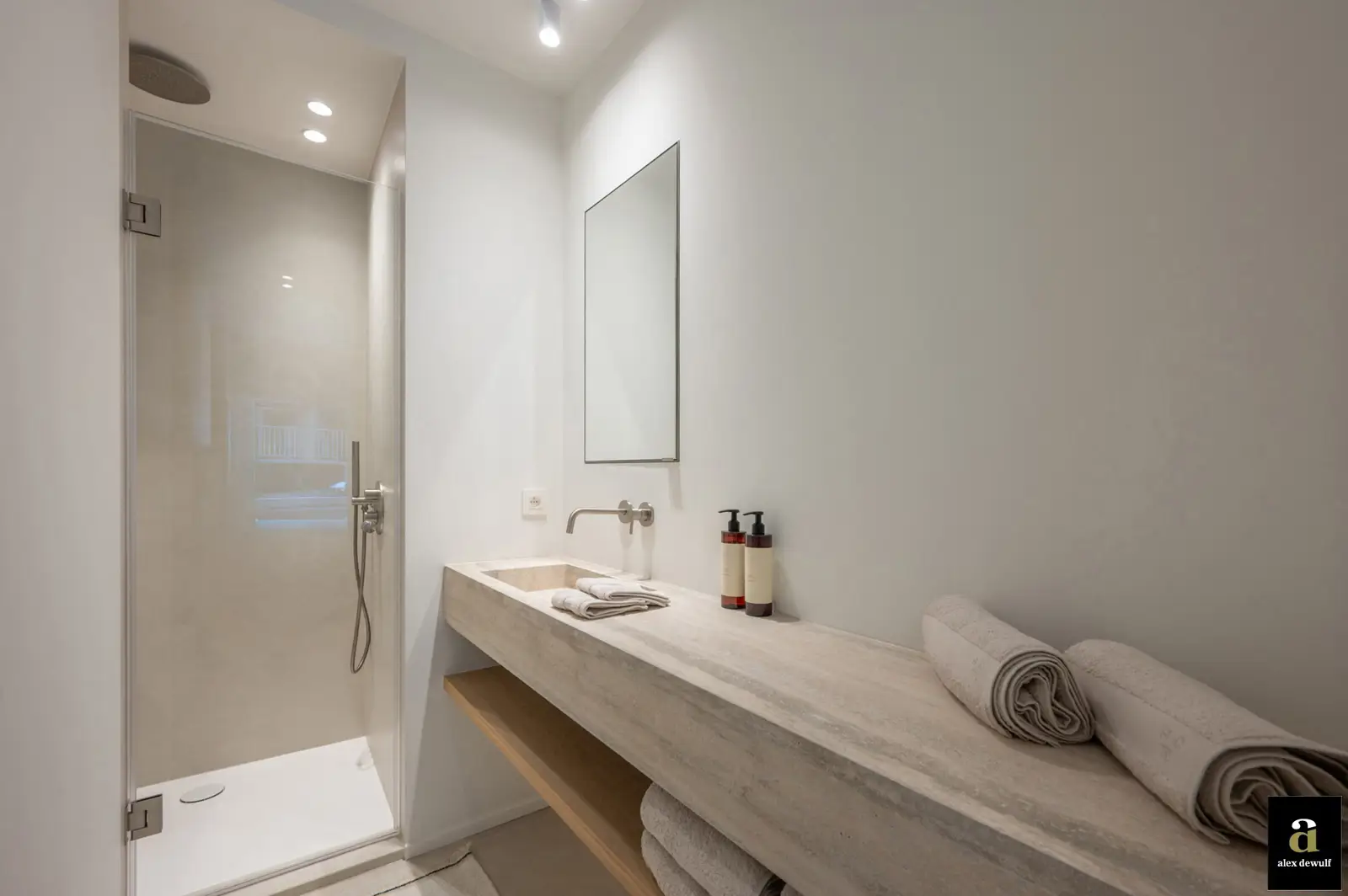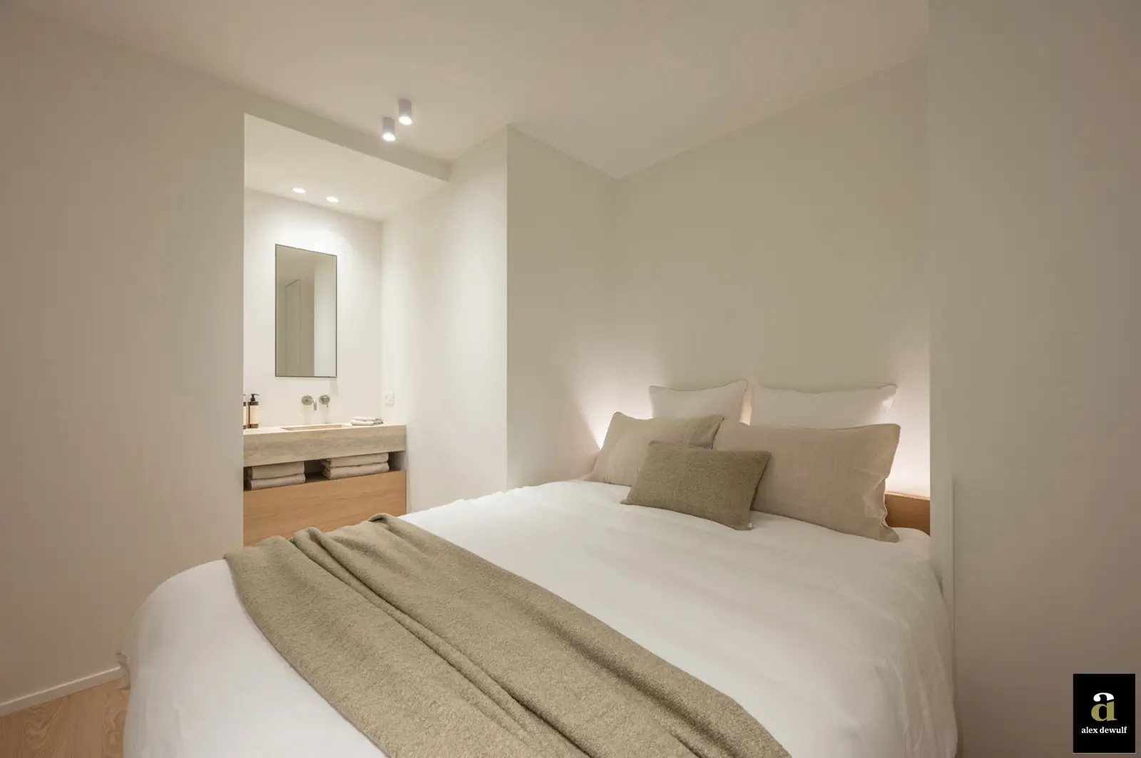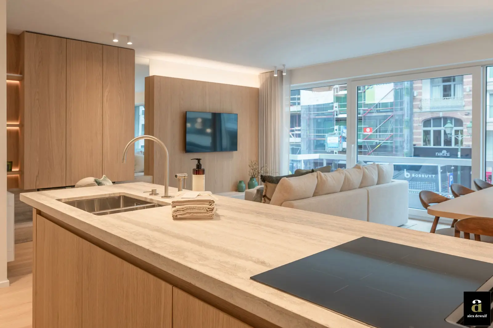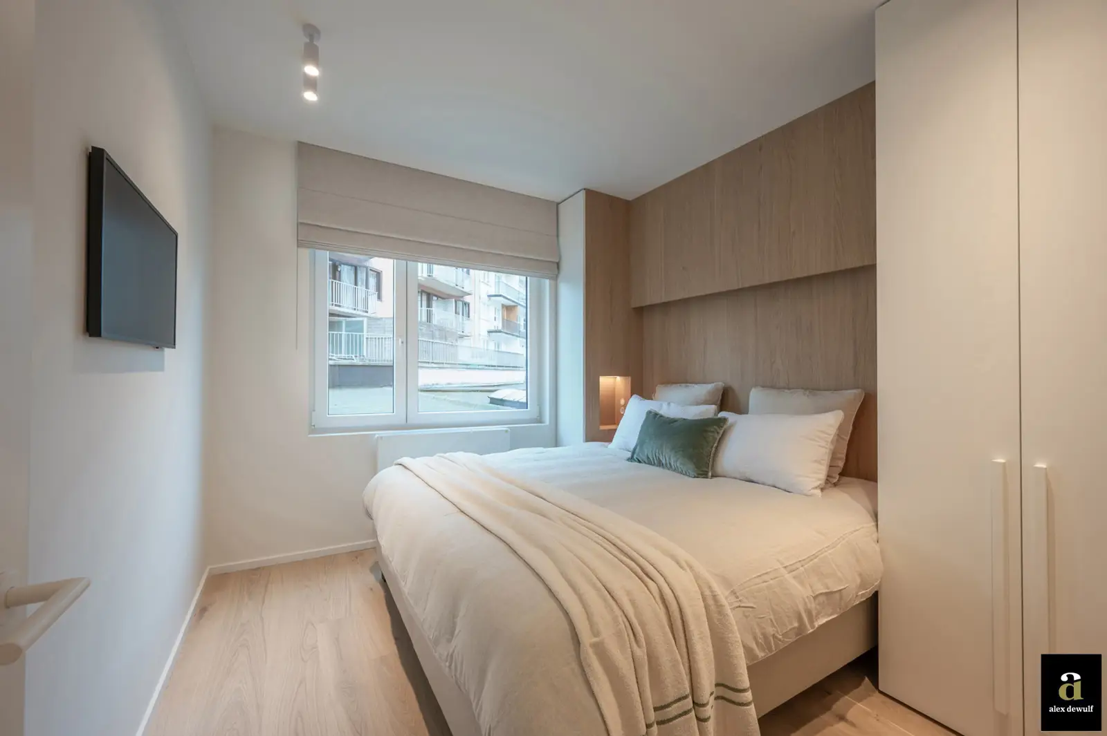 Located in the best part of Lippenslaan, this bright 3-bedroom apartment has been recently renovated with high-end finishes. Spacious living area with lounge and fireplace, parquet flooring, fine oak veneer cabinetry, travertine countertops,… Through the entrance hall with cloakroom and guest toilet, you enter the light-filled living space featuring large windows and a stylish open-plan kitchen. The living area opens onto the front terrace, perfect for enjoying the surroundings. The apartment offers three full-sized bedrooms, each with built-in wardrobes and a private en-suite shower room, ensuring a high level of comfort and privacy. A private cellar storage is included. Possibility to take over the furniture and to purchase a parking space. A move-in ready property in a prime location, ideal as a second home or investment.