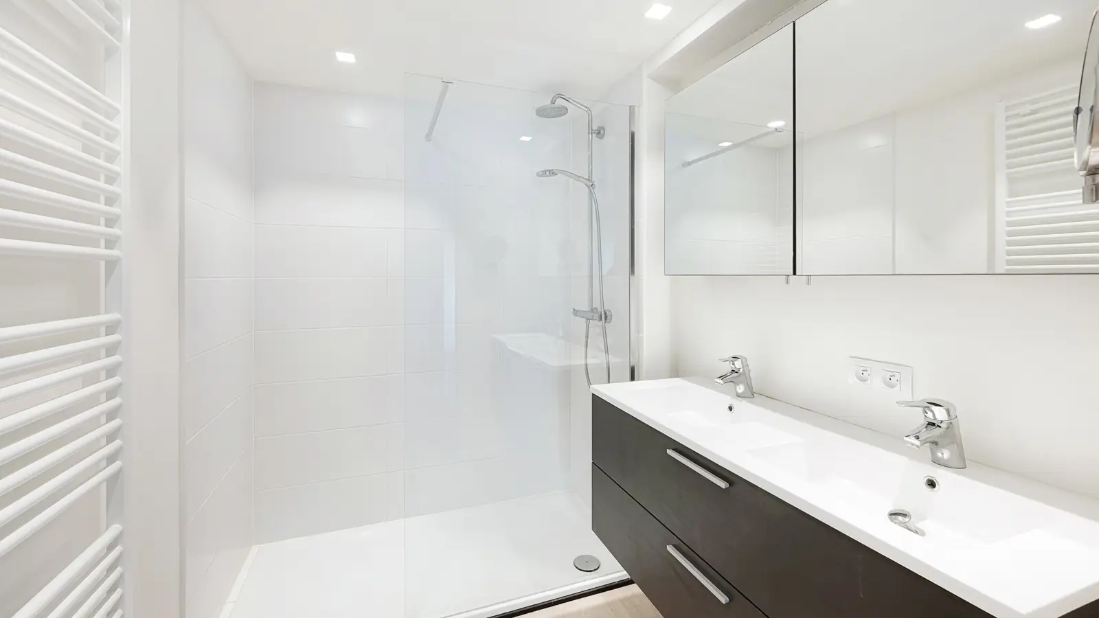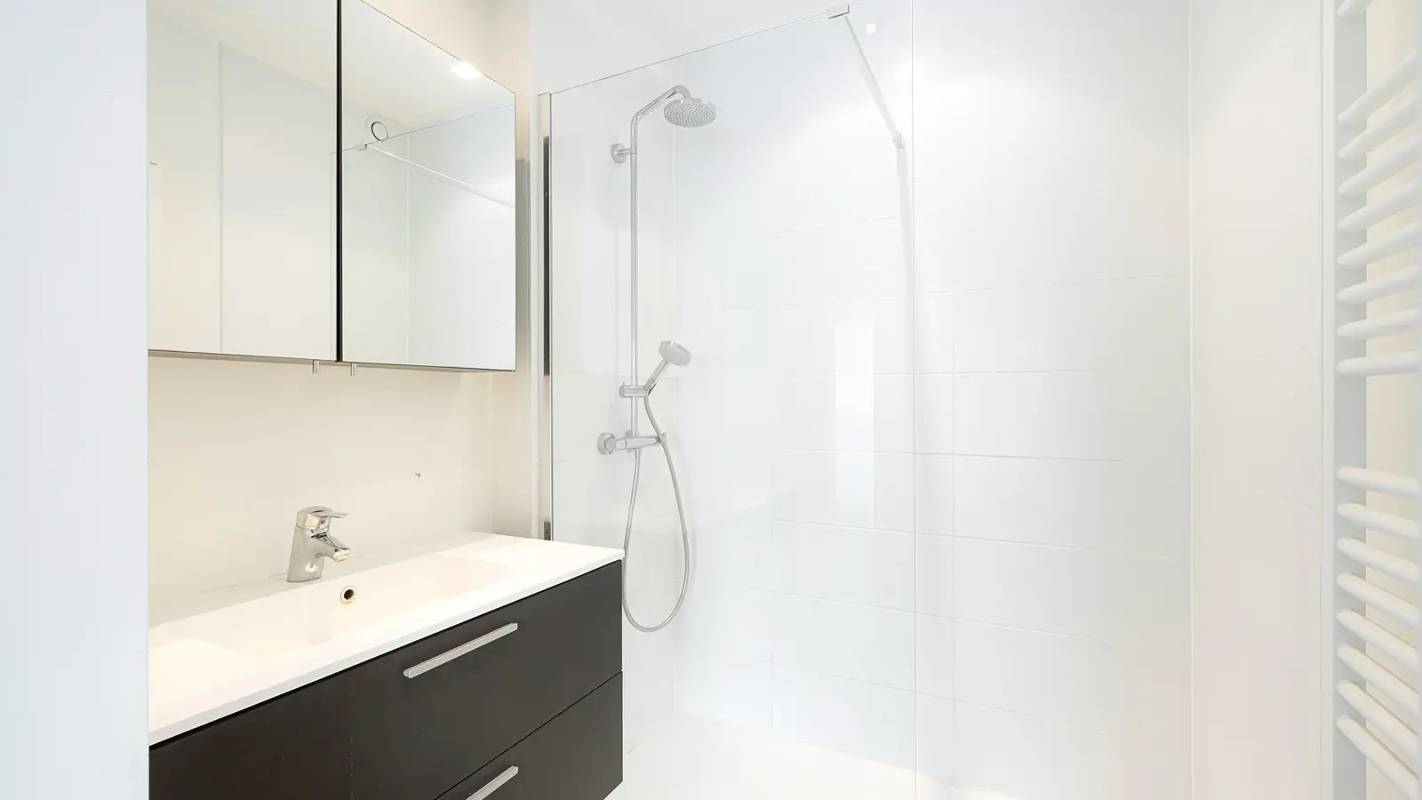 Quiet living with open views over the IJzerpark, just a short walk from the Dumortierlaan. Located in the Ieperstraat, this move-in ready two-bedroom apartment was completely renovated in 2015 and combines modern living comfort with high-quality finishes. The entrance hall leads to a bright living area with an open, fully equipped kitchen. Adjacent are a spacious storage/laundry room and a separate guest toilet. Both generously sized bedrooms feature built-in wardrobes and each has its own shower room, making the apartment particularly comfortable as either a permanent residence or a pied-à-terre. The south-west facing terrace enjoys pleasant sunlight and open green views over the park. The apartment also includes a very spacious private cellar and a shared bicycle storage area. There is the possibility to rent a garage box on the ground floor of the same residence.