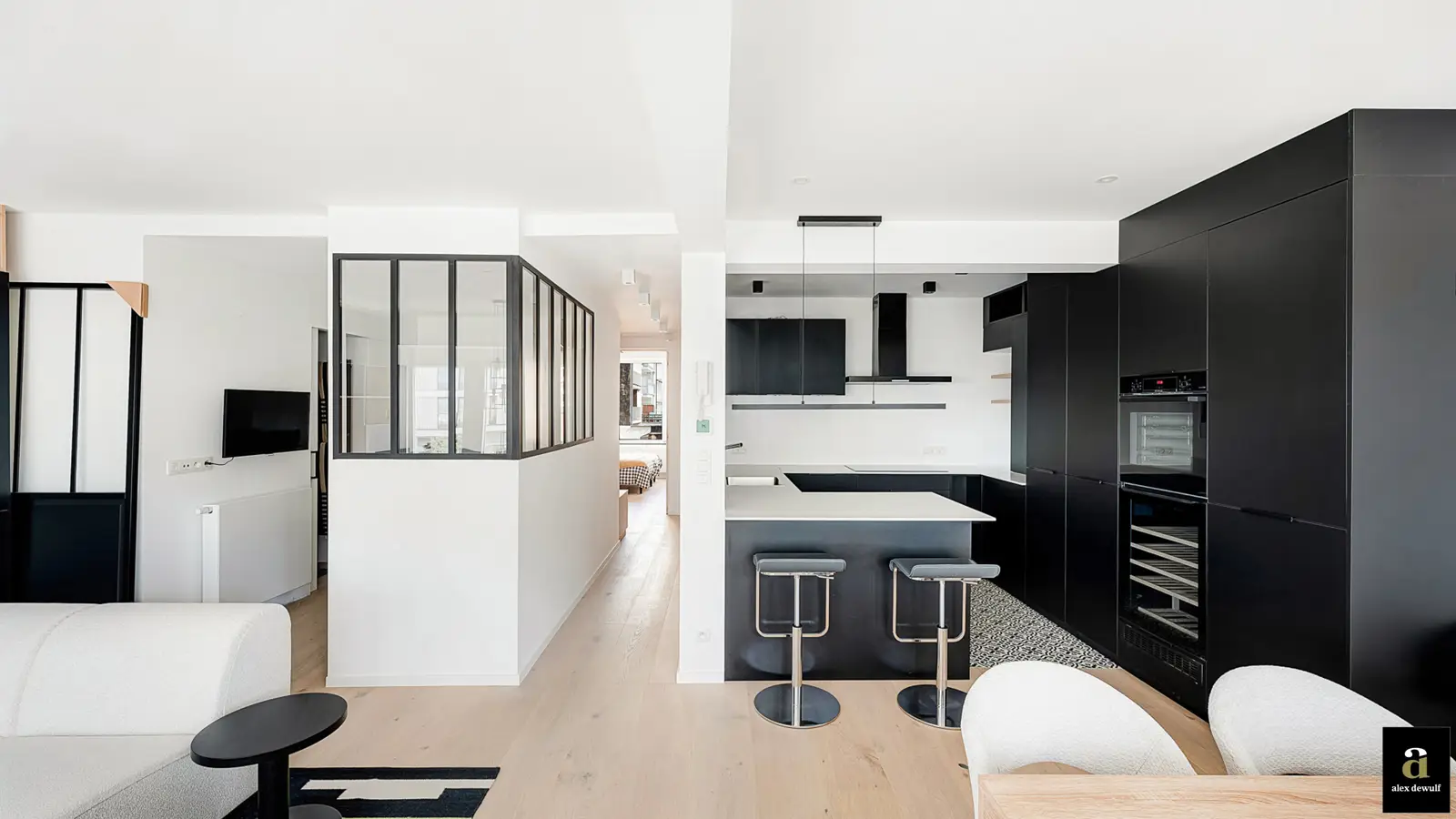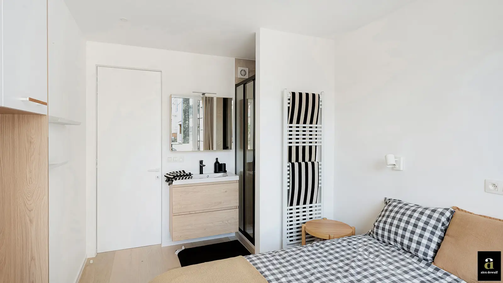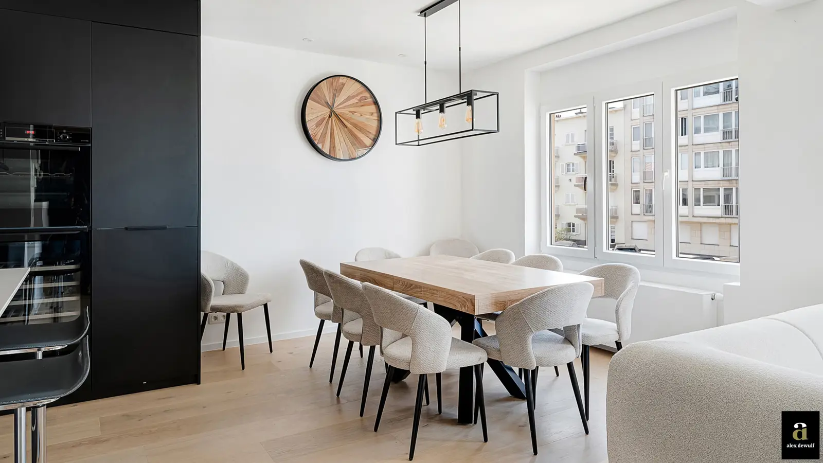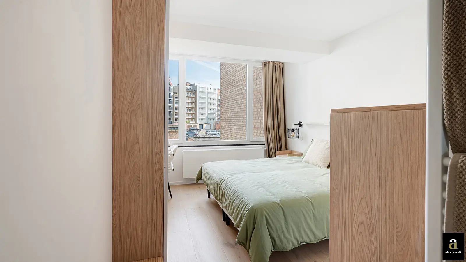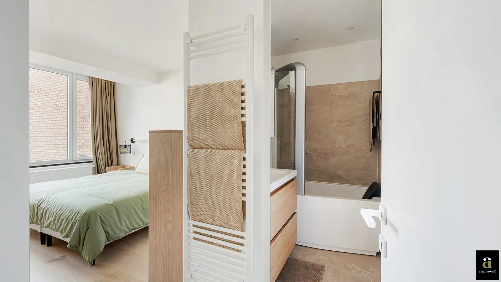 Stylishly renovated apartment with beautiful sea views at Albert Beach, within walking distance of the vibrant centre of Knokke. Entrance hall with cloakroom and guest toilet. Spacious and bright living and dining area overlooking the sea. Open, modern kitchen fitted with high-quality appliances. The apartment features two generous bedrooms, each with its own en-suite shower room or bathroom. Both bedrooms are equipped with built-in wardrobes and a desk. A third room can be used as an additional bedroom, home office or reading area and also has a shower room. Communal bicycle storage and private cellar included. Furniture is included in the price.