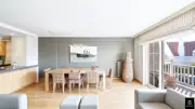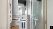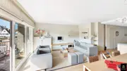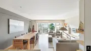 Sunny apartment in a prestigious residence with distinctive Norman architecture, ideally located on J. Nellenslaan between Sterrenlaan and Meerlaan, within walking distance of the beach and sea.The light-filled living room with beautiful façade width connects to a pleasant terrace and offers a panoramic view of the villas of Albertstrand. A stylish dining area and open kitchen, fully equipped with contemporary comforts, complete the living space. Practical storage room and guest toilet available.At the rear are two full bedrooms, each with built-in wardrobes and space for a double bed. Both rooms have direct access to the rear terrace and each has its own en-suite bathroom (bath or shower).A particularly attractive apartment in an absolute prime location, perfect for those who love light, space and timeless style.
