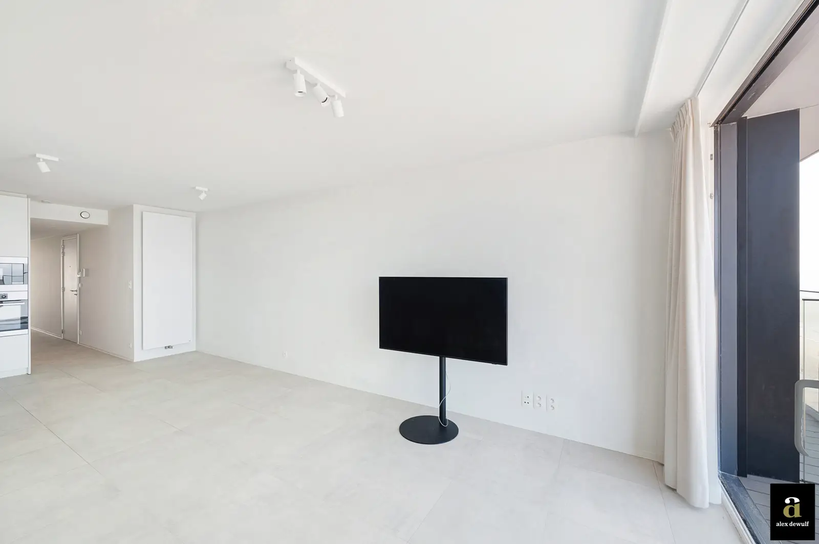 In a recent residence on the seafront promenade of Knokke, you will find this stylish apartment (2020) with breathtaking, unobstructed sea views. The building also overlooks the newly planted dune belt, providing a unique and natural setting. The modern architecture and high-quality finishes make this property a rare opportunity in a truly prime location. Upon entering, you are welcomed by an inviting entrance hall with guest toilet and a practical storage room. The bright living area flows seamlessly into the open-plan kitchen and the terrace, where you can take in the panoramic views of the sea, beach, and dunes. The apartment offers two bedrooms, one of which has access to a second rear terrace, guaranteeing extra outdoor space and natural light. The bathroom is fitted with a shower and quality materials. A private cellar storage room is also included with the property.