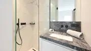 Exceptional 2-bedroom flat with beautiful finish close to the Casino, on the seafront in Albertstrand.Possibility to buy a car parking space in the adjacent building.Composition: entrance hall with cloakroom and separate toilet. Spacious living room with large windows overlooking the beach and the sea.Customised TV cabinet, beautiful open kitchen with marble worktop, storage room attached.Night hall with wardrobe, 2 bedrooms (room for double bed), built-in wardrobe, shower room with washbasin cabinet and walk-in shower accessible via the night hall. The master bedroom has its own shower room.Private cellar. Communal bike shed.The facade, lift and entrance hall of the building were recently renewed.EPC: 224 kWh/m² (UC: 2593843)