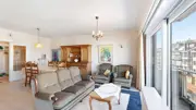 Centrally located 2-bedroom apartment with open view of the Abraham Hansplein, this a few steps from the Lippenslaan and the Zeedijk.Layout: entrance hall, guest toilet, spacious living room with west facing terrace (evening sun), separate kitchen, two large bedrooms with ensuite shower rooms, one with east facing terrace (morning sun).Private cellar in the building.Possibility to purchase a covered pitch in the residence at 70,000 EUR.EPC: B-label (168 kWh/m2/j) [UC: 3289786]