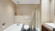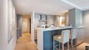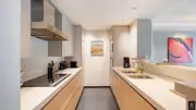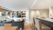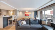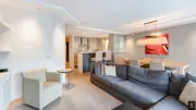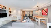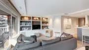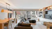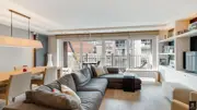 Situé sur la prestigieuse Avenue du Roi, cet appartement lumineux et soigné offre trois chambres et une terrasse orientée à l’ouest. Grâce à sa large façade de 6,4 m et à son exposition ensoleillée, le séjour bénéficie d’une belle luminosité tout l’après-midi.Le salon est équipé de quatre stores électriques avec télécommande, et l’ensemble de l’appartement a été rénové en 2024 avec un nouvel éclairage LED et de nombreux variateurs d’intensité pour une ambiance chaleureuse et modulable. La cuisine ouverte avec îlot s’intègre harmonieusement à la salle à manger et au salon.À l’arrière se trouvent deux grandes chambres, chacune avec sa propre salle de bains attenante. La salle de bains principale est équipée d’un jacuzzi pour un confort optimal. La troisième chambre dispose d’un lit superposé et d’un bureau escamotable.Une buanderie séparée abrite une nouvelle chaudière à condensation au gaz (remplacée en 2022).Autres atouts : des armoires encastrées, une finition soignée et une spacieuse terrasse orientée à l’ouest.