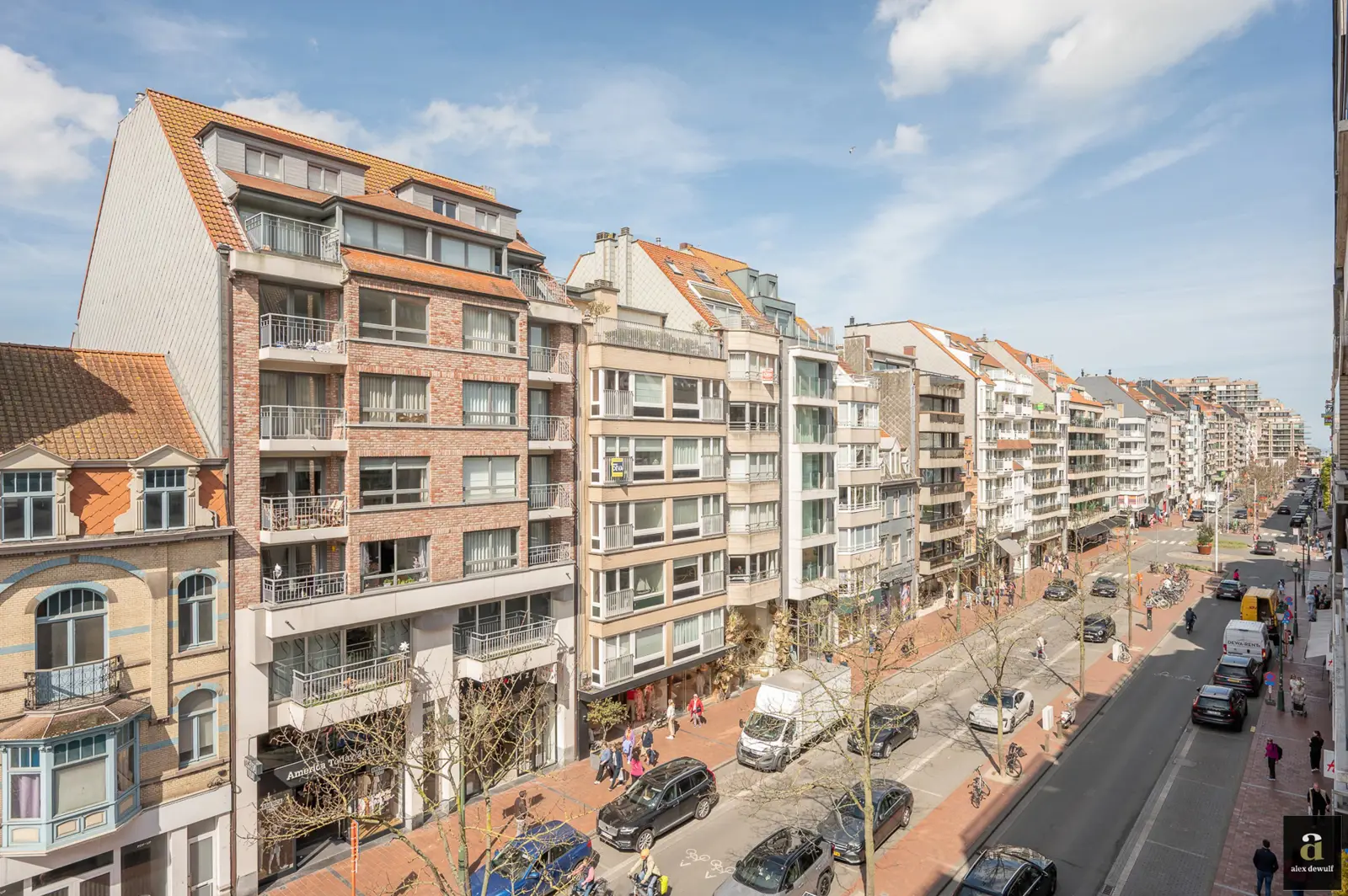 À l’angle de la Lippenslaan et de la Zoutelaan, au quatrième étage, se trouve cet appartement d’angle baigné de lumière. Grâce aux nombreuses baies vitrées et à l’agencement ouvert, l’appartement profite d’une belle luminosité naturelle, créant une atmosphère détendue et une véritable sensation de vacances.Le séjour et la cuisine s’intègrent dans un espace ouvert, avec une cuisine équipée d'appareils de qualité et un îlot central. L’espace repas adjacent dispose d’une banquette sur mesure.L’appartement comprend trois chambres, dont deux grandes chambres et une chambre avec lits superposés et salle de douche attenante. Il y a également des toilettes séparées pour les invités et une salle de bains spacieuse avec douche, double lavabo et toilettes. La situation est un véritable atout : en plein centre, à distance de marche des commerces, des restaurants et de la plage. PEB : label B (105 kWh/m²/an)