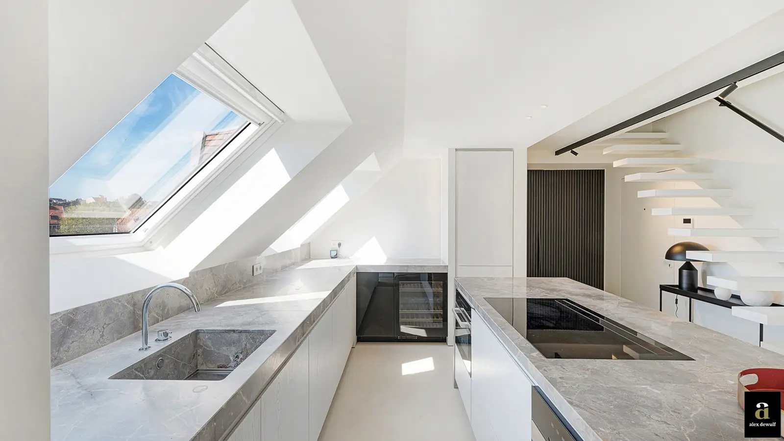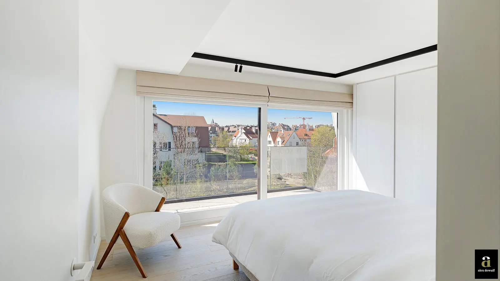 Appartement luxueusement rénové situé au calme à quelques pas de la plage et de la place Albert au Zoute. Séjour lumineux avec feu et accès à la terrasse ensoleillée. Cuisine entièrement équipée avec tous les appareils de Miele. Chambre de maître qui donne sur la deuxième terrasse ensoleillée. Salle de douche attenante (douche à l'italienne, double lavabo et toilette). A l'étage: 2ème chambre double avec sa salle de douche. 3ème chambre avec sa salle de bain (bain, lavabo et toilette). Hall de nuit avec toilette séparé. Buanderie. Chaque chambre a des armoires encastrées. Cave privative et local à vélos. Finitions de haute qualité: Vola, microtopping, frigo à vin, ... Possibilité d'acheter 1 box de garage au -1 dans la résidence. La résidence a adopté un style frais et contemporain : balcons transparents, sentiers rénovés, jardin réaménagé, ...
