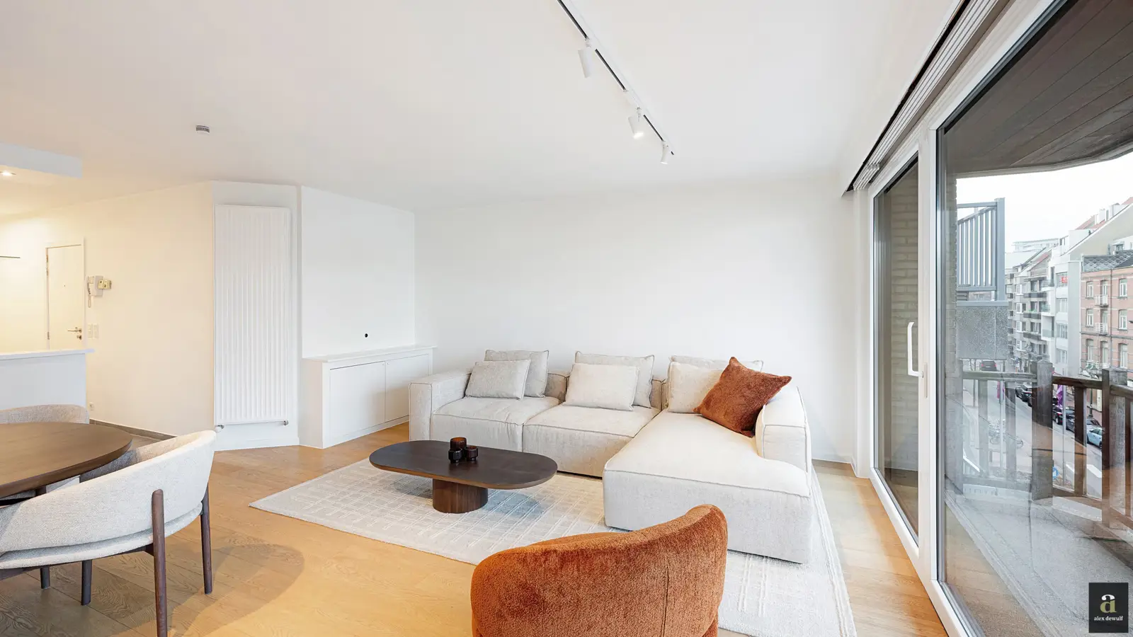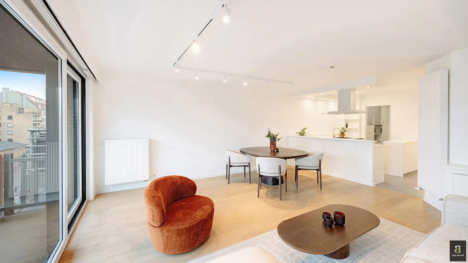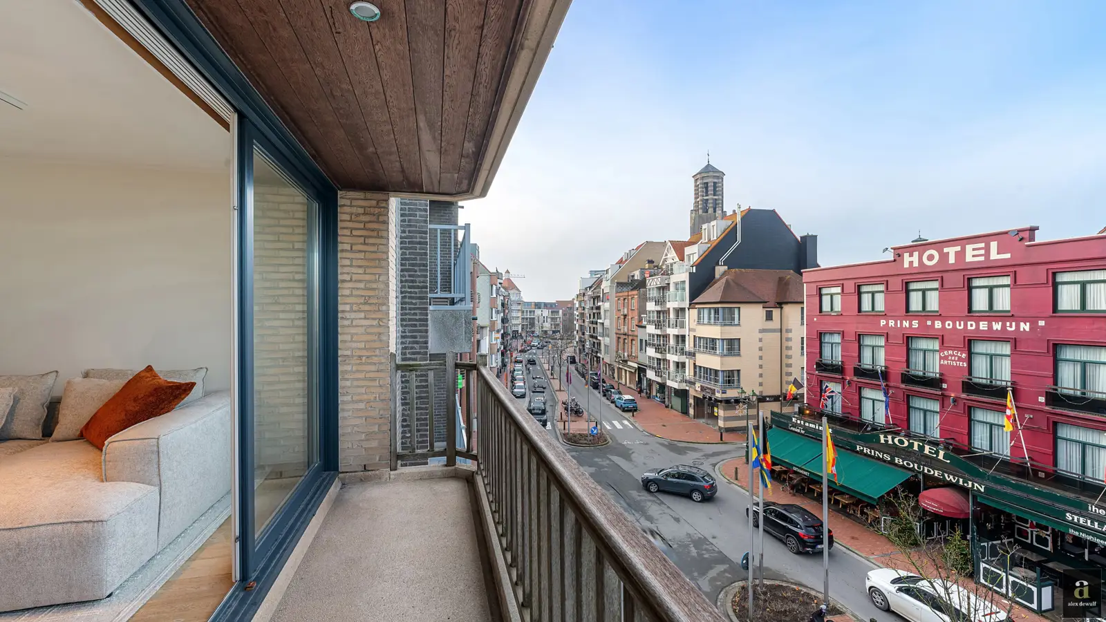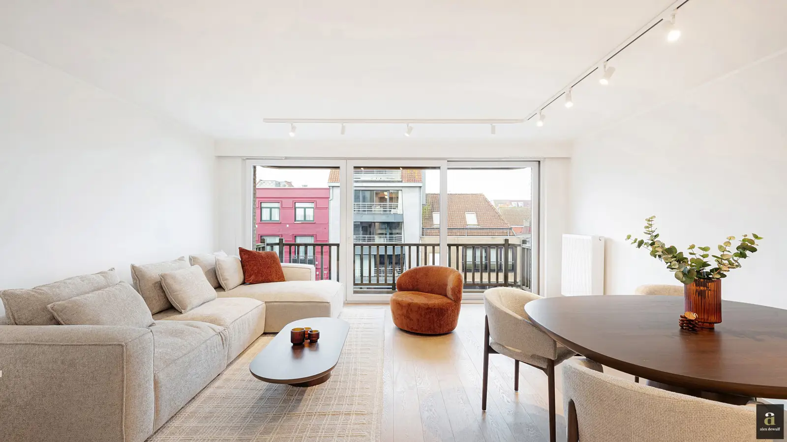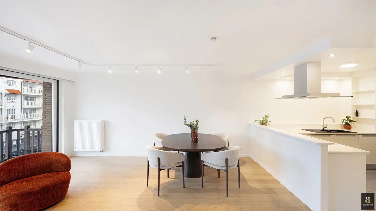 Au centre de Knokke, sur la dynamique Lippenslaan, se trouve cet appartement spacieux et lumineux offrant deux vraies chambres. Un équilibre idéal entre situation centrale, confort de vie et terrasse ensoleillée.DispositionUn vaste hall d’entrée avec toilette séparée mène au séjour généreux, baigné de lumière grâce à ses larges baies vitrées et son accès à la terrasse orientée ouest, parfaite pour profiter du soleil l’après-midi et en soirée (6 m de façade !).La cuisine ouverte, entièrement équipée, s’intègre harmonieusement à la pièce de vie et dispose d’une buanderie ou réserve attenante très pratique.Les deux chambres bénéficient chacune de leur salle de bains privative : l’une avec baignoire, l’autre avec douche — une configuration confortable pour résidents et invités.L’appartement a été récemment rafraîchi et dégage une atmosphère contemporaine et agréable.Une cave privative complète l’ensemble.