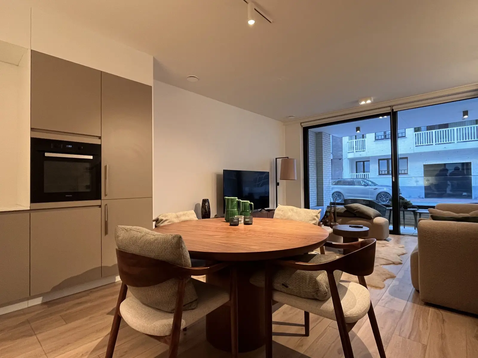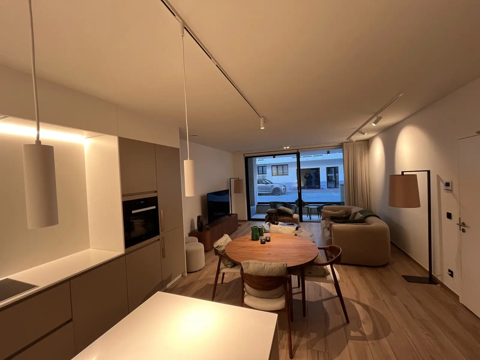 RESIDENTIE WATERVLIET - Gelijkvloers - Energiezuinig nieuwbouwproject met een hoogwaardige afwerkingen gelegen in het centrum van Knokke, nabij de Winkelstraten en op enkele meters van het strand.INDELING:- Bij het betreden van het gelijkvloers appartement komen we in de open leefruimte met bijzonder veel lichtinval, op de vloer werd een Belgisch/Italiaans keramisch designparket gelegd.- Een open Belgische DEKEYZER laminaatkeuken met UNISTONE werkblad/spatwand en MIELE toestellen.- Duitse SCHÜCO aluminium schuiframen, nachthal met glasdeur, zonneterras in het zuiden en een klein terras in het noorden voor maximale lichtinval,- Op de nachthal is er een apart toilet en technische ruimte met voorziening voor een wasmachine.- Vervolgens komen we in de masterbedroom met aansluitend eigen badkamer voorzien van bad/douche-combinatie en ruime wastafel, volgende materialen werden gebruikt in elke badkamer: Italiaans CATALANO keramiek met NOBILI verchroomd kraanwerk, Duitse KALDEWEY douche/bad (hotelkwaliteit)- De tweede slaapkamer beschikt tevens over een douchekamer, ingemaakte kasten en gezellig terras. Vanuit dit terras is er rechtstreeks toegang tot een private berging.EXTRA INFORMATIE:- Videofoon met mogelijkheid om de voordeur te openen met card/cijfercode/WIFI op smartphone- TV en internet op alle kamers- Inbraakpreventie : camerabewaking gemene delen zonder verstoring van privacy,- Energiezuinige E20-woning met Zweedse NIBE geothermische warmtepomp voor vloerverwarming en -koeling, sanitair warm water (afrekening op calorimeter).- Naast thermisch ook akoestisch geïsoleerd tussen de verschillende verdiepingen en buren- Ventilatie D met energierecuperatie- Technische inbouwkasten zijn voorzienAlgemene onkosten: €125/maandZeer ruime privatieve berging (10m2) gelegen op niveau -1, in de kelderberging kan u uw fietsen plaatsen (oplaadpunt voor elektrische fietsen voorzien). De kelderberging is makkelijk te bereiken met de lift, ook uw fietsen kunnen via de lift naar beneden worden gebracht.Beschikbaar vanaf: 01/04/2026.Het appartement werd volledig geschilderd voor de oplevering. Alle appartementen zijn uitgerust van lichtarmaturen over het hele appartement.HUURVOORWAARDEN:- Kan op vennootschap worden gehuurd.- 3 maanden huurwaarborg- verzekering- plaatsbeschrijving op gedeelde kost (50/50)- indien tweede verblijf: taks tweede verblijf ten laste van de huurder- verbruik nutsvoorzieningen (water, gas, elektriciteit, internet, ...) komt bovenop de huurprijs en wordt bij intrede op naam van de huurder geplaatst.-Mogelijkheid om meubels over te nemen van huidige huurder