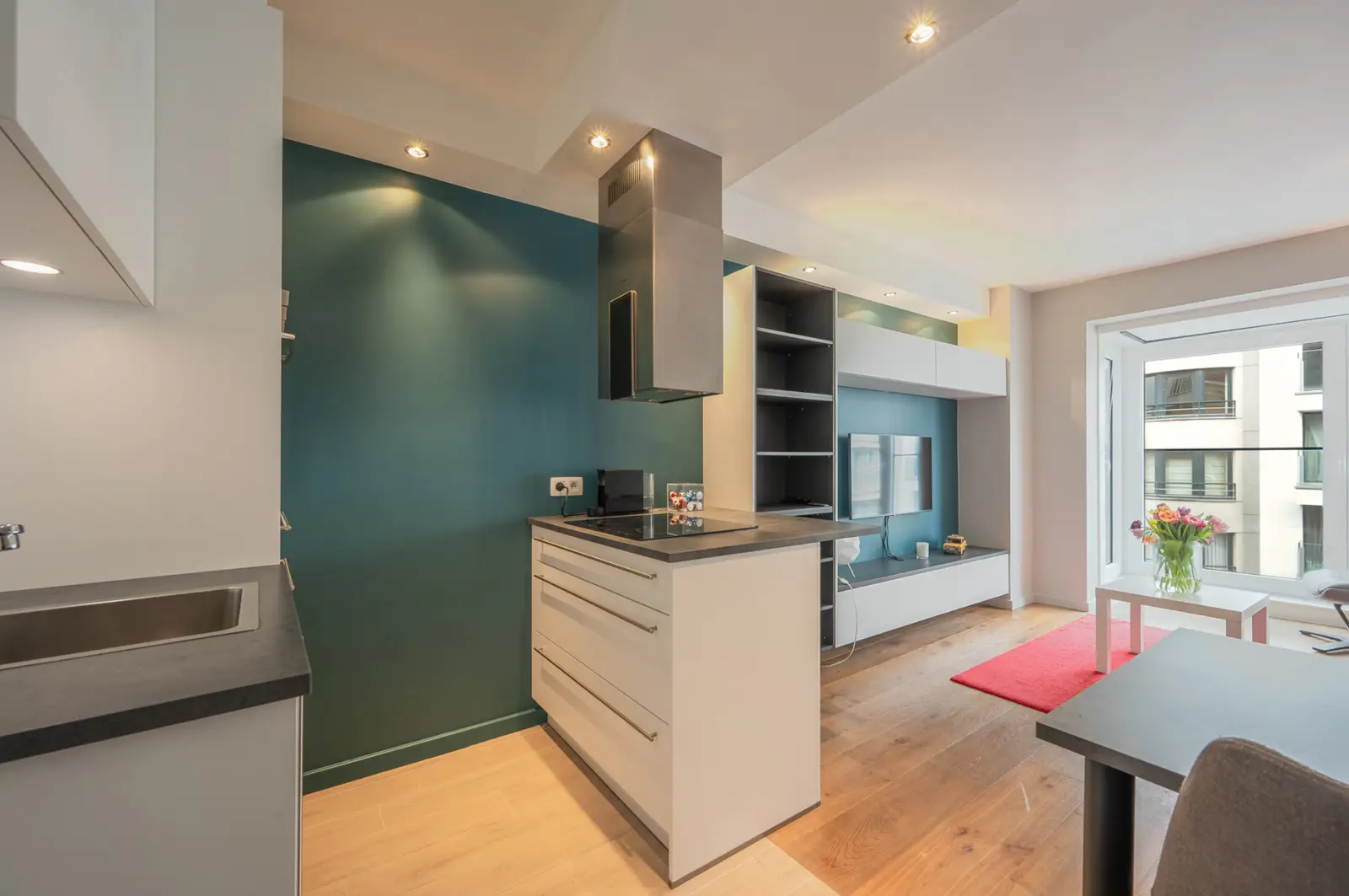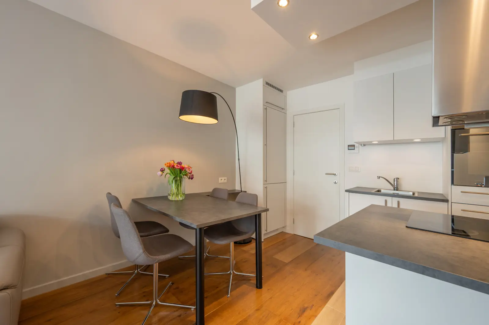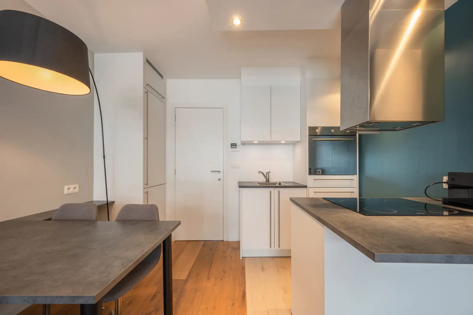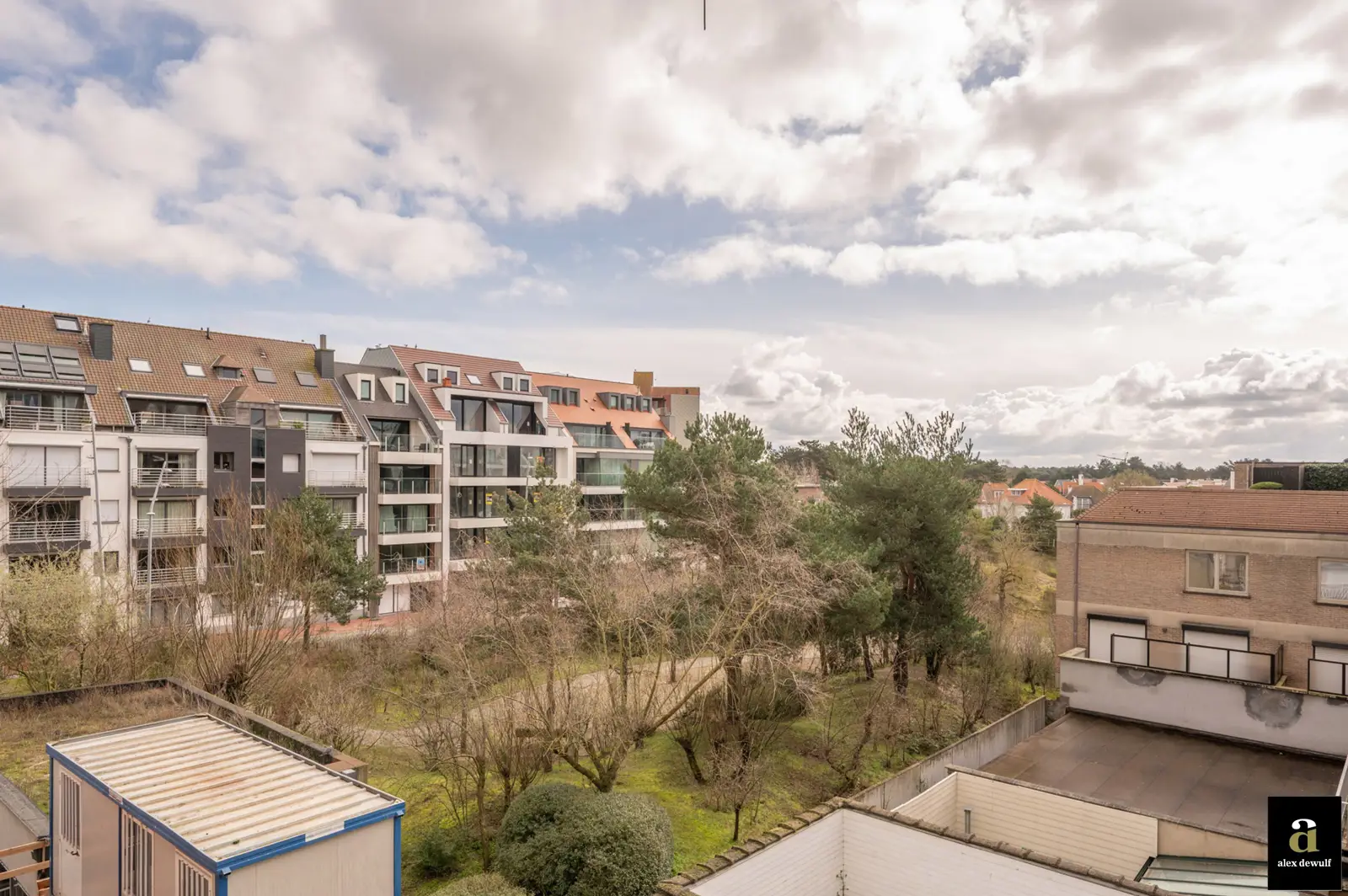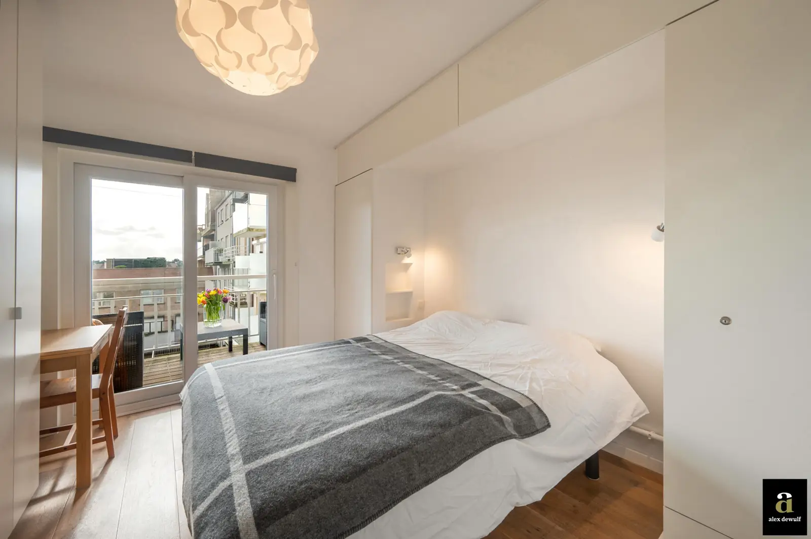 Charmante pied-à-terre, ideaal gelegen in de Dumortierlaan, op slechts enkele stappen van de zee en de exclusieve winkelstraten van Knokke.Indeling: inkomhal met vestiaire. Lichtrijke woon- en eetkamer en open keuken met zicht op de Dumortierlaan. Slaapkamer met ingemaakte kasten en toegang tot een aangenaam terras op het Zuiden met open zicht. Badkamer uitgerust met lavabo, combi bad/douche, toilet en aansluiting voor wasmachine en droogkast. Tweede slaapkamer. Verder beschikt het appartement over een privatieve kelder en een gemeenschappelijke fietsenberging. Mogelijkheid tot het huren van een garagebox in de onmiddellijke omgeving. De gevel van de residentie werd in 2020 volledig vernieuwd.