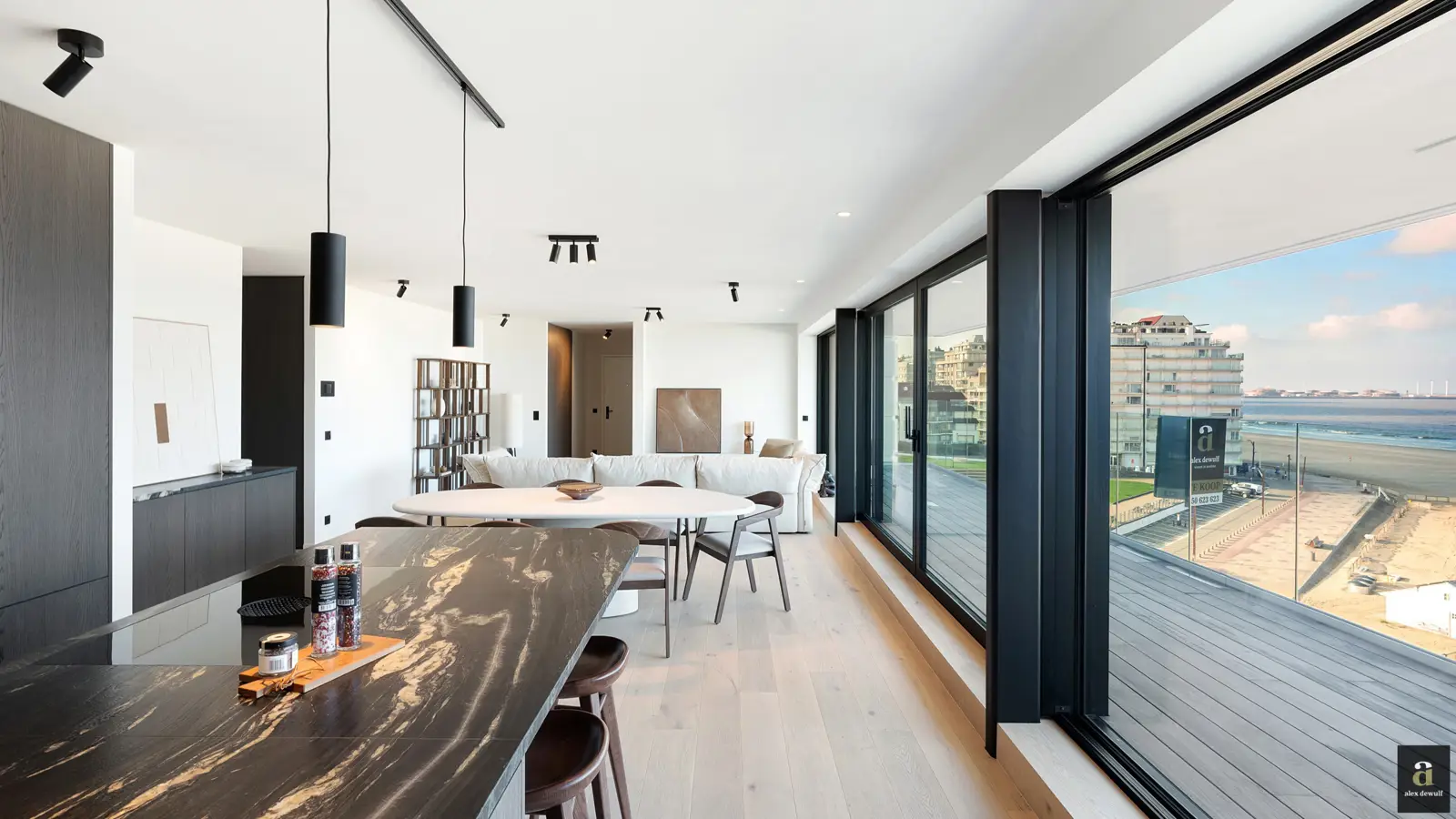 Exclusief high-end appartement met zeezicht in iconisch gebouw te DuinbergenIn de prestigieuze ‘Duinenresidence’, op de hoek van de zeedijk en recht tegenover de zeilclub van Duinbergen (RBSC), bevindt zich dit uitzonderlijk breed (15 meter!) en luxueus afgewerkt appartement met drie volwaardige slaapkamers en frontaal zeezicht.Het gebouw is een Knoks landmark, oorspronkelijk ontworpen in 1936 door Pierre Argon en heropgebouwd als nieuwbouw naar een ontwerp van Piet Bailyu. Authentieke elementen zoals het karakteristieke torentje, de gevel met muurschildering en de zeemeermin werden behouden en vertaald naar een hedendaagse, architecturale parel. De finale oplevering van het appartement is voorzien in de loop van 2025.Het appartement zelf biedt een ongeziene leefruimte met royale glaspartijen, een breed terras met panoramisch zeezicht, een verfijnde afwerking met massieve materialen en maatwerk in elke ruimte. De inkomhal verwelkomt u met vijf meter ingemaakte vestiairekasten en een gastentoilet in natuursteen.De leefruimte is ruim en lichtrijk, met aansluitend een open keuken voorzien van Miele-toestellen en wijnfrigo. Alles is tot in de puntjes afgewerkt met oog voor kwaliteit en detail. Via de nachthal bereikt u drie comfortabele slaapkamers, elk met ingemaakte kasten en eigen badkamer. De master beschikt bovendien over een ensuite met ligbad in marmer, inloopdouche, dubbele wastafel (corian) en toilet.Een combinatie van ruimte, licht en luxe, op een onovertroffen locatie aan zee, in een gebouw met architecturale en historische waarde.Mogelijkheid tot aankoop van een dubbele garagebox onder het gebouw.