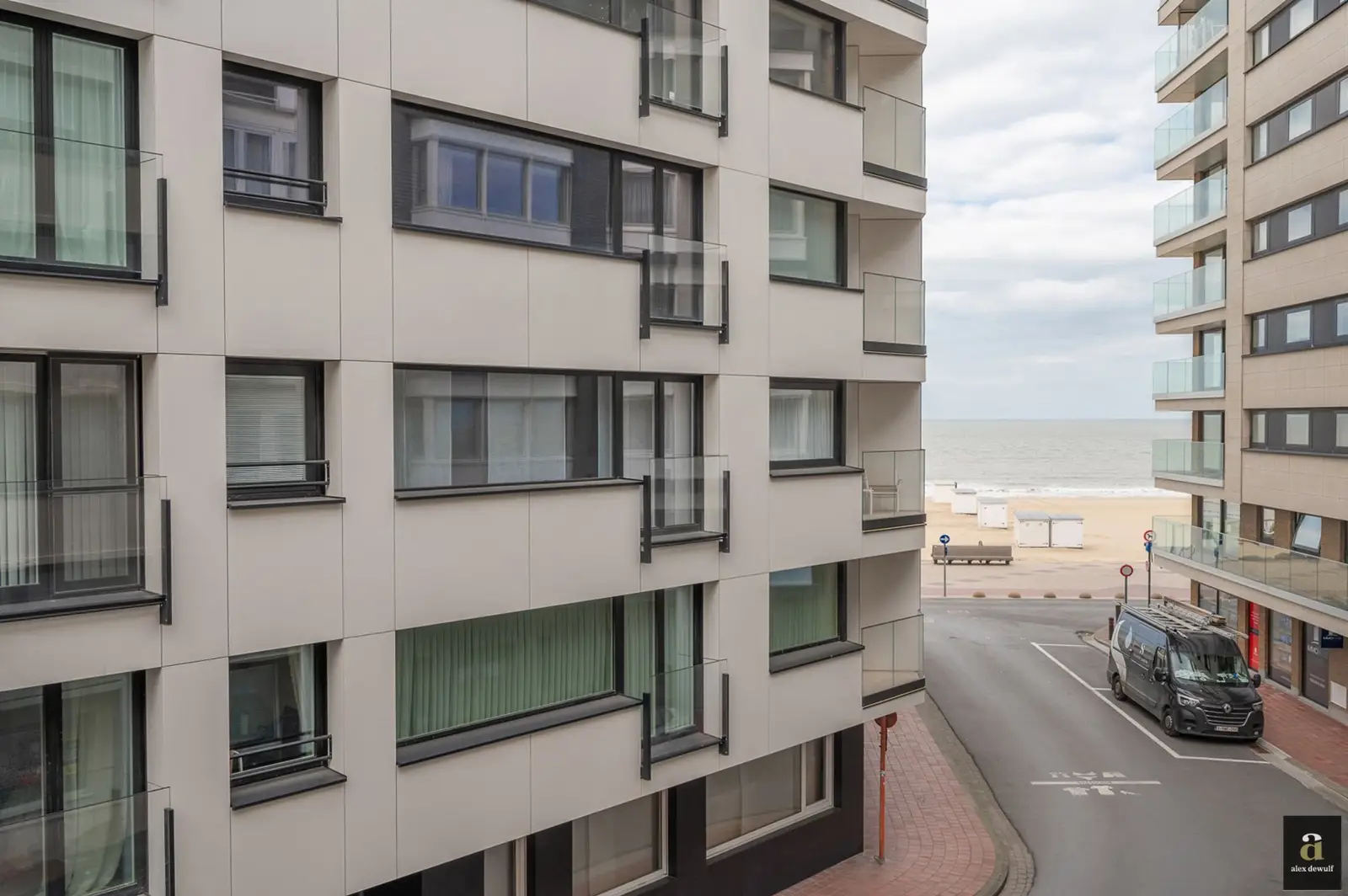 Prachtig gerenoveerd appartement met 3 slaapkamers, uitstekend gelegen op enkele passen van de Zeedijk en het Driehoeksplein. Indeling: inkomhal met vestiaire en gastentoilet. Ruime woon- en eetkamer met adembenemend zijdelings zeezicht. Open geïnstalleerde keuken voorzien van tal van kasten. Berging met aansluiting voor wasmachine en droogkast. 2 ruime slaapkamers met elk hun eigen douchekamer. 3de slaapkamer/bureau. Alle slaapkamers zijn voorzien van ingemaakte kasten. Privatieve kelder. Heel mooie realisatie!
