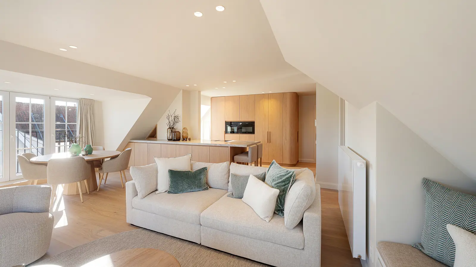 Prachtig instapklaar appartement aan het mooie Zegemeer, waar rust, comfort en een schitterend uitzicht samenkomen. Vanuit de leefruimte en het aangrenzende balkon geniet u van een mooi uitzicht over het meer. Rustig gelegen, doch slechts op 500 meter van de zeedijk en op 1km van de Lippenslaan. Indeling: inkom met gastentoilet, vestiairekast en schoenenkast mooi uitgevoerd in fineer eik met afgeronde hoeken en Led-verlichting. Open keuken waarbij het kookeiland met onbtijthoek centraal staat. Tal van inbouwkasten aan het eiland, afgewerkt met natuursteen werkblad. De keuken is uitgerust met inbouwtoestellen van Miele (oven, microgolfoven, frigo, keramische kookplaat met ingebouwde dampkap). Salon met eetplaats goed voor zeker 6 personen. Het appartement telt drie comfortabele slaapkamers, waarvan twee beschikken over een eigen douchekamer met lavabomeubel. Alle kamers hebben vrij uitzicht op het meer dan wel op de villa's. Wasmachine en droogkast aanwezig. Tot slot is er de mogelijkheid om een garagebox aan te kopen op het gelijkvloers van het gebouw. Ruime fietsenstalling en private berging inbegrepen. Alle meubelen zijn nieuw van Scapa Home en zijn inbegrepen in de prijs. Het appartement werd volledig vernieuwd, inclusief alle leidingen, chauffage en elektriciteit en de ramen. Een uniek en instapklaar appartement op een toplocatie aan het Zegemeer.