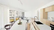 Op de hoek van de Lippenslaan en de Zoutelaan, op het vierde verdiep, bevindt zich dit lichtrijk hoekappartement. Dankzij de vele raampartijen en de open indeling baadt het appartement in natuurlijk licht, wat bijdraagt aan een ontspannen sfeer en het ultieme vakantiegevoel.De leefruimte en keuken hebben een open indeling, keuken beschikt over kwalitatieve toestellen en heeft een keukeneiland. Aansluitend bevindt zich een eetruimte met een op maat afgewerkte zitbank.Het appartement beschikt over 3 slaapkamers, waarvan 2 ruime slaapkamers en 1 kamer met een stapelbed en ensuite douchekamer. Er is een apart gastentoilet en ruime badkamer met douche, dubbele lavabo en toilet.De ligging is een absolute troef; centraal gelegen, op wandelafstand van winkels, horeca en het strand.EPC: B-label (105 kWh/m²/j)