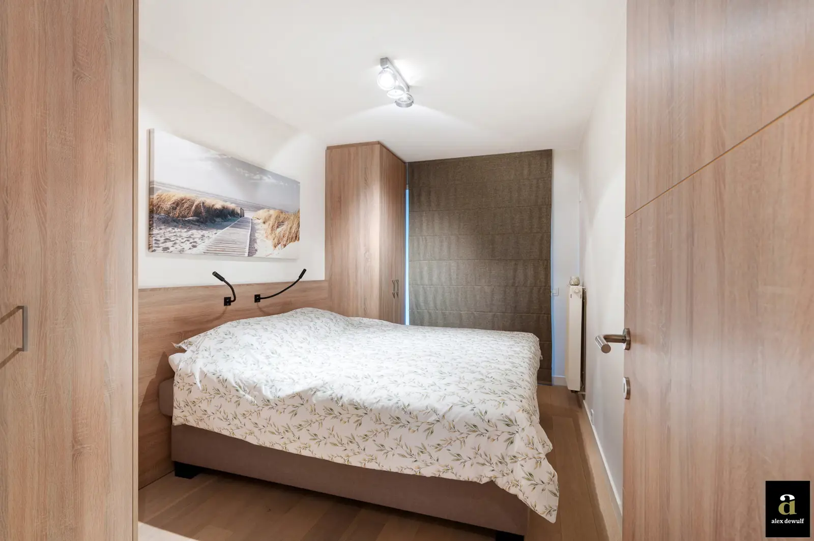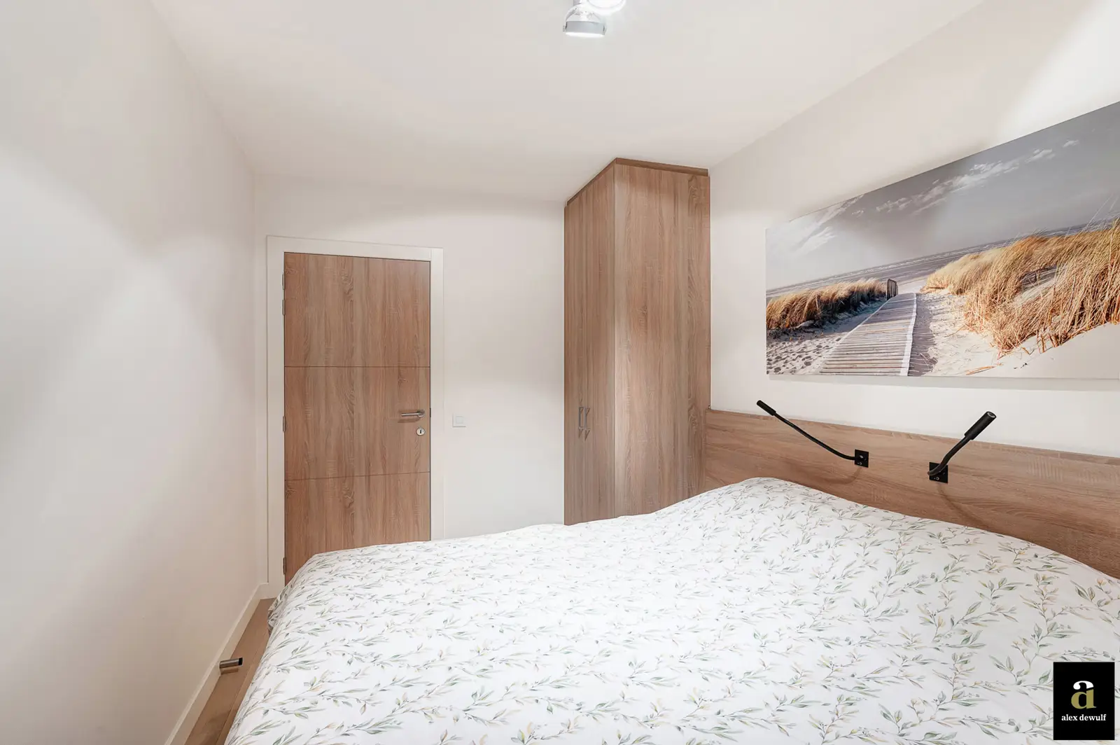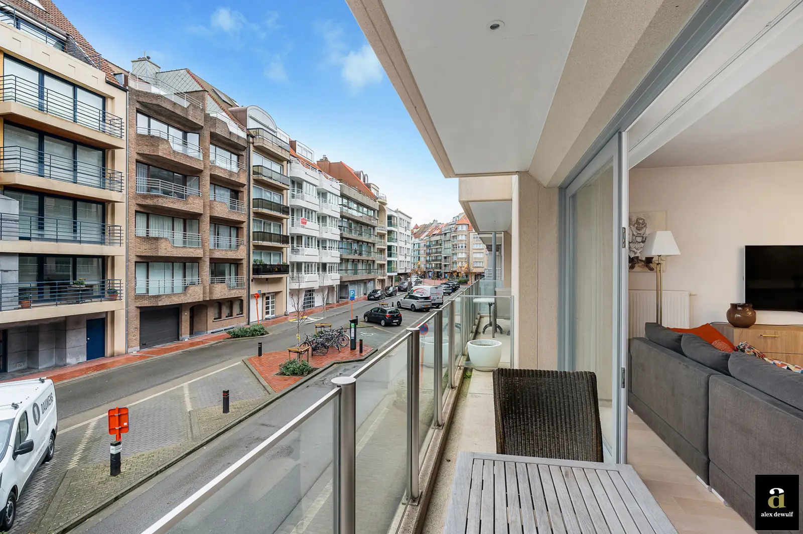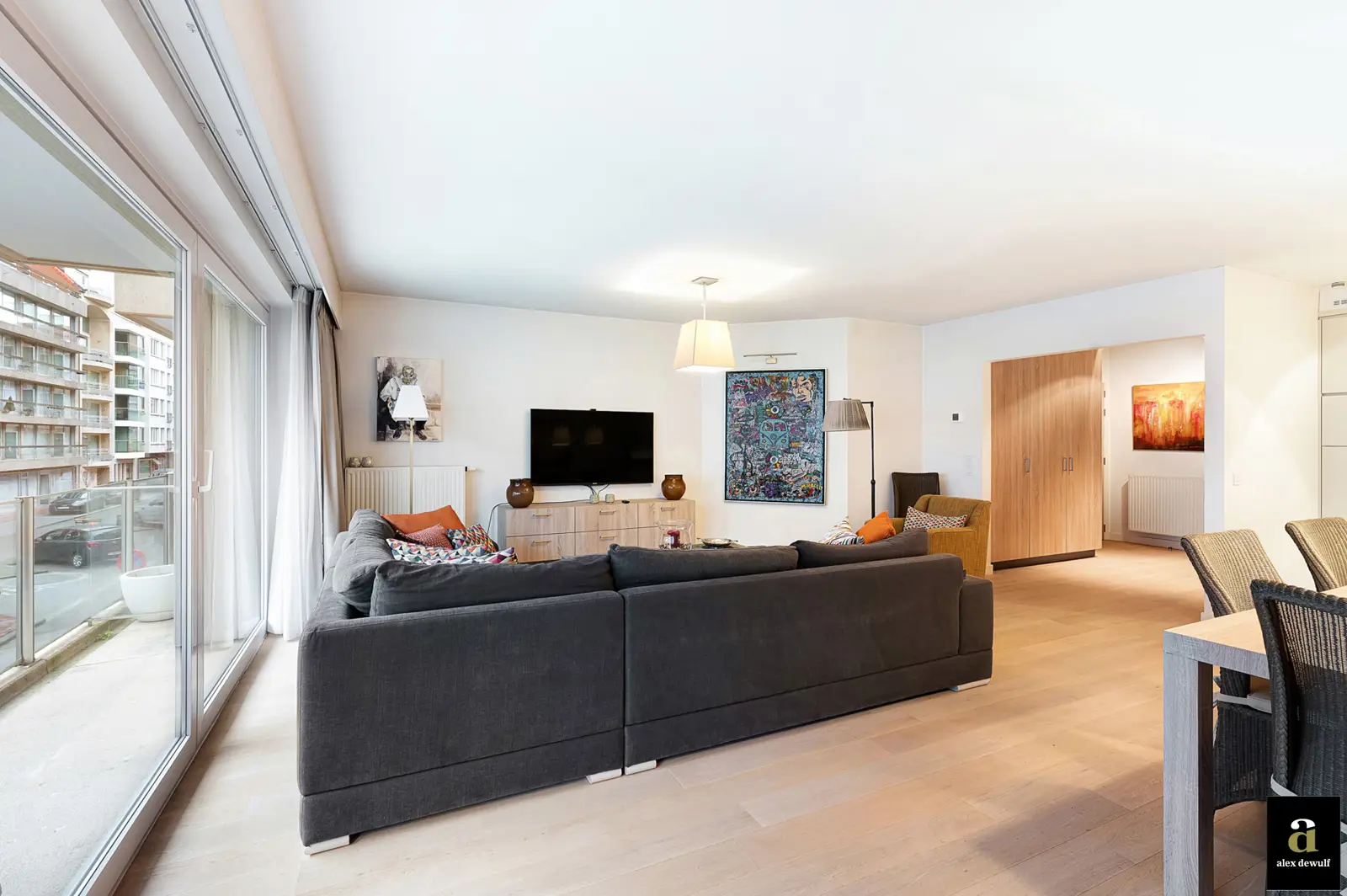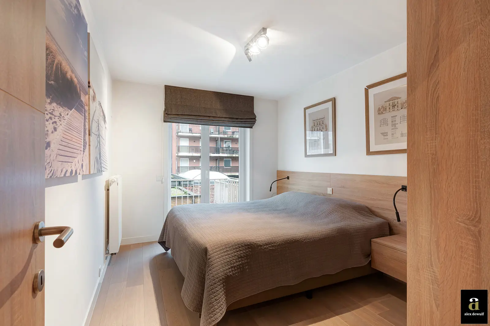 Dit lichtrijke appartement geniet van een aangename ligging op wandelafstand van het Albertstrand en het Rubensplein, met aan de voorzijde een zuidwestgericht terras dat zijdelings uitkijkt op een graspleintje. Bouwjaar 2000 en volledig vernieuwd in 2020. Mogelijkheid tot aankoop van autostaanplaats in het gebouw. Indeling: inkomhal met vestiaire kast op maat, gastentoilet, ruime berging. Grote leefruimte met salon en eetplaats, uitgevend via de schuiframen op een zonnig terras. De open keuken (nieuwe toestellen) zorgt dit voor een aangenaam geheel. Verder beschikt het appartement over twee volwaardige slaapkamers (dubbele bedden) en een ruime ingerichte badkamer (inloopdouche en wastafel) en een douchekamer. Een aparte berging met aansluiting voor wasmachine en droogkast verhoogt het dagelijks comfort.Extra troeven zijn het recente bouwjaar en de privatieve kelder en een zeer gemakkelijk bereikbare fietsenstalling in het gebouw met inrit vanuit de drive-way, wat dit appartement tot een bijzonder aangenaam tweede verblijf maakt op een gegeerde ligging.Mogelijkheid tot aankoop van autostaanplaats in het gebouw aan €90 000.