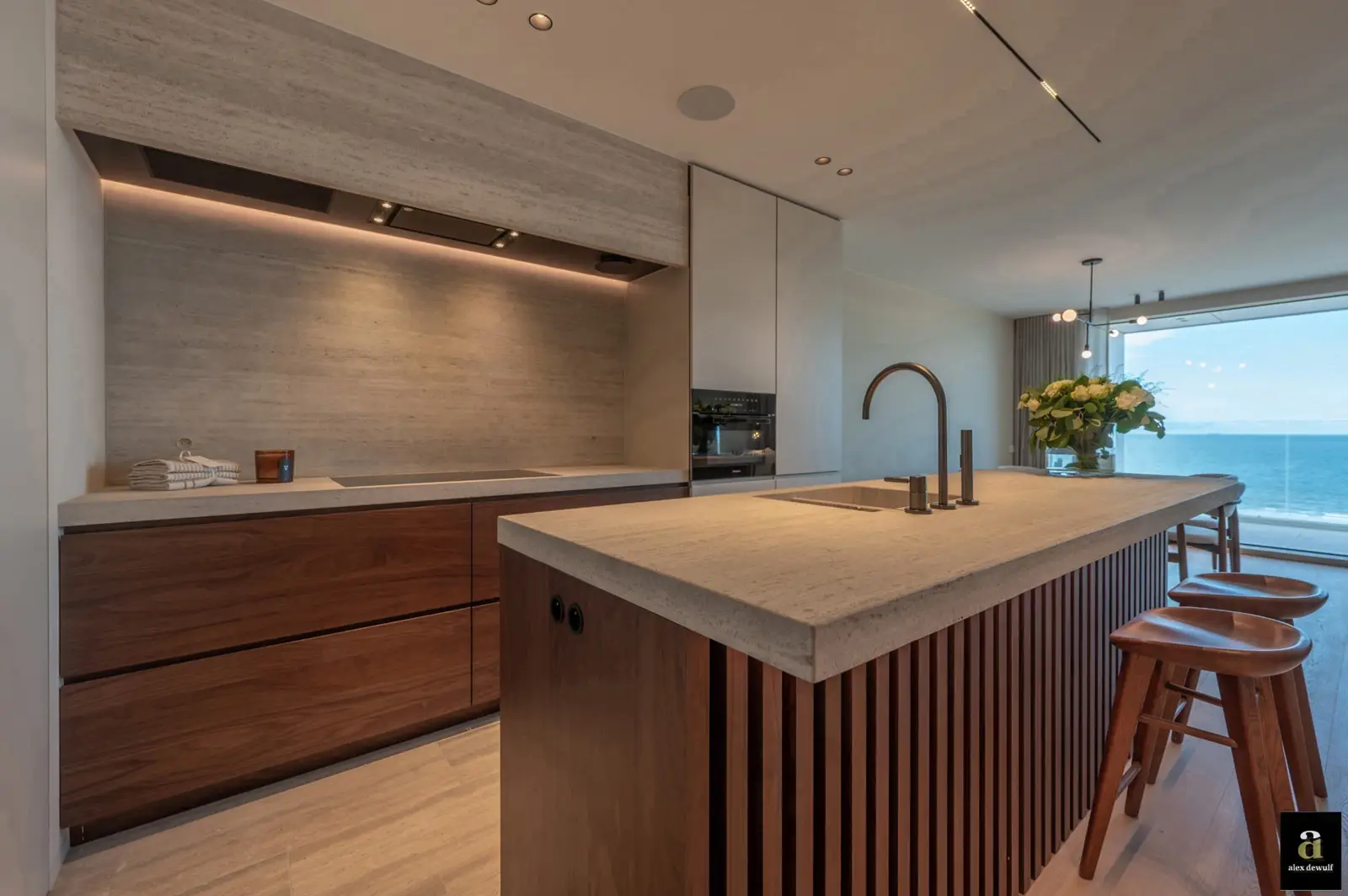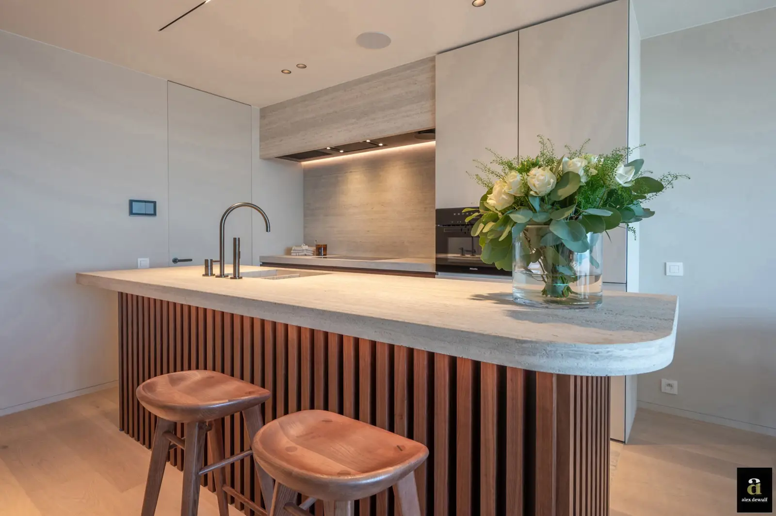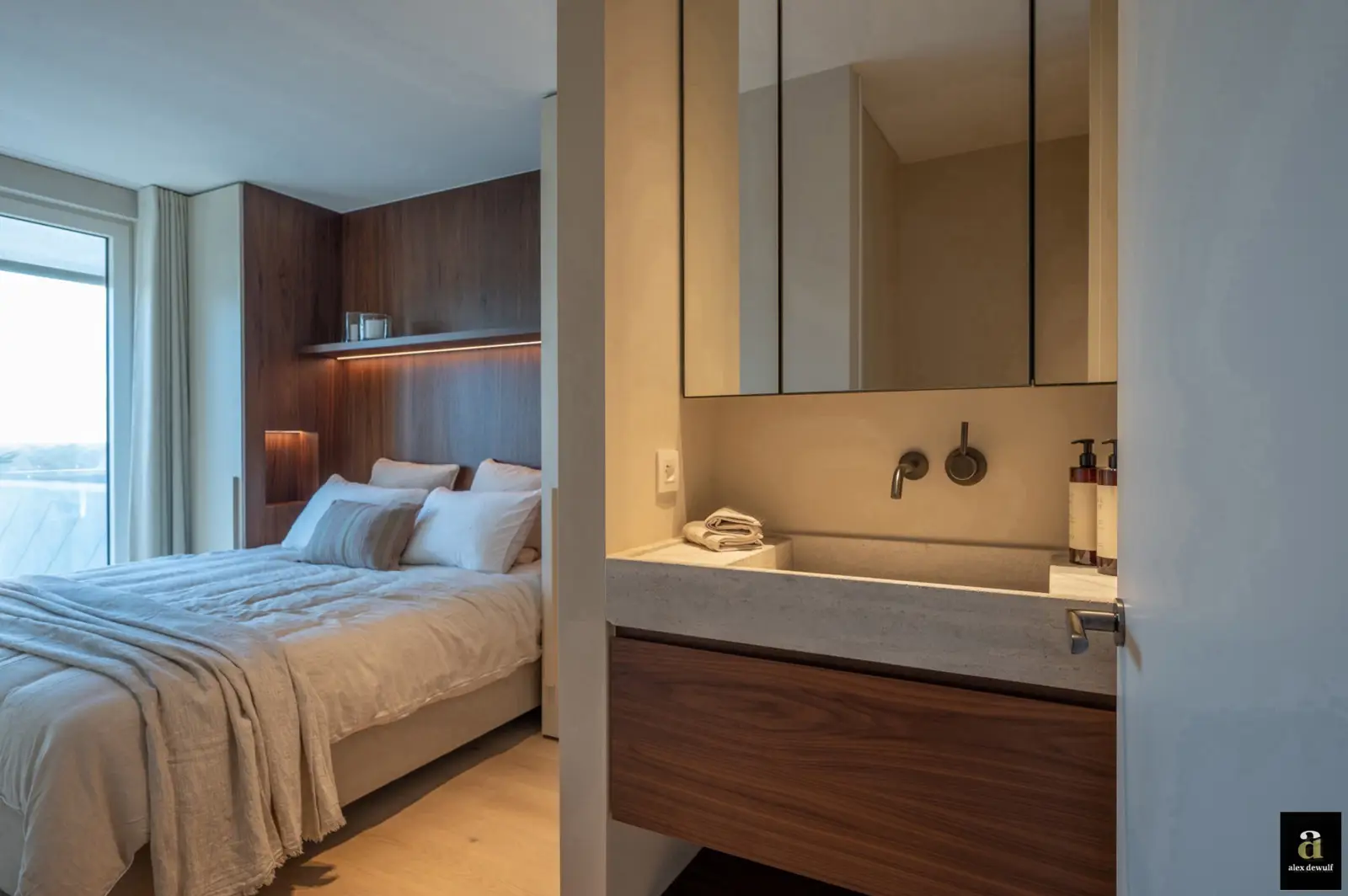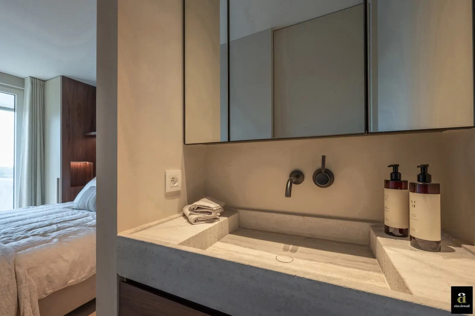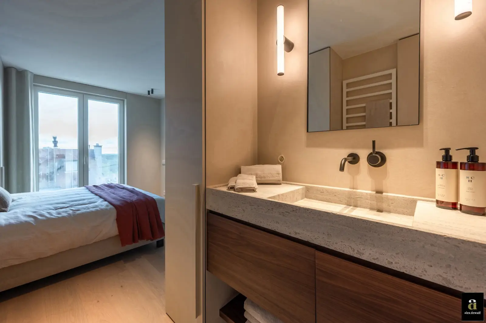 Prachtig appartement met ruim terras vooraan op het beste stukje Zeedijk te Zoute. Mogelijkheid tot aankoop van een ruime garagebox onder het Albertplein. Op de zevende verdieping van de prestigieuze residentie Milenka bevindt zich dit elegant drie-slaapkamerappartement van 105 m², aangevuld met een zongeoriënteerd terras van 15 m². Een unieke woonbeleving in het hart van Het Zoute, waar verfijning en rust samenvloeien met een weids zicht op de zee. De lichtrijke leefruimte met frontaal zeezicht baadt in natuurlijke lichtinval dankzij de Skyframe-raampartijen, die binnen en buiten harmonieus laten samenvloeien. De keuken – voorzien van Miele-toestellen, een Travertin werkblad en walnoot afwerking – vormt een sfeervol middelpunt met oog voor detail en kwaliteit. Twee volwaardige slaapkamers beschikken over een ensuite badkamer; de derde kamer geniet van een aparte badkamer aan de overzijde van de nachthal. Een praktische bijkeuken met was- en droogkast, evenals een apart gastentoilet, vervolledigen het geheel. De afwerking getuigt van een uitzonderlijk niveau: ingefreesde stopcontacten, subtiele ledverlichting in kasten, ingebouwde railverlichting en verfijnde architecturale rondingen creëren een gevoel van discrete luxe. Een zeldzame combinatie van esthetiek en rust, met de zee en het mondaine Zoute binnen handbereik.Verkoop onder registratierechten.Private berging in de kelder.