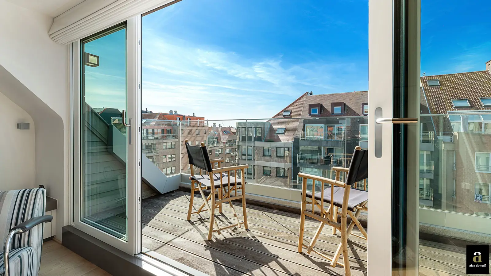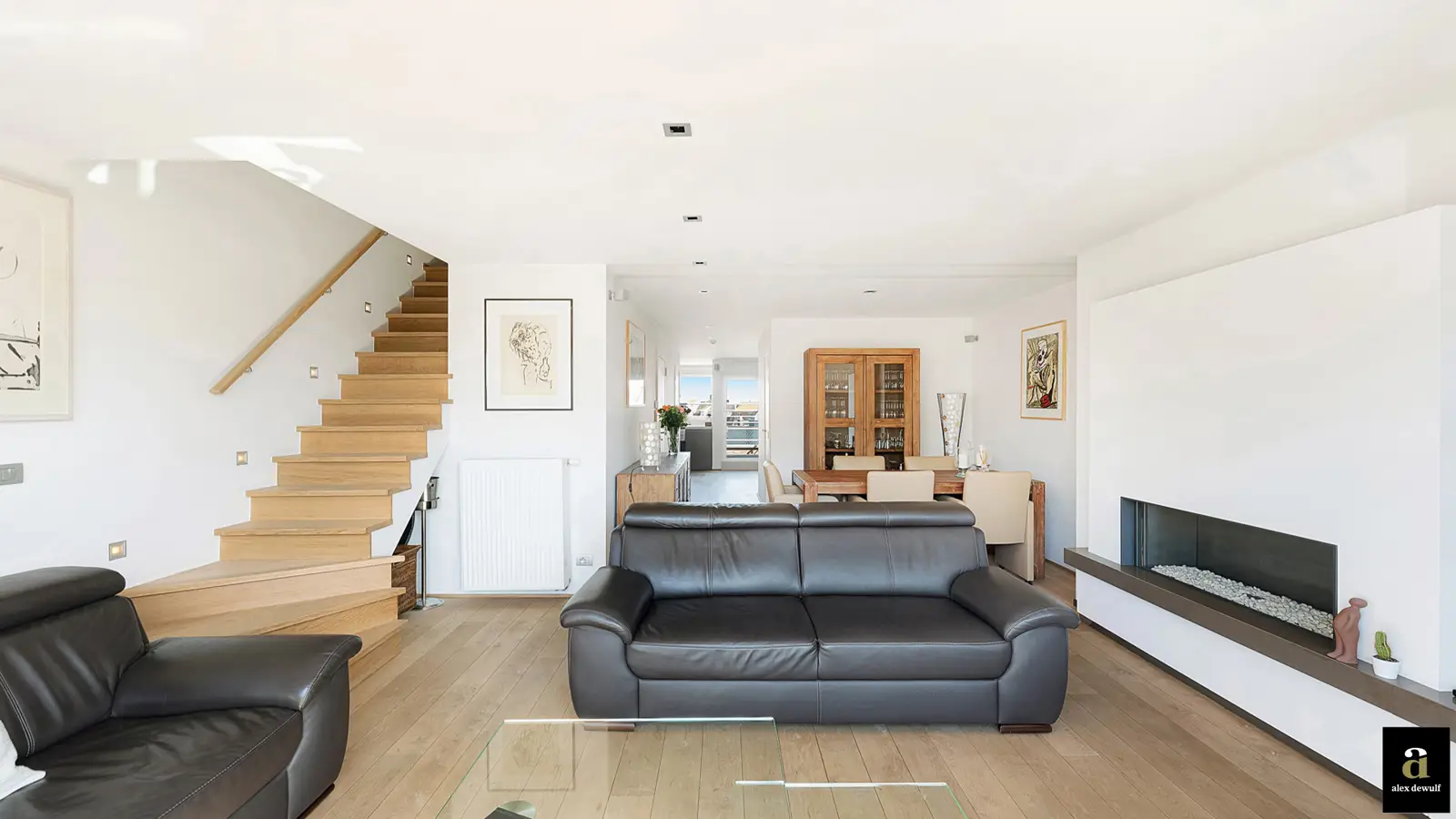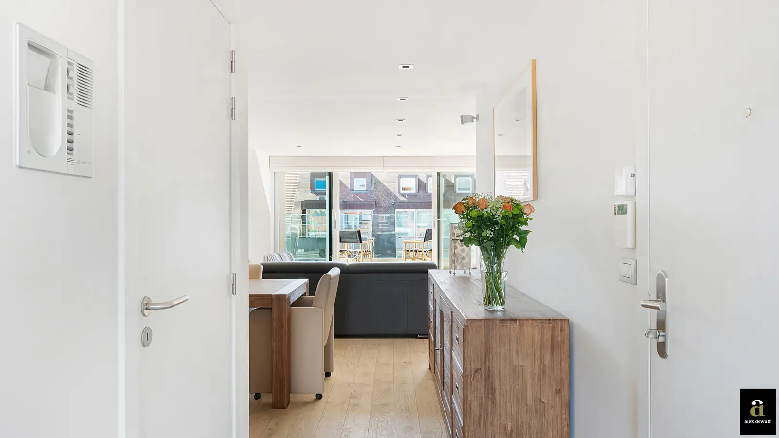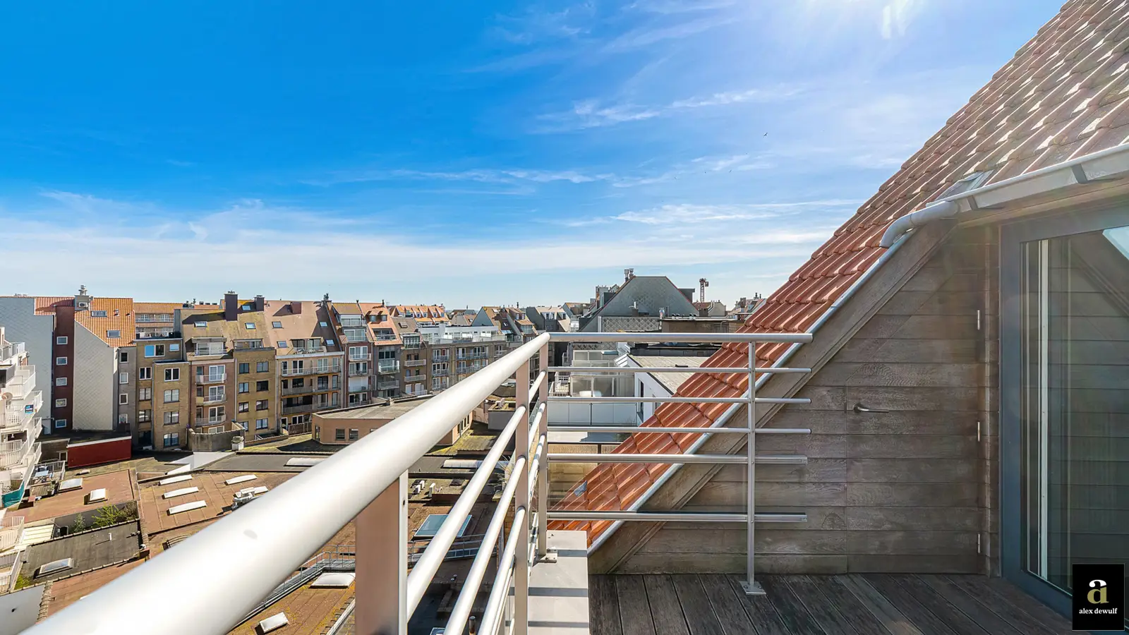 Aangenaam en modern duplexappartement, gelegen op een leuke locatie op wandelafstand van het strand. De lichtrijke leefruimte met haard vormt het hart van het appartement en sluit mooi aan op de open, verzorgde keuken. Aansluitend bevindt zich een praktische berging. Zowel vooraan als achteraan geniet u van een terras, met vooraan een ruim zonneterras. Op de verdieping bevinden zich twee volwaardige slaapkamers, elk met een eigen badkamer, evenals een apart toilet. Daarnaast is er een derde ruimte die momenteel is ingericht als bureau, maar perfect kan dienen als extra slaapkamer met plaats voor een éénpersoonsbed. Verder beschikt het appartement over een privatieve berging, ruim genoeg voor het stallen van twee fietsen, en is er vuilnisophaling voorzien in de residentie. Een aangename duplex met een praktische indeling op een gegeerde ligging.