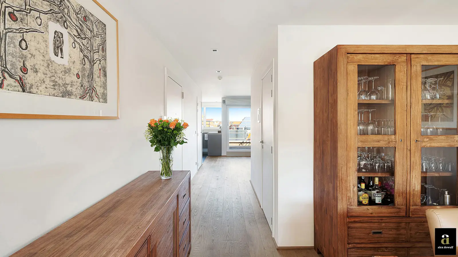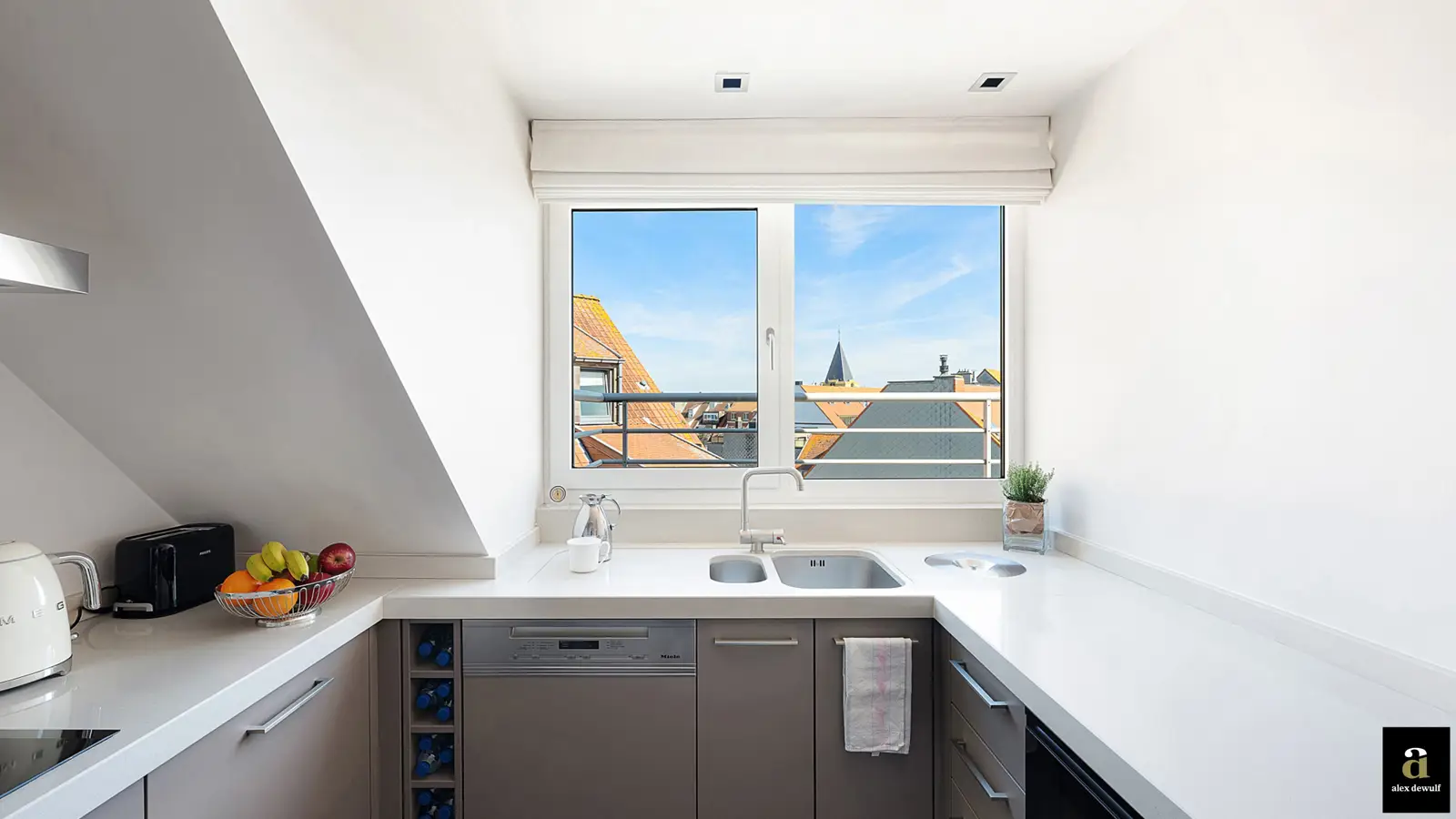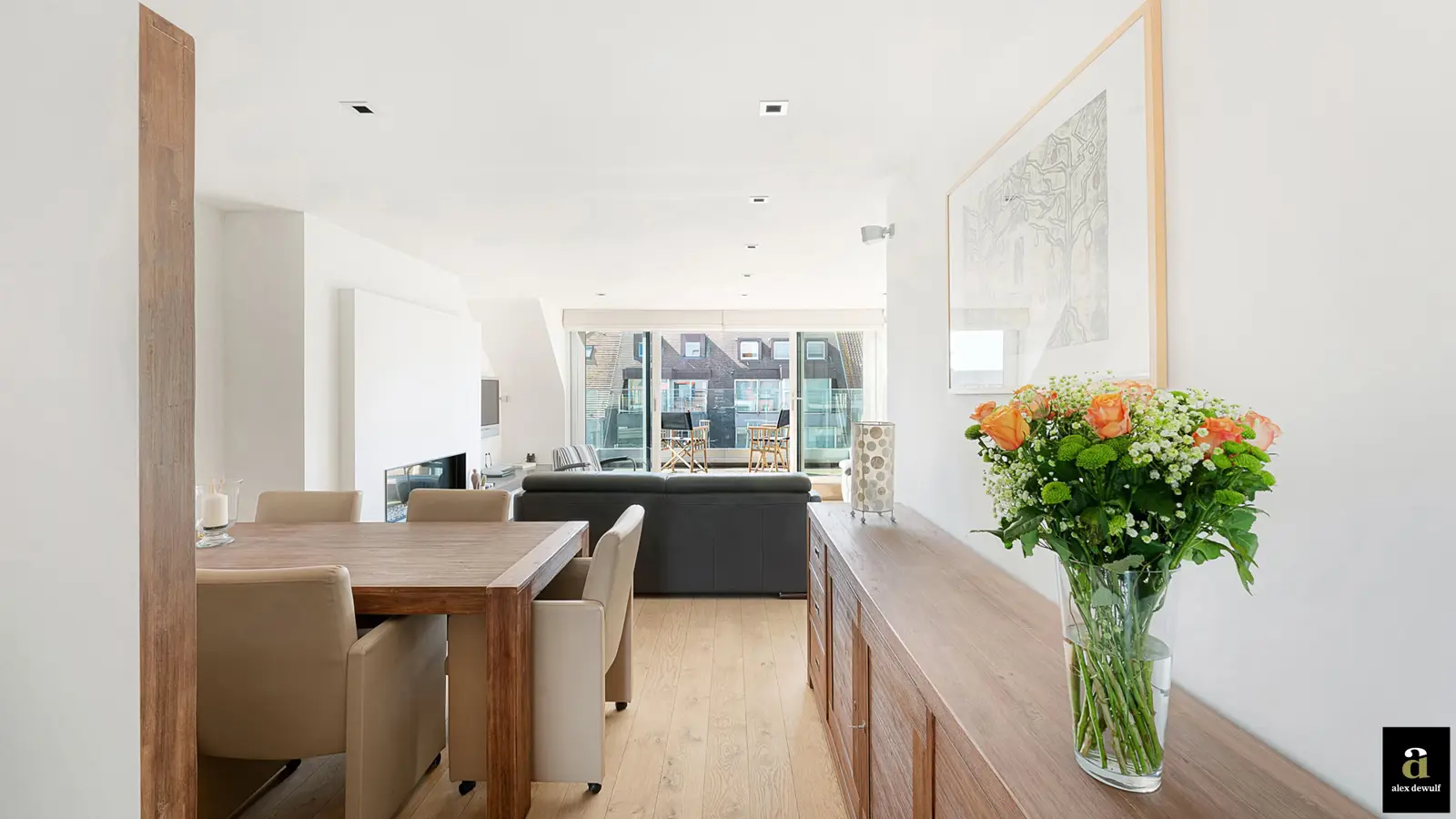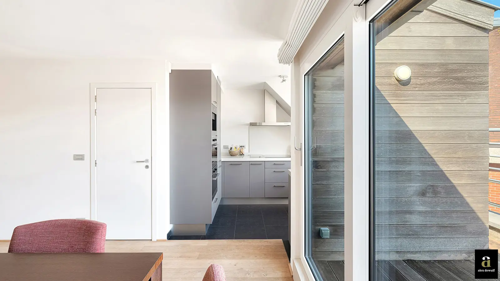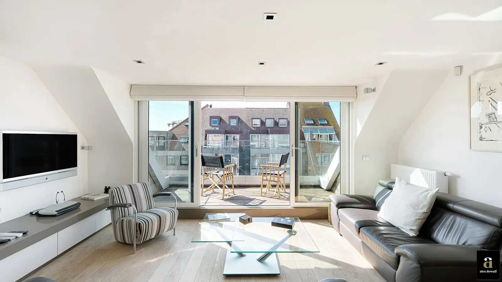 Aangenaam en modern duplexappartement, gelegen op een leuke locatie op wandelafstand van het strand. De lichtrijke leefruimte met haard vormt het hart van het appartement en sluit mooi aan op de open, verzorgde keuken. Aansluitend bevindt zich een praktische berging. Zowel vooraan als achteraan geniet u van een terras, met vooraan een ruim zonneterras. Op de verdieping bevinden zich twee volwaardige slaapkamers, elk met een eigen badkamer, evenals een apart toilet. Daarnaast is er een derde ruimte die momenteel is ingericht als bureau, maar perfect kan dienen als extra slaapkamer met plaats voor een éénpersoonsbed. Verder beschikt het appartement over een privatieve berging, ruim genoeg voor het stallen van twee fietsen, en is er vuilnisophaling voorzien in de residentie. Een aangename duplex met een praktische indeling op een gegeerde ligging.