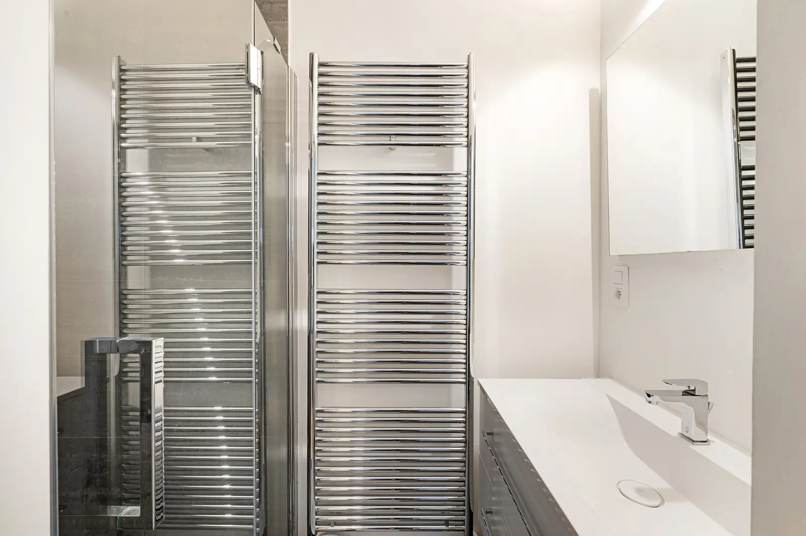 Dit modern appartement met zijdelings zeezicht is ideaal gelegen, vlakbij de winkels in de Kustlaan en op enkele stappen van het strand en de zee. Bij binnenkomst betreed je een ruime hal met een vestiaire en een apart gastentoilet. De open keuken is uitgerust met alle moderne toestellen en sluit naadloos aan op de lichtrijke leefruimte. Deze ruime woonkamer, met een breedte van 6 meter, geeft toegang tot een gezellig balkon en biedt plaats aan zowel een salon als een eetgedeelte. Het appartement beschikt over twee dubbele slaapkamers, beide voorzien van ingebouwde kasten en elk met een eigen badkamer of douchekamer. Daarnaast zijn er praktische voorzieningen zoals een fietsenberging op het gelijkvloers en een privatieve kelder in de residentie.