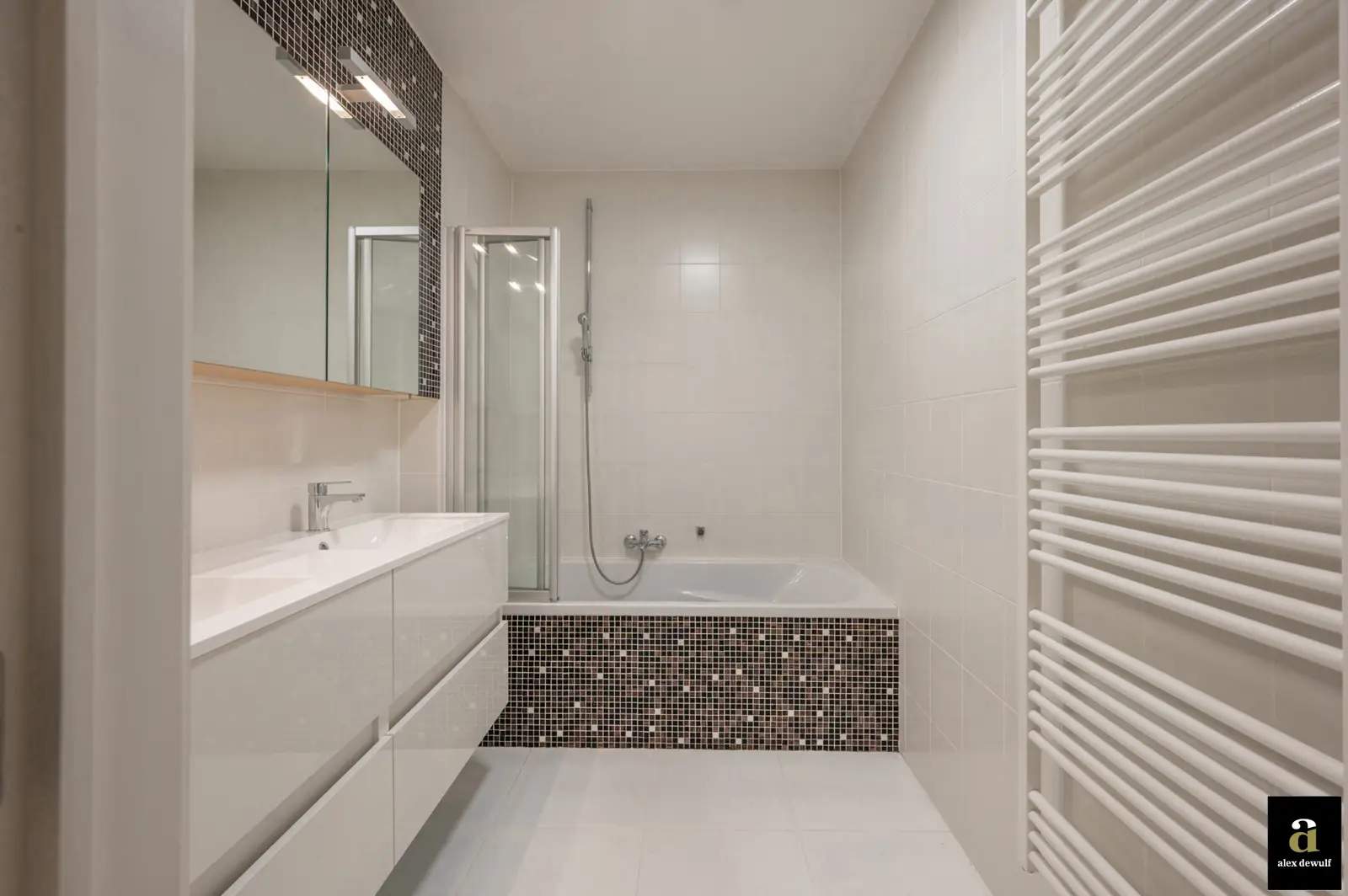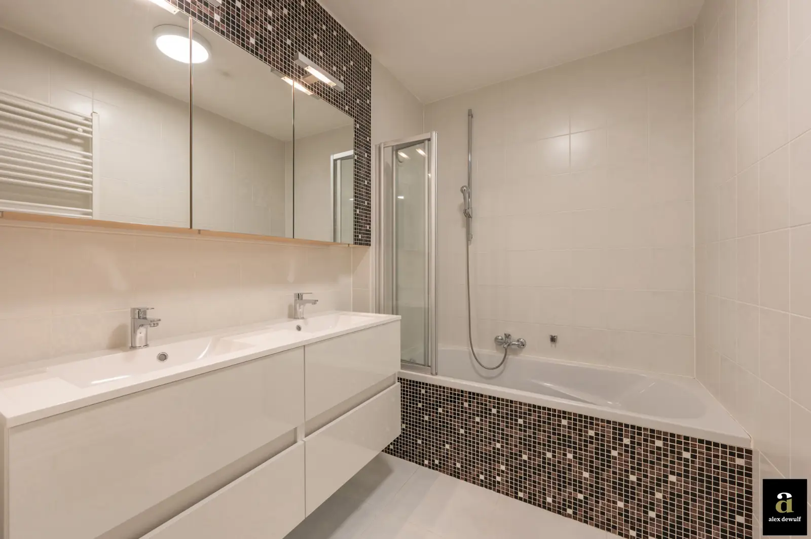 In het centrum van Knokke, op de levendige Lippenslaan, bevindt zich dit breed en lichtrijk appartement met twee volwaardige slaapkamers. De ideale combinatie van een centrale ligging, aangenaam wooncomfort en een zonnig terras.IndelingEen ruime inkomhal met gastentoilet leidt naar de royale leefruimte met brede raampartijen en toegang tot het westgericht terras, perfect om in de namiddag en avond van de zon te genieten (6m gevelbreedte!). De open, volledig uitgeruste keuken sluit harmonieus aan bij de woonkamer en biedt extra bergruimte dankzij een praktische was- of voorraadkamer. 6m gevelbreedte!Beide slaapkamers beschikken over een eigen ensuite badkamer: één met ligbad, de andere met douche. Een comfortabele indeling voor bewoners en gasten.Het appartement werd recent opgefrist en straalt vandaag een frisse sfeer uit. Een privatieve kelderberging is inbegrepen.