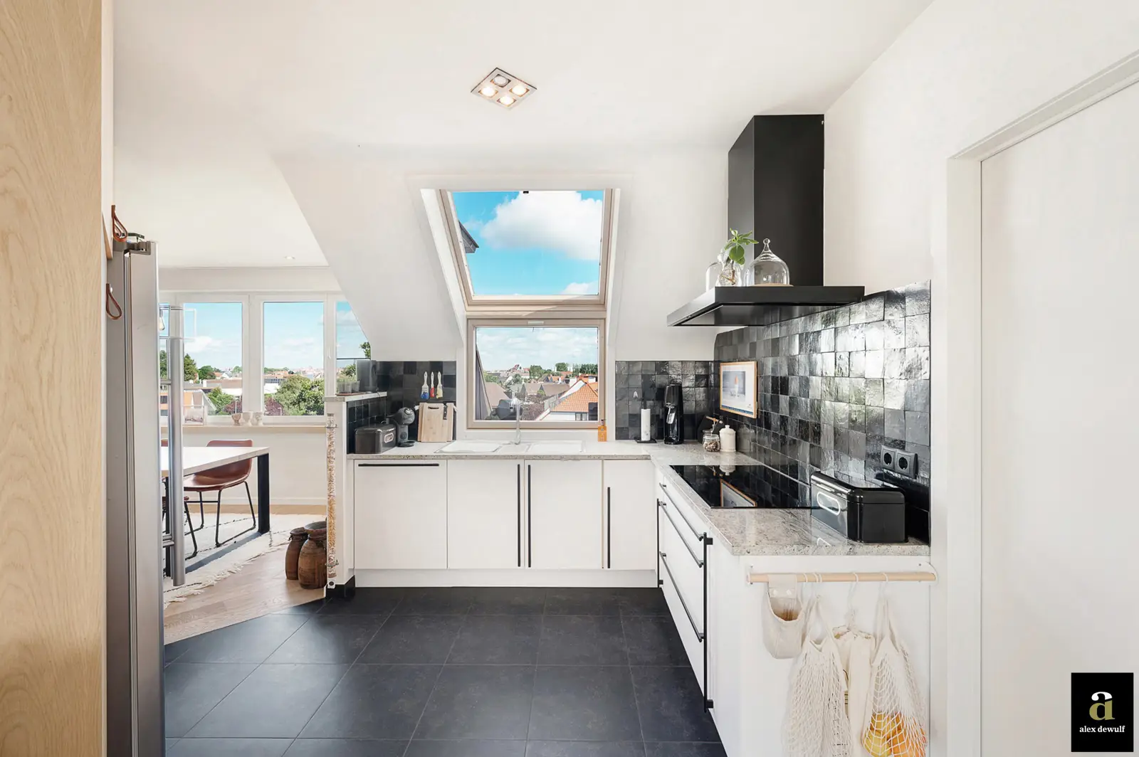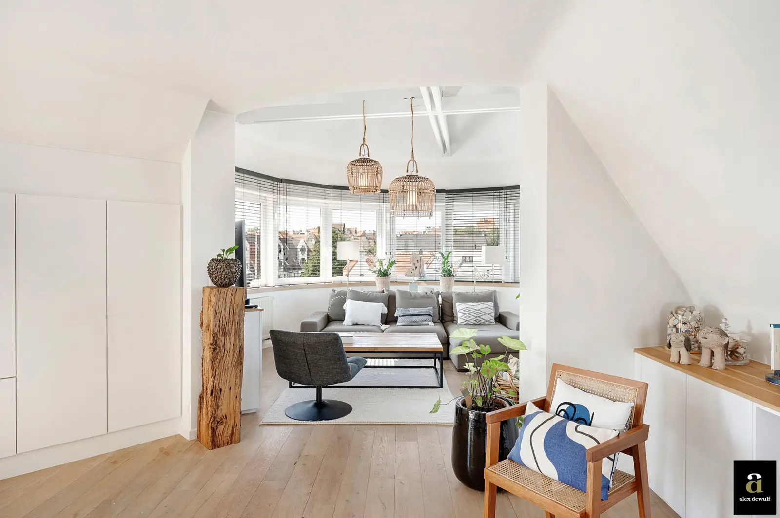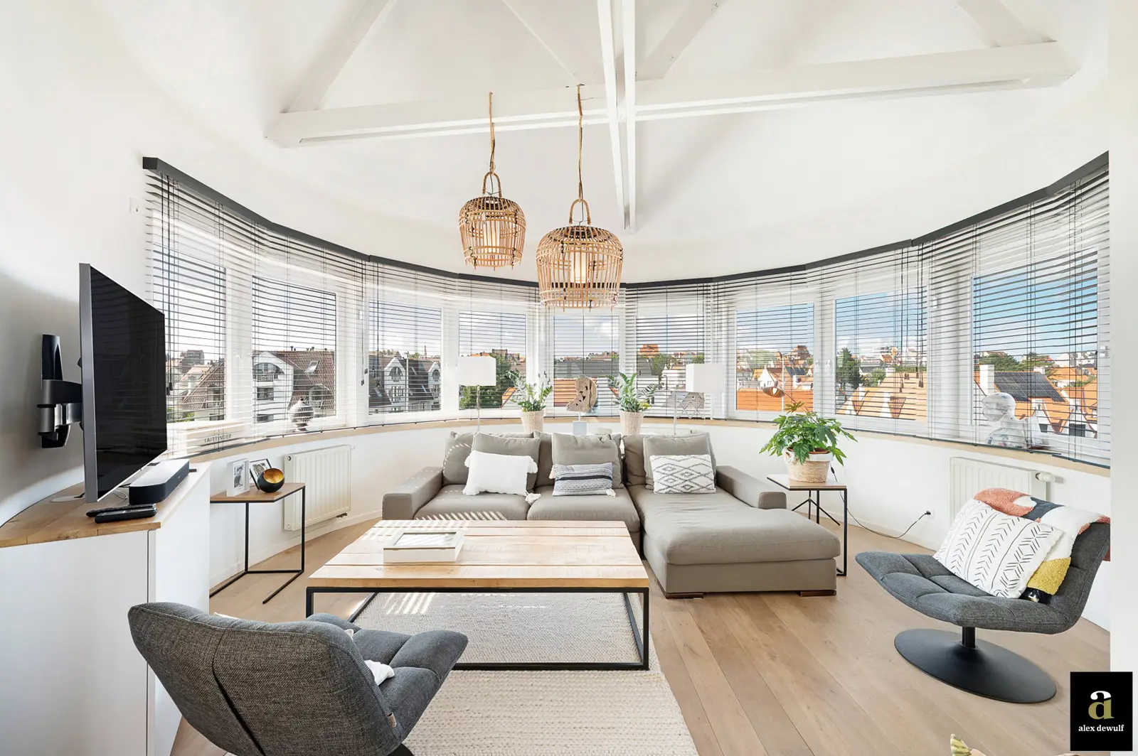 In het hart van Duinbergen bevindt zich dit lichtrijk dakappartement van 141 m² met open zicht op de omliggende villawijk, op wandelafstand van het strand. De royale leefruimte verrast met haar hoge plafonds onder een architecturale koepel, omringd door ramen die het daglicht overvloedig binnenlaten en zorgen voor een bijzonder ruimtelijk gevoel. Aansluitend bevindt zich een zonnig, westgericht terras – perfect georiënteerd om buiten te tafelen en te genieten van de namiddag- en avondzon. De privatieve lift komt rechtstreeks uit in het appartement, wat bijdraagt aan het exclusieve karakter. De open keuken vormt een harmonieus geheel met de leefruimte en werd aangevuld met een bureelhoek – ideaal voor wie rustig wil werken. Een aparte berging en een gastentoilet bieden extra comfort. Via de nachthal bereikt u twee volwaardige slaapkamers, elk voorzien van hun eigen bad- of douchekamer. Een bijzonder appartement met karakter en klasse, op een uitstekende ligging in Duinbergen.