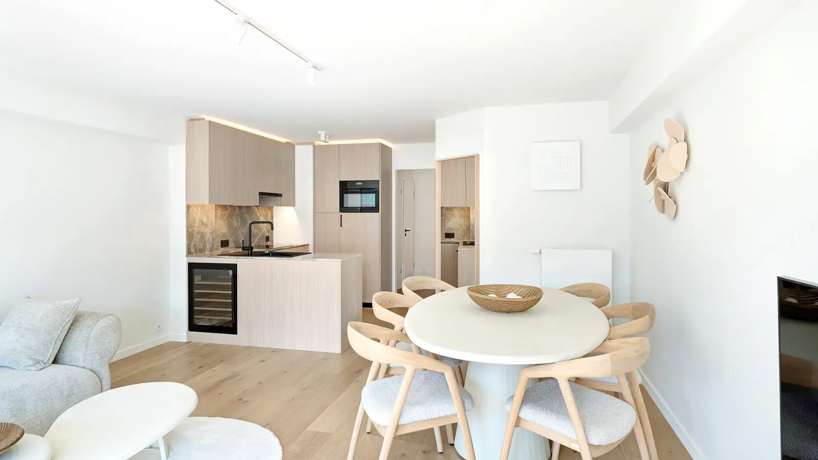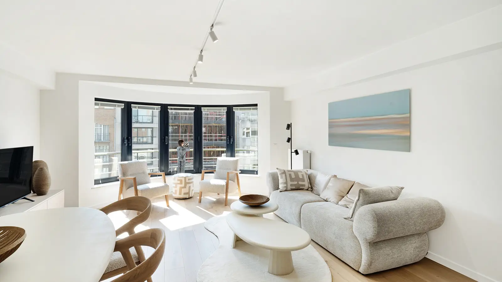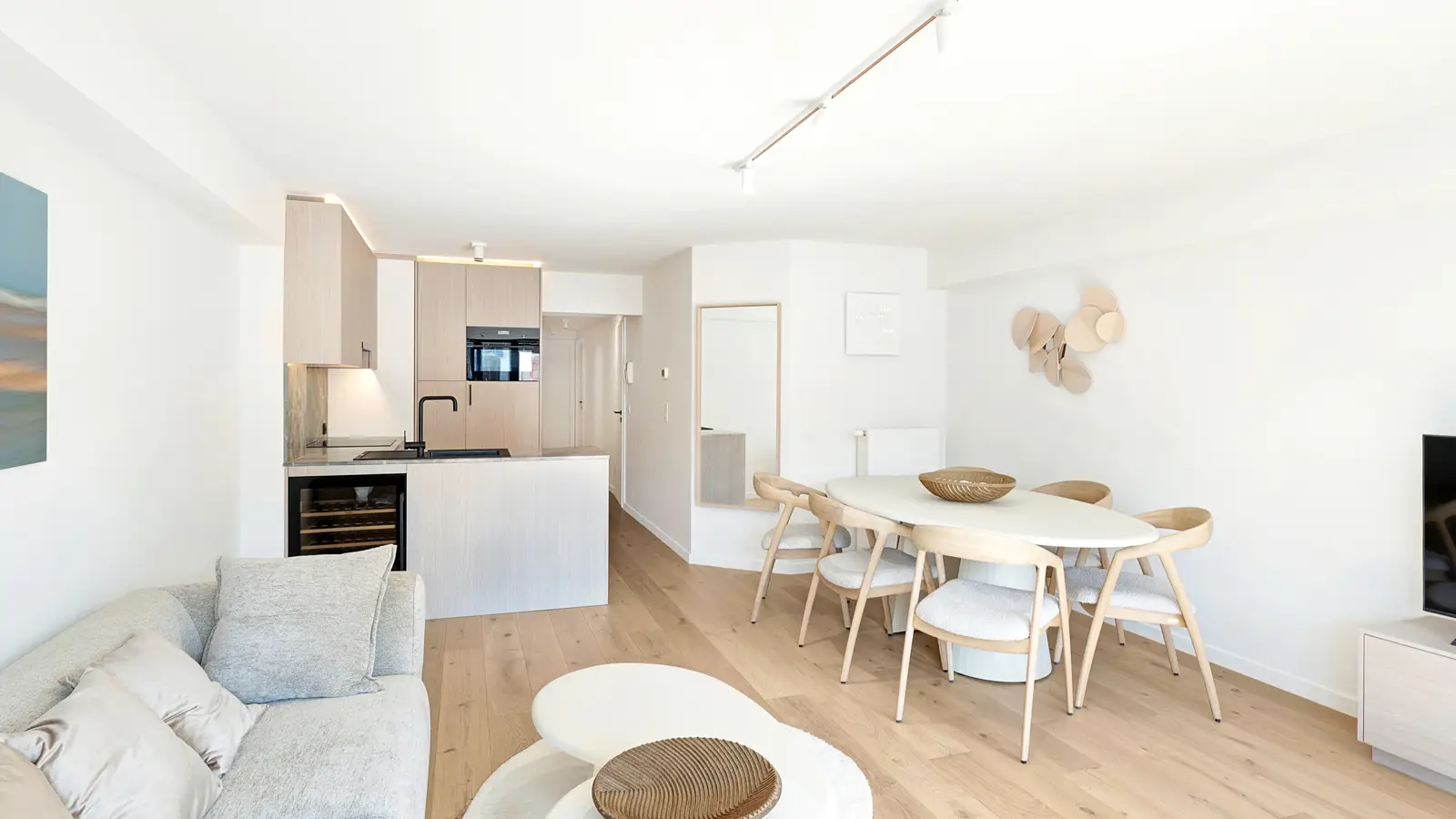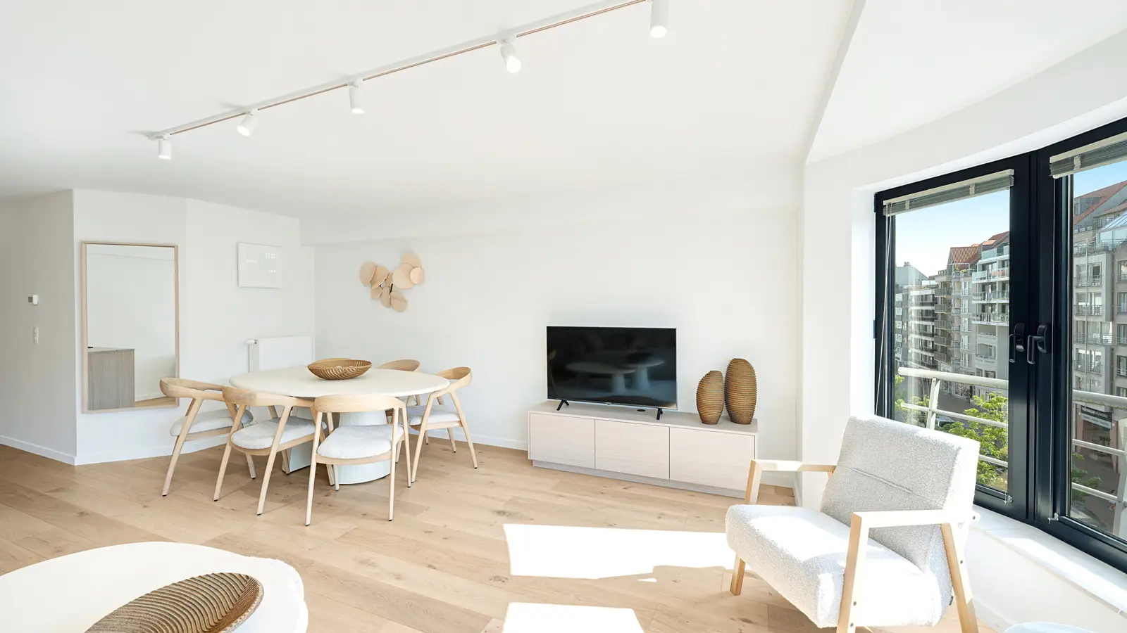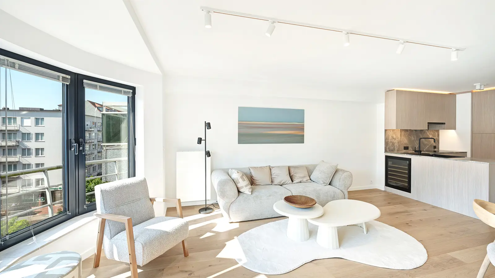 Stijlvol vakantieappartement in de Lippenslaan te Knokke-Heist, op korte afstand van zee. Het appartement is afgewerkt met hoogwaardige materialen en oog voor detail. De lichte leefruimte met grote raampartijen is voorzien van eiken parket en lamellen aan de ramen.De inkomhal biedt toegang tot een gastentoilet en een berging met wasmachine/droogkast. De woonkamer en eetplaats zijn smaakvol ingericht en sluiten aan op een moderne, volledig uitgeruste keuken met marmeren werkblad en alle nodige toestellen.Het appartement beschikt over twee slaapkamers, elk met toegang tot een zonnig terras. De masterbedroom is uitgerust met een grote ingemaakte kast en een badkamer met bad, douchecombinatie en dubbele lavabo. De tweede slaapkamer heeft een extra bed en een aparte douche met wastafel.Alle meubels, tv’s, accessoires, bed- en badlinnen zijn inbegrepen in de verkoopprijs. Ruime kelderberging.