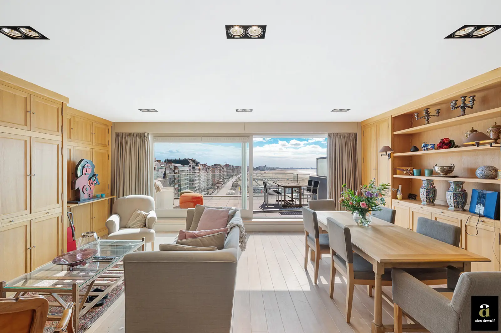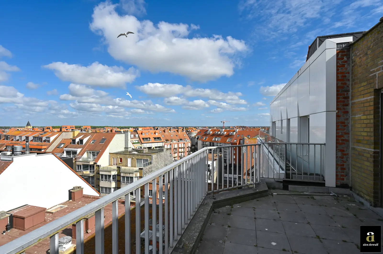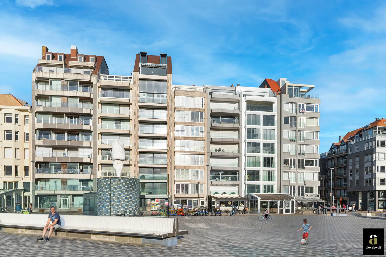 Unieke penthouse op een absolute toplocatie aan het Rubensplein, op het meest zonnige gedeelte van de Knokse Zeedijk. Geniet van een frontaal en adembenemend uitzicht over zee en het Albertstrand, dankzij de royale gevelbreedte van 7 meter (!) én twee ruime terrassen, waarvan één van maar liefst 26 m².De indeling is praktisch en comfortabel: een ruime inkomhal met gastentoilet, een volledig uitgeruste keuken, een lichtrijke leefruimte met directe toegang tot het zonneterras, een nachthal, twee slaapkamers, een moderne douchekamer en een tweede terras aan de achterzijde.Het gebouw garandeert maximale privacy met slechts één appartement per verdieping. Recent werden de inkomhal en lift volledig vernieuwd. Een private kelderberging en gemeenschappelijke fietsenstalling zijn inbegrepen.Mogelijkheid tot aankoop van twee garageboxen in de nabije omgeving (€85.000 per stuk).