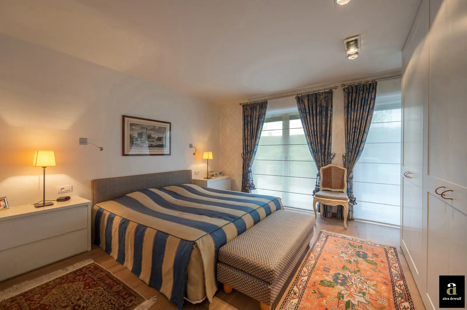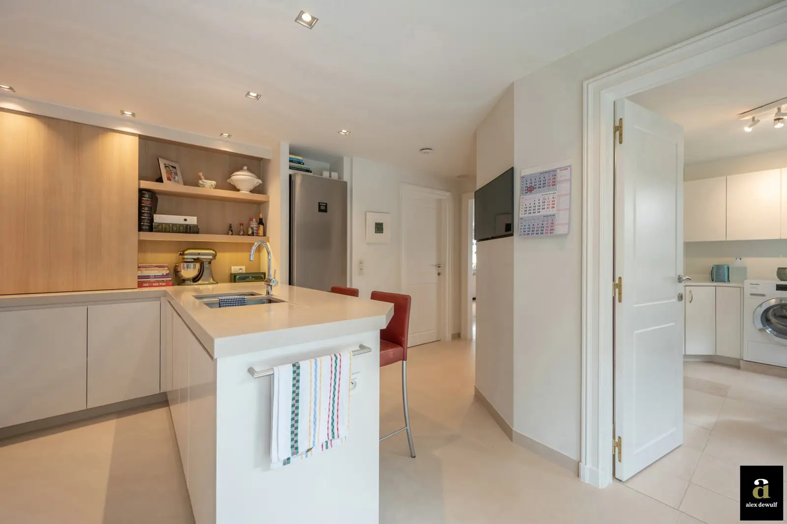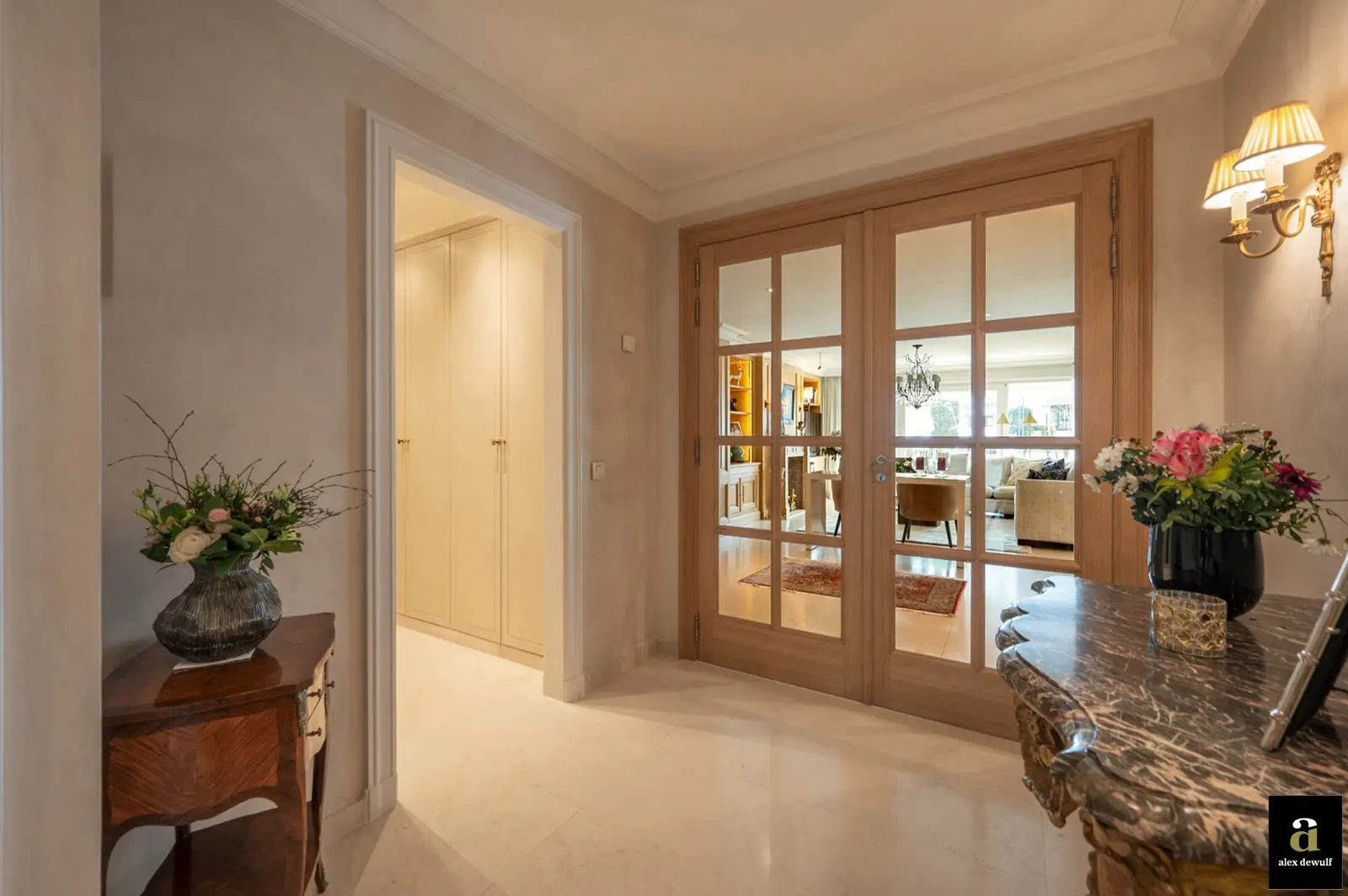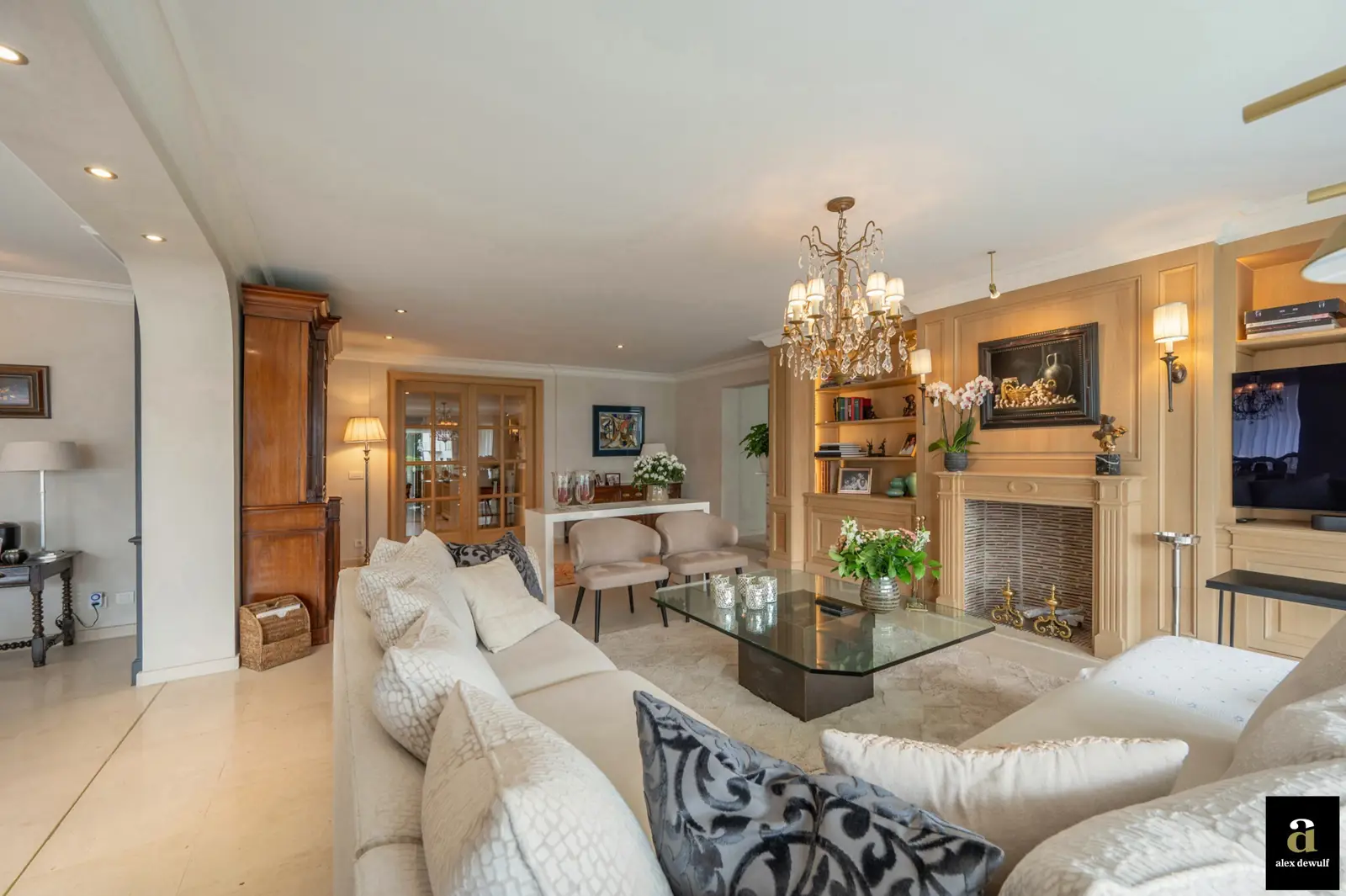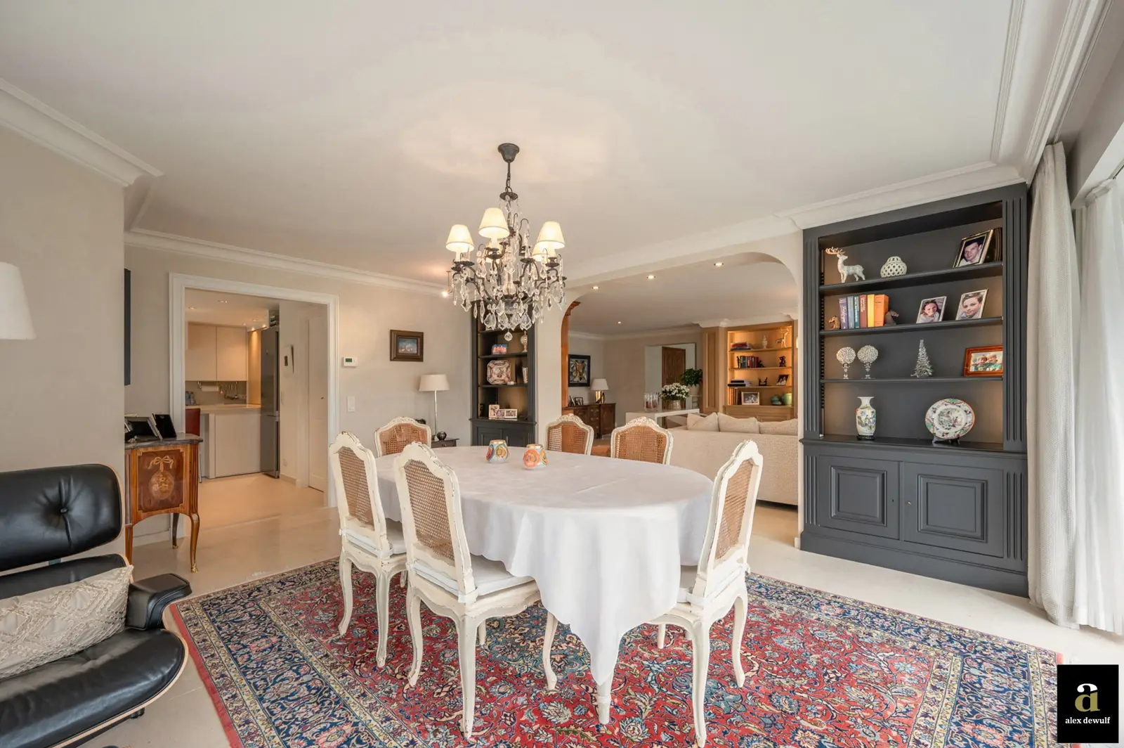 Een uitzonderlijk en exclusief appartement van ca. 300 m² met een brede gevel van 16 m en een prachtige privatieve tuin. Dit luxueuze tuinappartement met 4 slaapkamers bevindt zich in een stijlvolle villaresidentie gelegen op 25meter van het bekende Albertplein te Zoute, op slechts enkele stappen van de zee en het strand. Mogelijkheid tot aankoop van een dubbele garagebox inpandig.Bij het binnenkomen wordt u verwelkomd in een royale inkomhal met vestiaire en gastentoilet. De ruime, lichtrijke leefruimte bestaat uit een salon en een eetplaats die uitgeven op de zonnige terrassen. De volledig uitgeruste keuken, met aansluitende wasruimte en berging, biedt eveneens directe toegang tot het terras en de tuin. Verder is er een tweede salon of bureel aan de voorzijde, eveneens uitgevend op de terrassen met zicht naar het plein. De master bedroom beschikt over een volledige badkamer en een ruime dressing. Daarnaast zijn er nog drie volwaardige slaapkamers: een tweede slaapkamer (mogelijkheid tot douchekamer), een derde slaapkamer met aansluitende badkamer, en een vierde ruime slaapkamer met dressing en eigen badkamer, extra bergruimte en een toilet. Tweede wasruimte. Dubbele garagebox in de residentie. Een unieke opportuniteit voor wie op zoek is naar exclusief wonen in hartje Zoute, doch in alle rust en vlakbij zee.