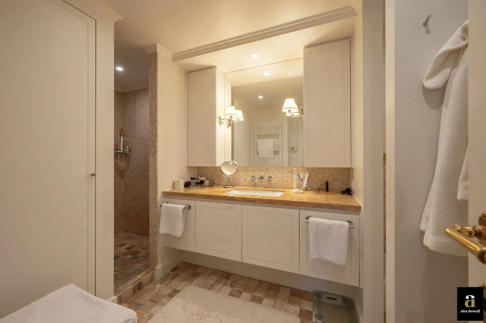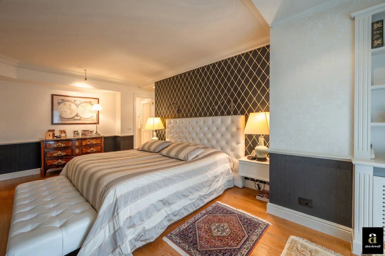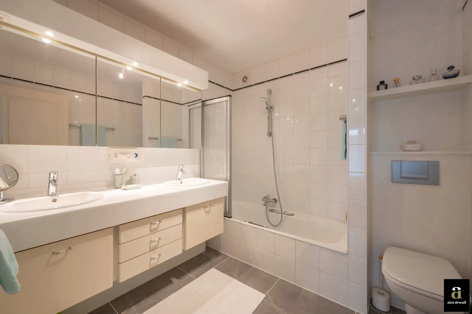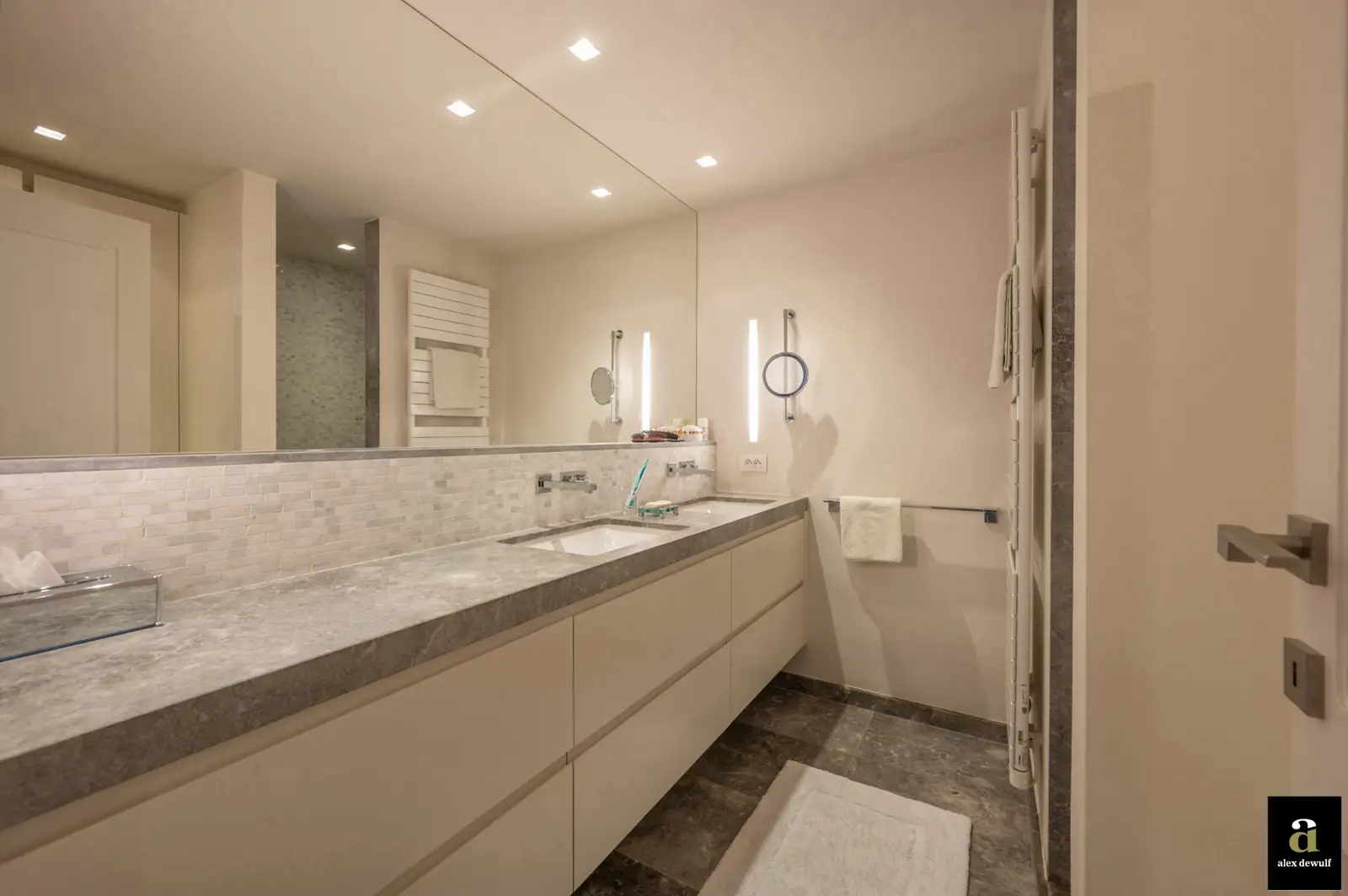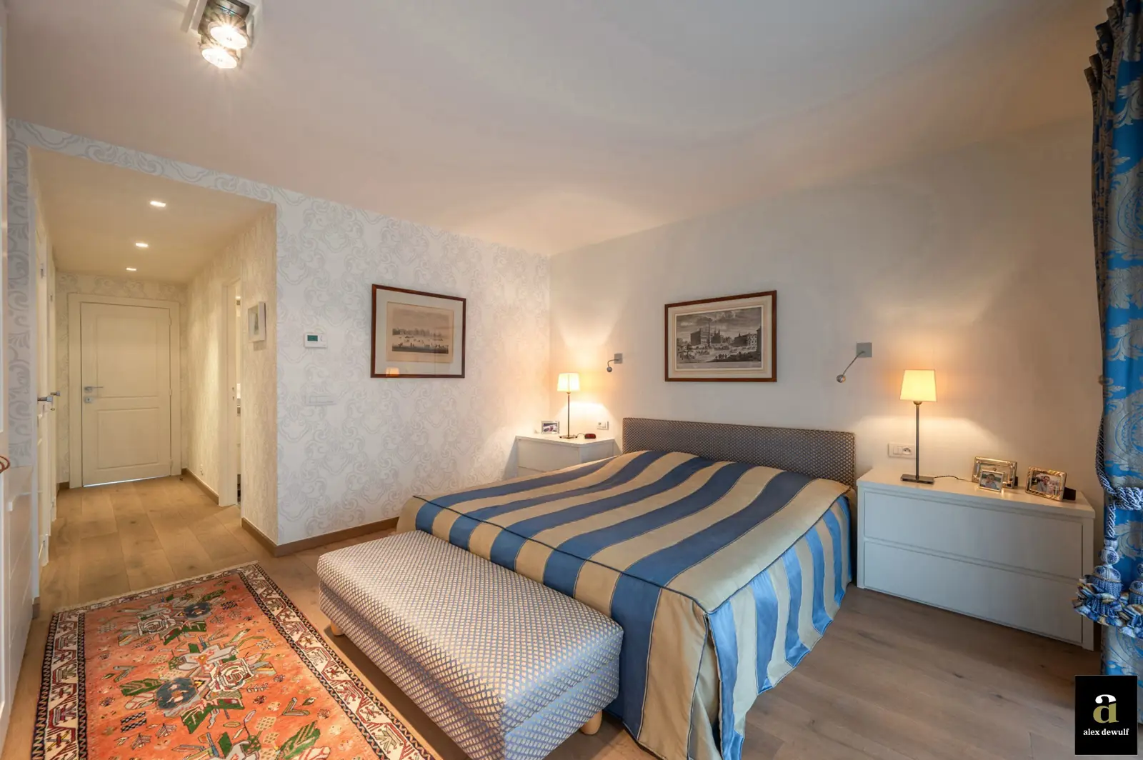 Een uitzonderlijk en exclusief appartement van ca. 300 m² met een brede gevel van 16 m en een prachtige privatieve tuin. Dit luxueuze tuinappartement met 4 slaapkamers bevindt zich in een stijlvolle villaresidentie gelegen op 25meter van het bekende Albertplein te Zoute, op slechts enkele stappen van de zee en het strand. Mogelijkheid tot aankoop van een dubbele garagebox inpandig.Bij het binnenkomen wordt u verwelkomd in een royale inkomhal met vestiaire en gastentoilet. De ruime, lichtrijke leefruimte bestaat uit een salon en een eetplaats die uitgeven op de zonnige terrassen. De volledig uitgeruste keuken, met aansluitende wasruimte en berging, biedt eveneens directe toegang tot het terras en de tuin. Verder is er een tweede salon of bureel aan de voorzijde, eveneens uitgevend op de terrassen met zicht naar het plein. De master bedroom beschikt over een volledige badkamer en een ruime dressing. Daarnaast zijn er nog drie volwaardige slaapkamers: een tweede slaapkamer (mogelijkheid tot douchekamer), een derde slaapkamer met aansluitende badkamer, en een vierde ruime slaapkamer met dressing en eigen badkamer, extra bergruimte en een toilet. Tweede wasruimte. Dubbele garagebox in de residentie. Een unieke opportuniteit voor wie op zoek is naar exclusief wonen in hartje Zoute, doch in alle rust en vlakbij zee.