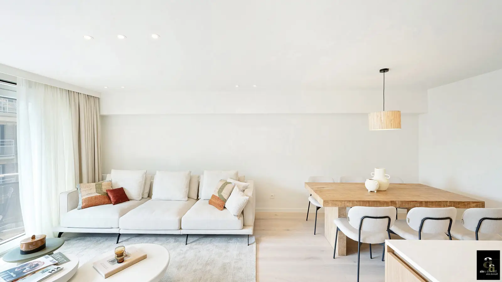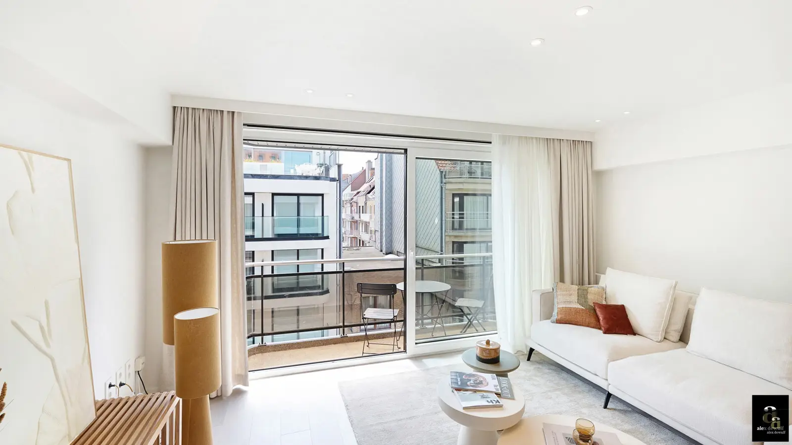 Volledig smaakvol gerenoveerd appartement op topligging bij het Rubensplein Op slechts enkele stappen van het Rubensplein bevindt zich dit instapklare 2-slaapkamerappartement, afgewerkt met oog voor detail en hoogwaardige materialen. De inkomhal verwelkomt u met een gastentoilet, vestiaire en praktische wasplaats. De lichtrijke woonkamer geeft uit op een zuidoostgericht terras met zijdelings zicht op het Rubensplein. De open, volledig uitgeruste keuken sluit naadloos aan bij de leefruimte en is ideaal voor wie houdt van gezellig koken. De masterbedroom beschikt over veel ingemaakte kasten. De tweede slaapkamer is geschikt voor een enkel bed of stapelbed. De ruime badkamer is voorzien van een stijlvolle inloopdouche. Gordijnen, bedbodems en terrasmeubilair zijn inbegrepen in de prijs. De overige Casa Nova-meubelen kunnen apart worden aangekocht. Een echte coup de cœur op toplocatie, perfect als tweede verblijf of investering. EPC: 158 – UC: 0003394347