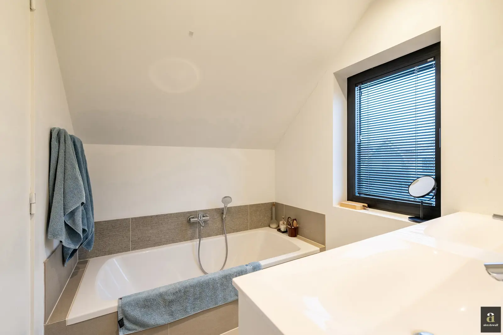 Hedendaagse, recente villa met zonnige tuin en terrassen, rustig gelegen in een residentiële wijk op wandelafstand van het centrum van Knokke.Indeling: ruime inkomhal met vestiaire en gastentoilet. Lichtrijke woon- en eetkamer met directe toegang tot het zonnige terras en de tuin. Moderne, volledig uitgeruste open keuken met ontbijthoek. Aansluitend een praktische berging met mogelijkheid tot het stallen van fietsen.Op de eerste verdieping bevindt zich de master bedroom met dressing en en-suite badkamer. Daarnaast zijn er een tweede en derde ruime slaapkamer, een extra dressing, een douchekamer en een apart toilet op de nachthal. Verder is er een grote, functionele berging/wasplaats en een zolderruimte.Buiten beschikt de woning over een carport voor twee wagens en een privatieve oprit. De zuid/zuidwest georiënteerde tuin met zonnig terras zorgt voor een aangename buitenbeleving. De woning is afgewerkt met kwalitatieve materialen.