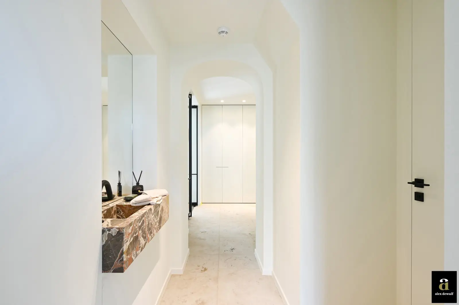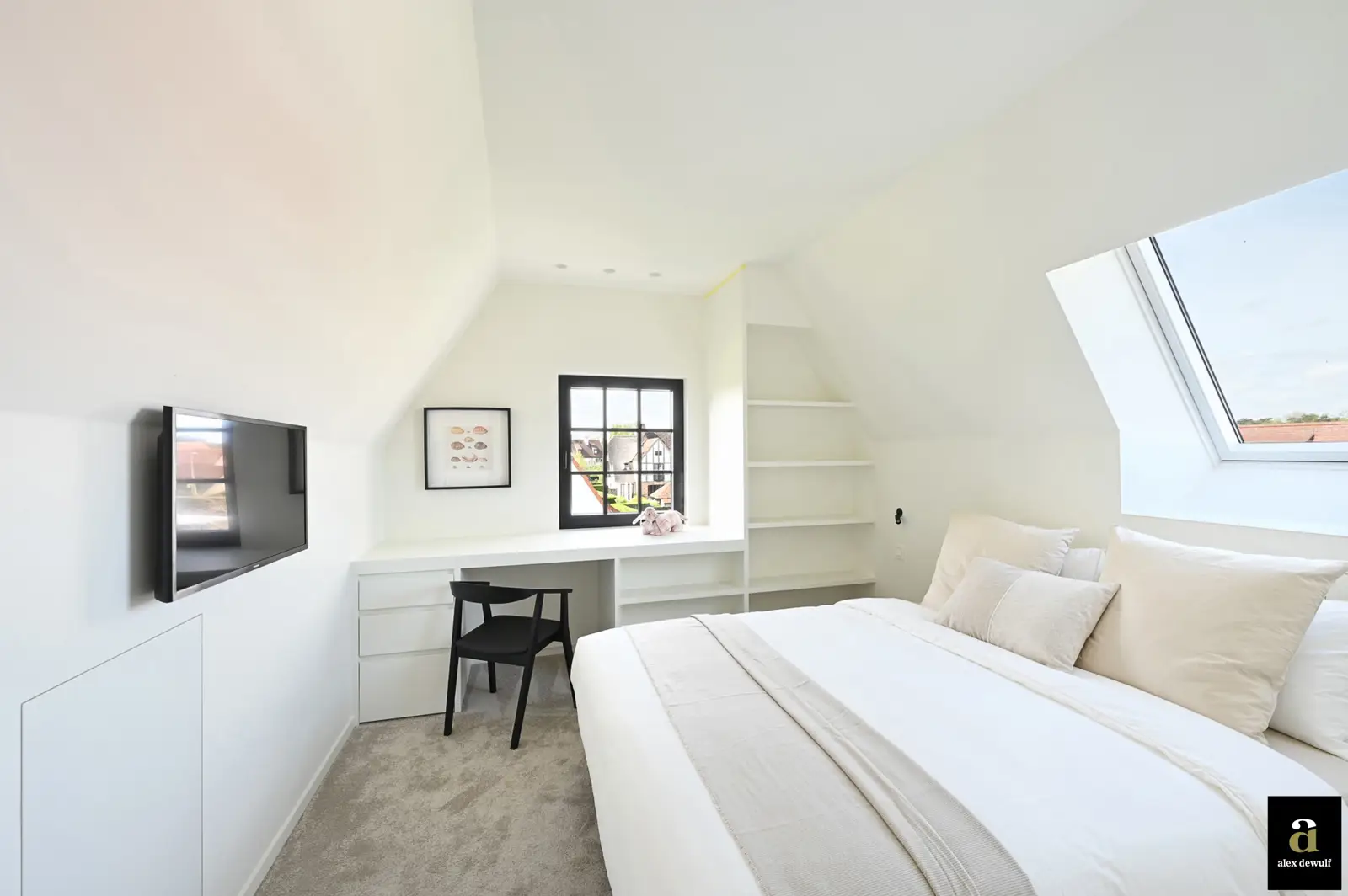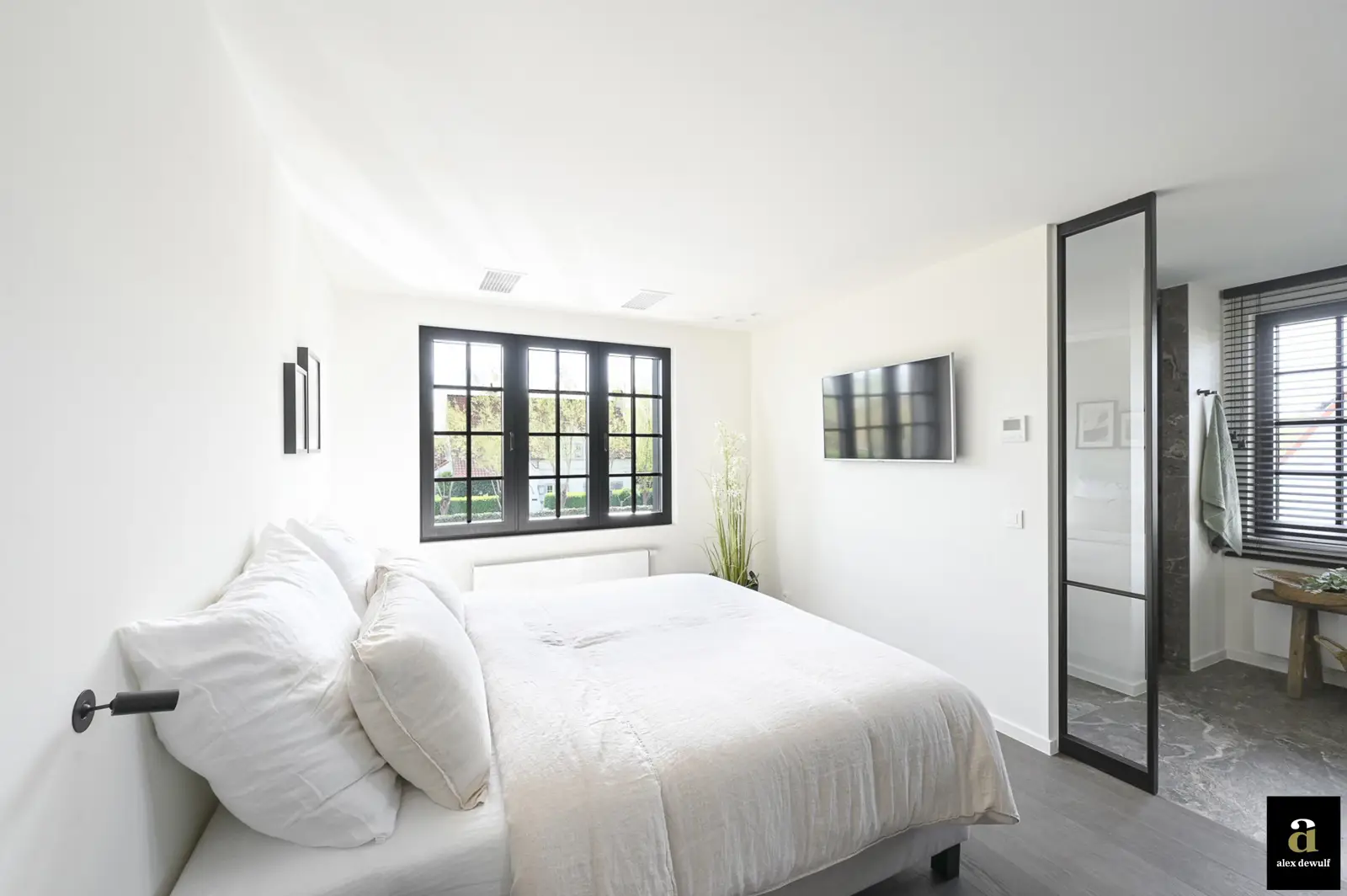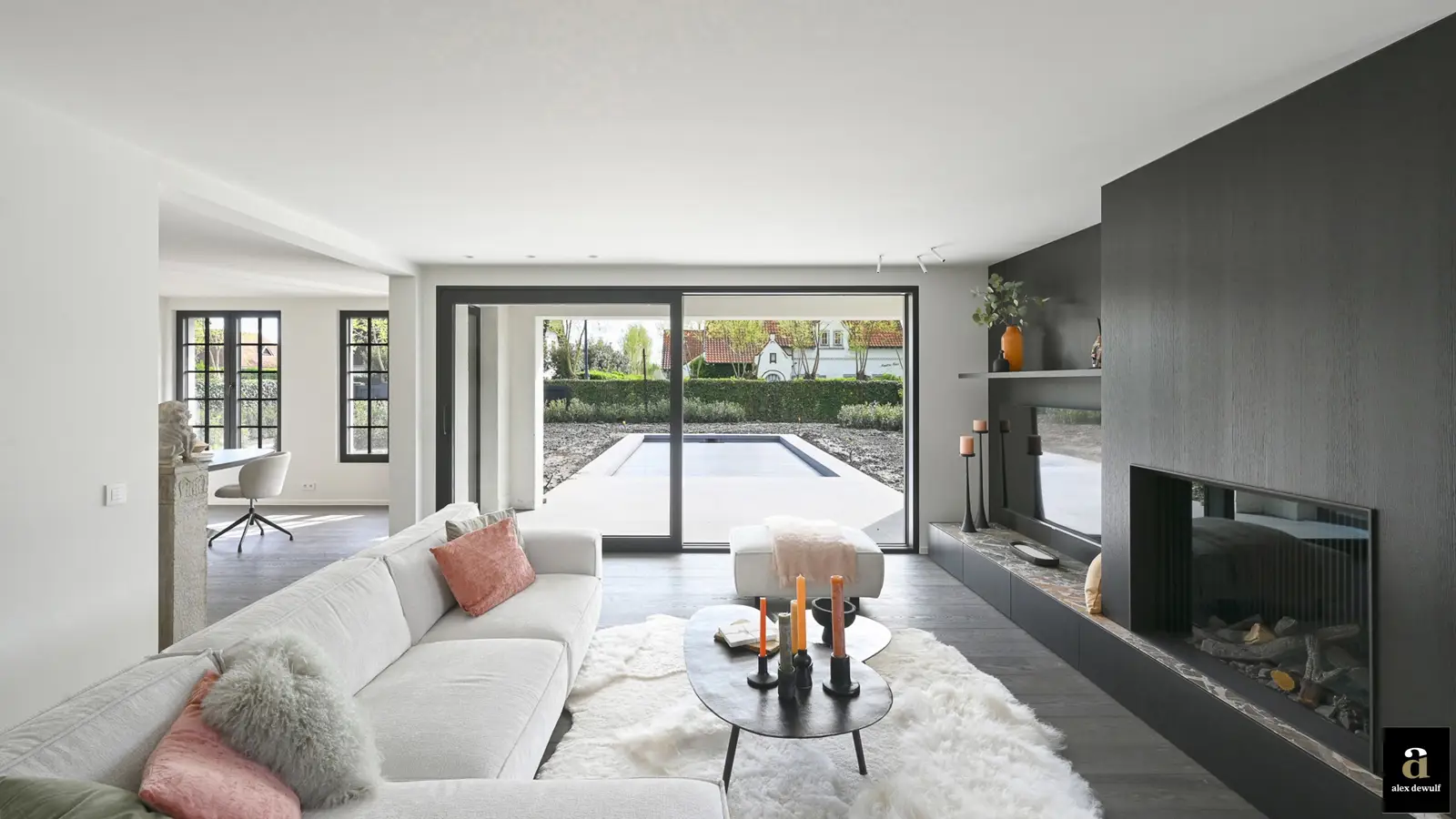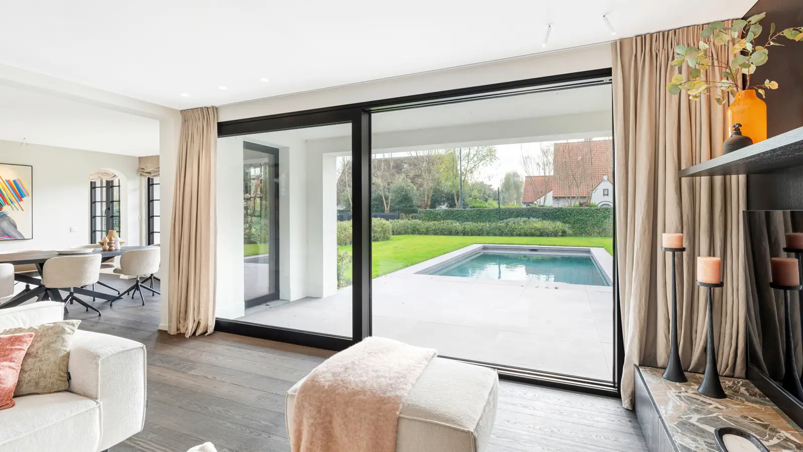 Zonnige, volledig vernieuwde villa met zwembad in het ZouteOp een absolute toplocatie in het residentiële Zoute, rustig gelegen in een doodlopende straat nabij de Kalfsmolen, bevindt zich deze luxueuze alleenstaande villa met zwembad. De woning is omgeven door groen en ligt op slechts vijf minuten rijden van het centrum van Knokke. Via het nabijgelegen Koningsbos wandelt u in alle rust naar het strand en de Kustlaan.De villa werd volledig gestript en met hoogwaardige materialen vernieuwd. Ze biedt een uitzonderlijk wooncomfort met onder meer 6 slaapkamers, 5 badkamers en een zuidgerichte tuin met verwarmd zwembad. Dankzij de automatische toegangspoort bereikt u de ruime oprit met plaats voor vier wagens. Er is ook een inpandige garage.Indeling: inkomhal met vestiaire en gastentoilet, ruime leefruimte in parket met open haard en maatwerkkasten in fineer eik, aparte eetruimte met toegang tot het overdekte terras en de tuin. De moderne keuken is volledig uitgerust met Miele-toestellen en een marmeren werkblad. Praktische wasruimte met extra bergruimte.Op de eerste verdieping bevinden zich vier volwaardige slaapkamers, elk met ingebouwde kasten en een eigen badkamer of douchekamer. De tweede verdieping telt nog twee ruime slaapkamers, een douchekamer en een apart toilet op de nachthal.EPC: 198 kWh/m² (UC: 3014336-RES-1)