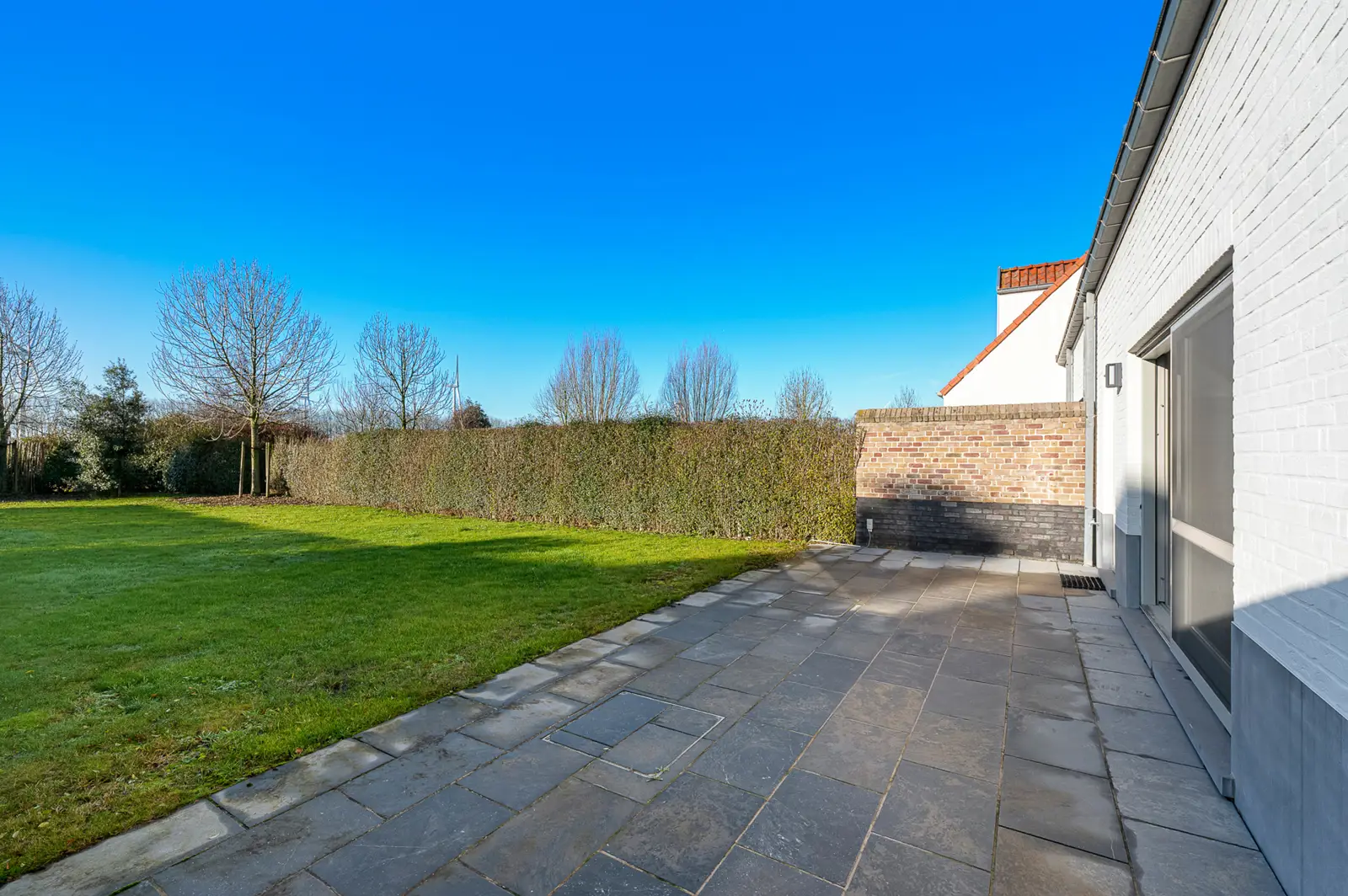Deze charmante woning (bj 2021) gelegen in de verkaveling ''De Voute'' te Ramskapelle combineert ruimte, rust en een hoogwaardige afwerking. De lichtrijke leefruimte is afgewerkt met inbouwkasten en een mooie gashaard. Er zijn 2 grote raampartijen die uitgeven op de zuid-westgerichte tuin. Moderne open keuken met kookeiland en voorzien van alle inbouwtoestellen. Stenen composiet werkblad. Verder beschikt het gelijkvloers over een afzonderlijk gastentoilet en een praktische wasruimte met aansluitingen voor wasmachine en droogkast. De inpandige garage met rechtstreekse toegang tot de woning zorgt voor extra gebruiksgemak. Ook nog een private parking buiten aan de woning. De woning is rustig gelegen en wordt omgeven door een mooie, ruime tuin die volop privacy en ontspanning biedt. Op de bovenverdieping bevinden zich vier volwaardige slaapkamers. Master bedroom met eigen 1 badkamer. Er is ook een douchekamer welke apart bereikbaar is vanuit de nachthal. Doorheen de volledige woning zijn ingemaakte kasten voorzien. De woning werd zonet volledig opnieuw geschilderd. EPC A-label (80kWh/m²).