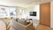 Prachtig recent gerenoveerd appartement met zijdelings zeezicht en zicht naar het Driehoeksplein in het hartje van het Zoute.Inkomhal met vestiairekast en apart toilet. Lichtrijke woonkamer met westgericht terrasje vooraan. Moderne open keuken voorzien van Miele toestellen (inbouwdampkap, keramische kookplaat, oven, microgolf, frigo en diepvries, wijnkoeler). Berging met wasmachine. 2 mooie slaapkamers waarvan 1 met stapelbed en onderslaper en annex douchekamer. Master bedroom met ingebouwde kleerkasten en eigen badkamer met inloopdouche en lavabomeubel. Gemeenschappelijke fietsenberging op het gelijkvloers.